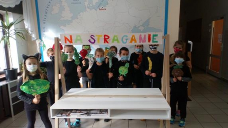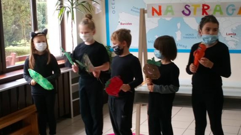 9 października 2020 r. uczniowie klasy drugiej zaprosili swoich kolegów i koleżanki z klas pierwszych na inscenizację wiersza Jana Brzechwy ,,Na straganie” z wykorzystaniem papierowych kukiełek – warzyw. Ponadto drugoklasiści zaśpiewali pierwszakom ,,Warzywna piosenkę”, zachęcając w ten sposób do zdrowego odżywiania się.