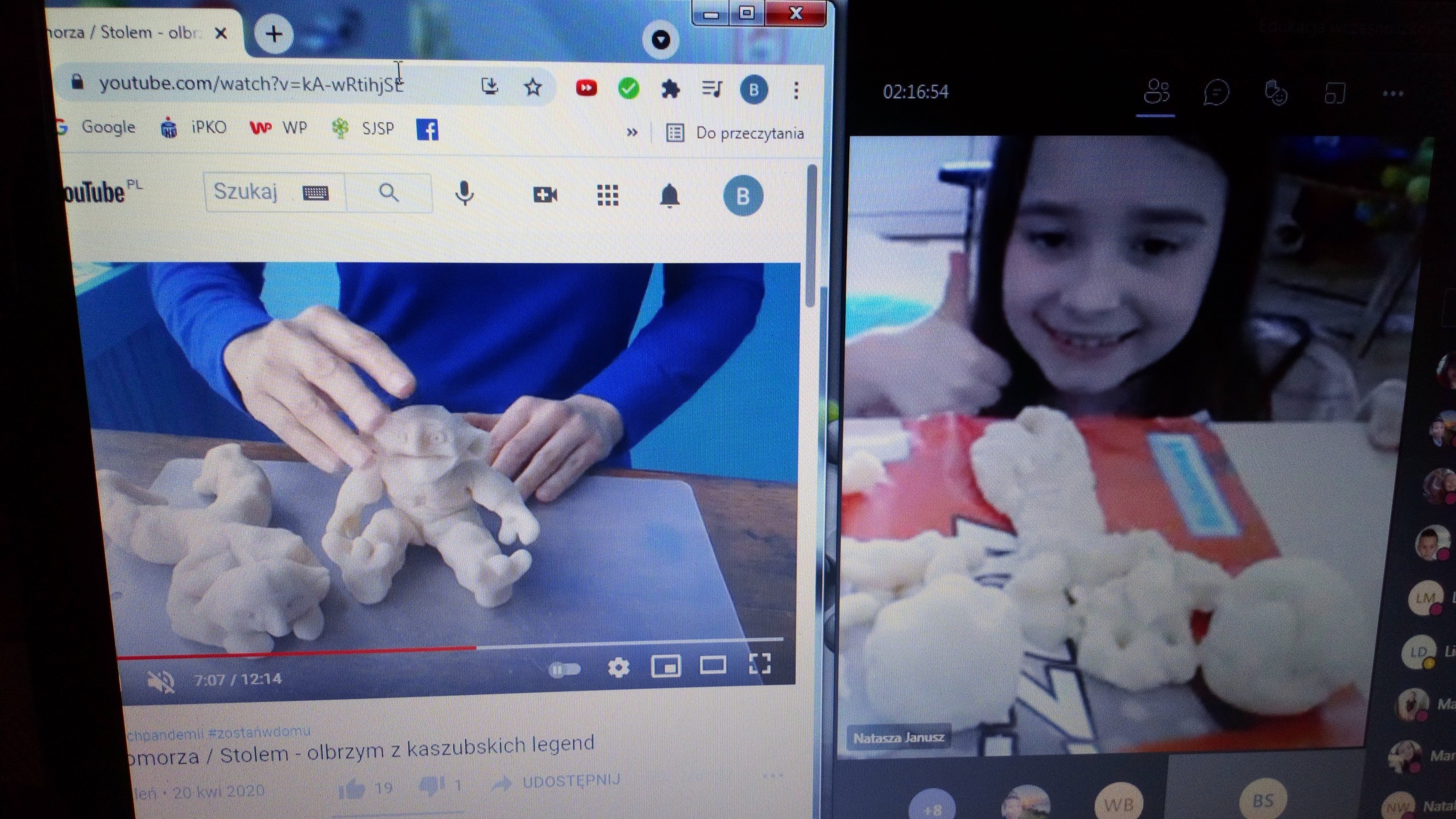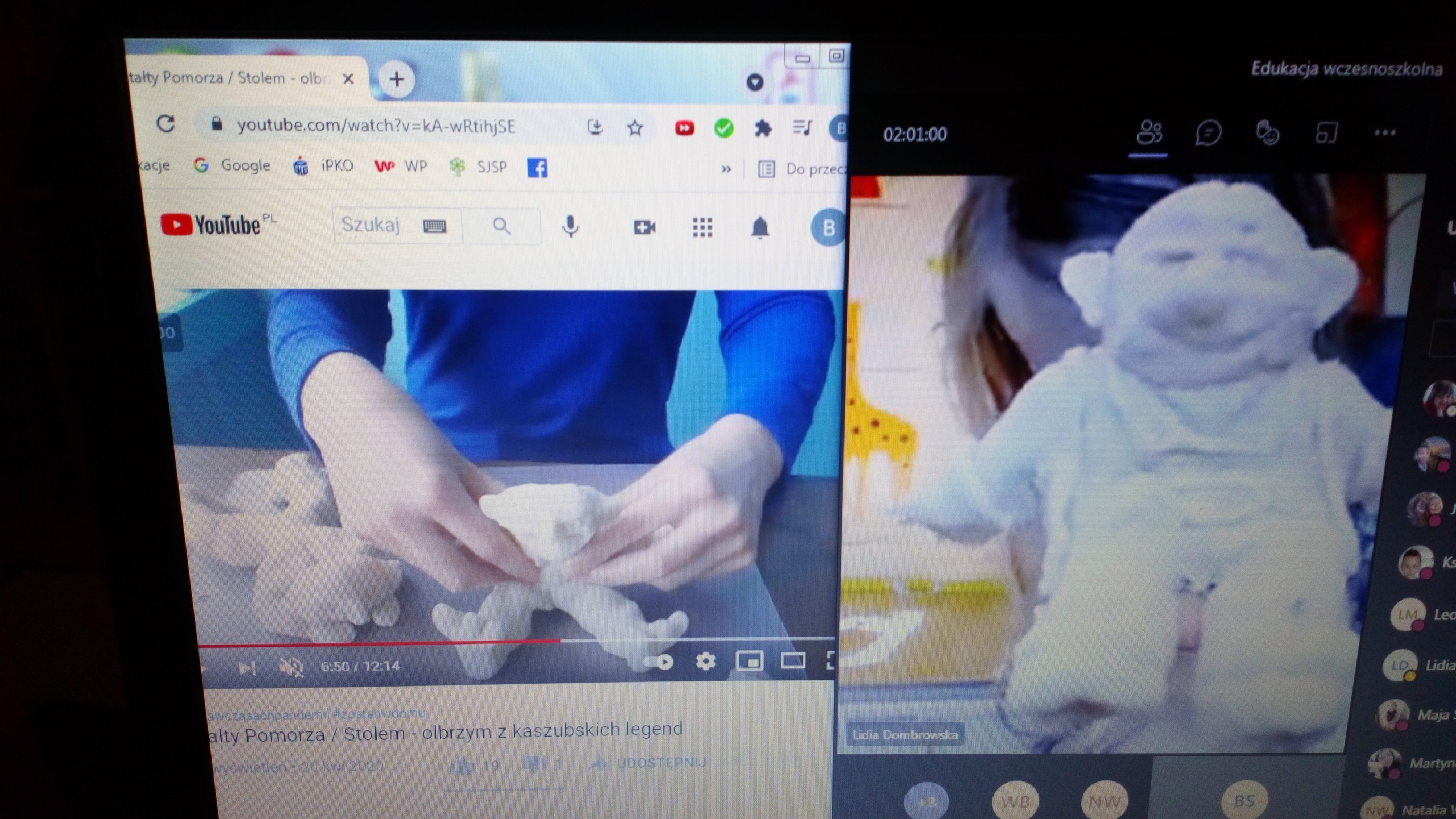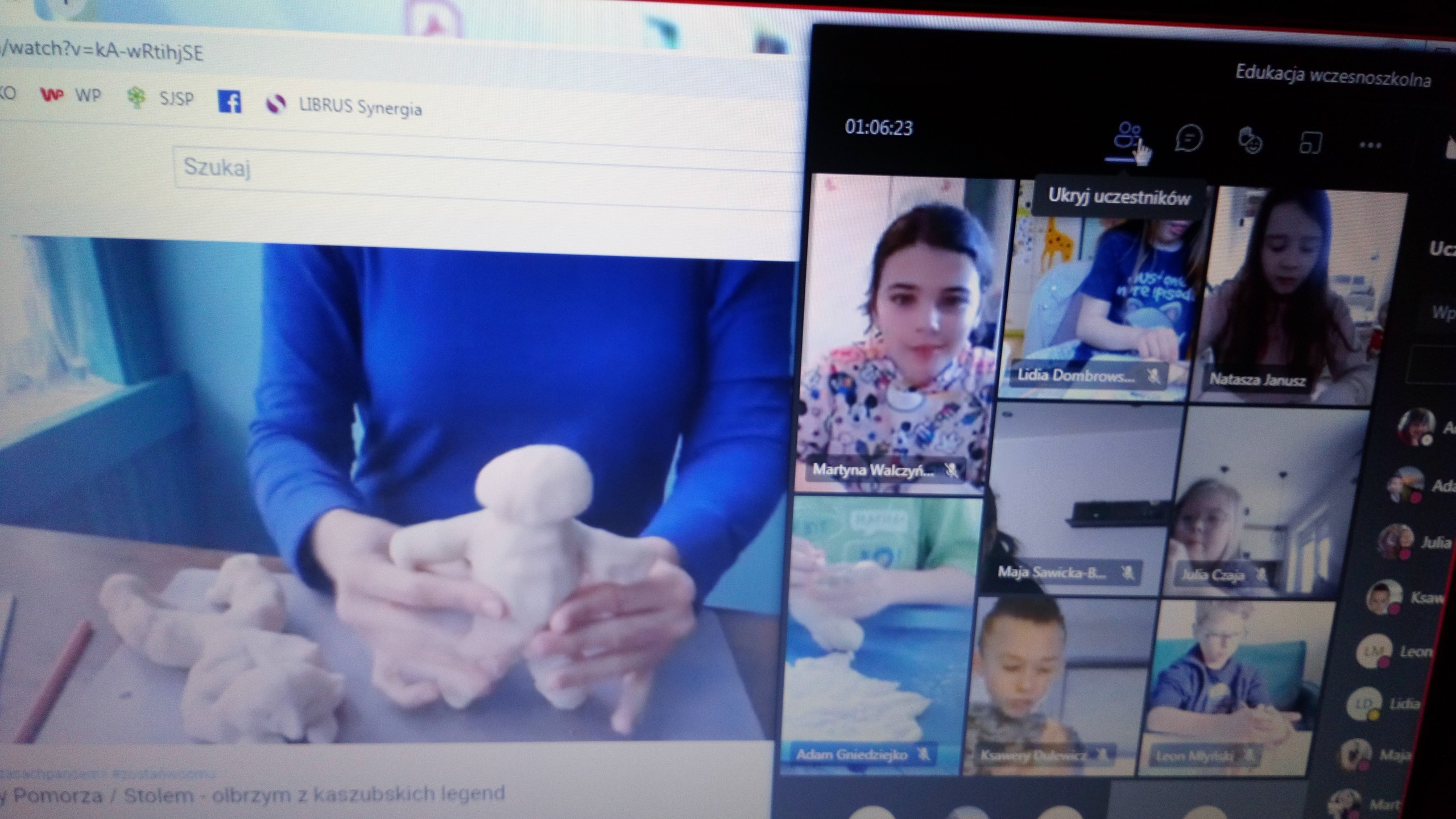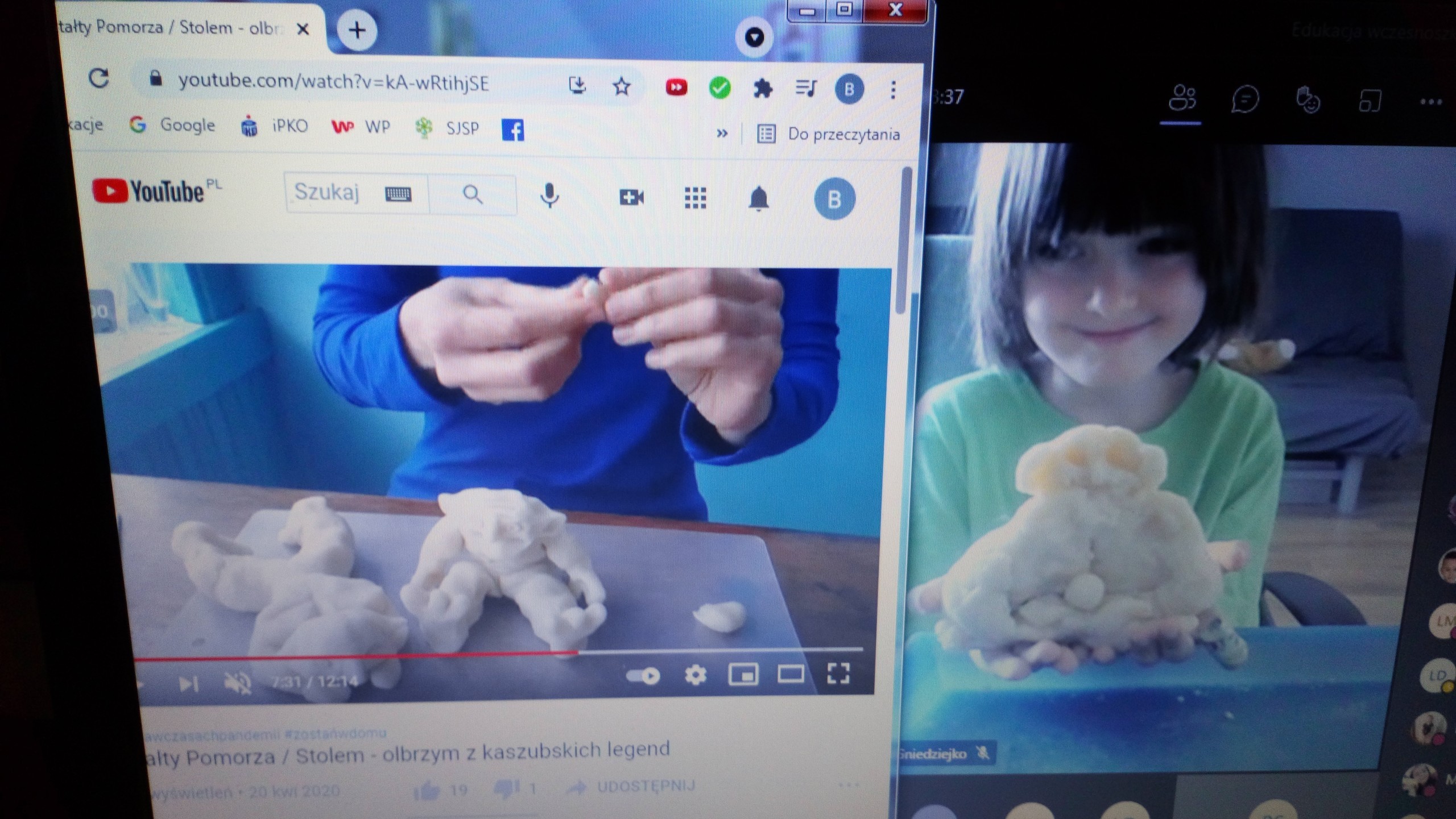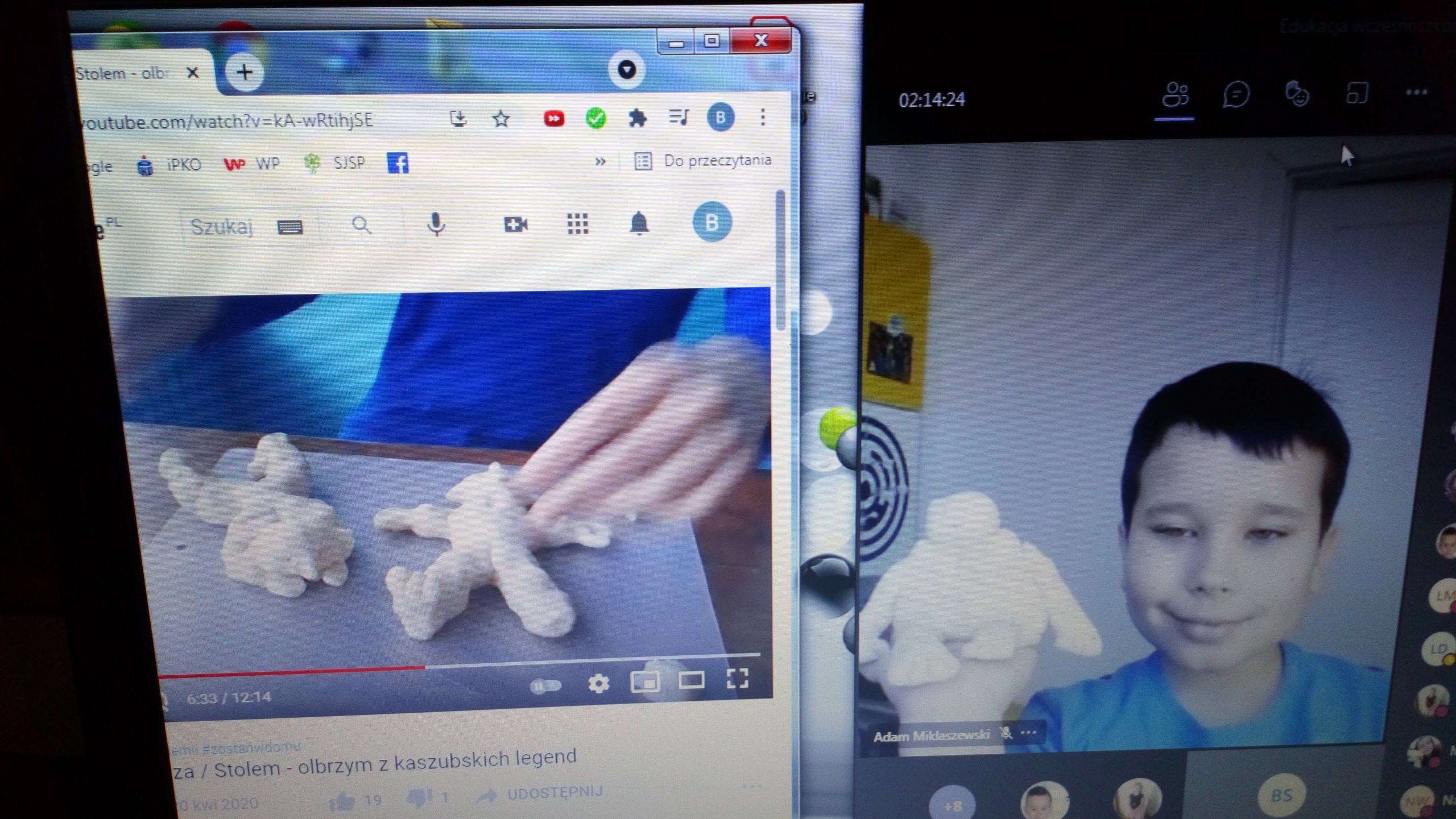 Uczniowie klasy drugiej na zajęciach języka kaszubskiego poznali legendy kaszubskie, min. o stolemach, czyli olbrzymach, które przed wiekami zamieszkiwały tereny Kaszub, a przypisuje się im uformowanie obecnego krajobrazu Kaszub. Drugoklasiści, w ramach lekcji online, mieli okazję samodzielnie i twórczo stworzyć postacie stolemów z masy plastycznej. Zajęcia sprawiły dzieciom wiele radości, a ich ,,olbrzymy" prezentują się bardzo ciekawie.