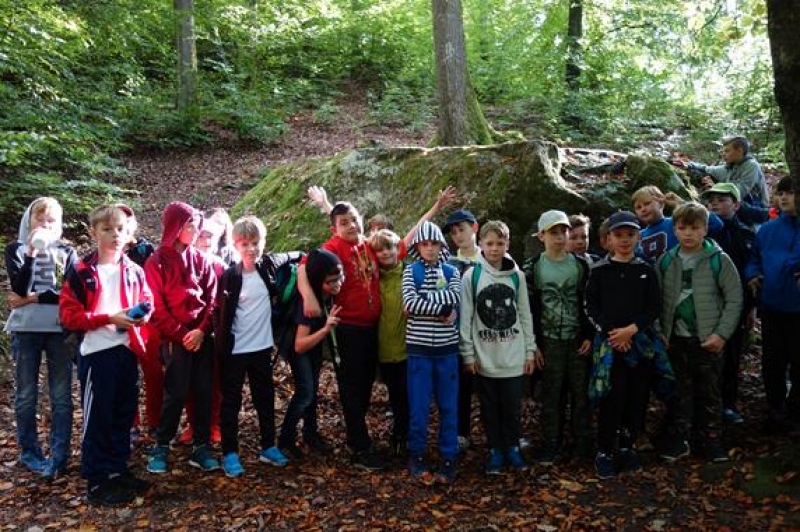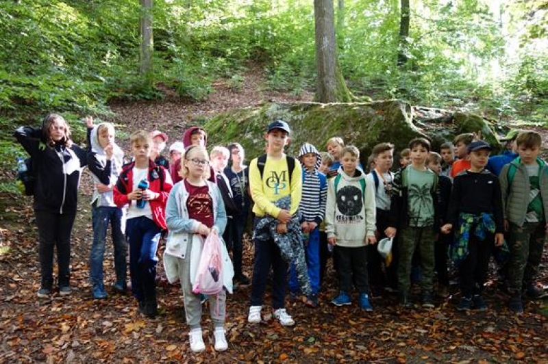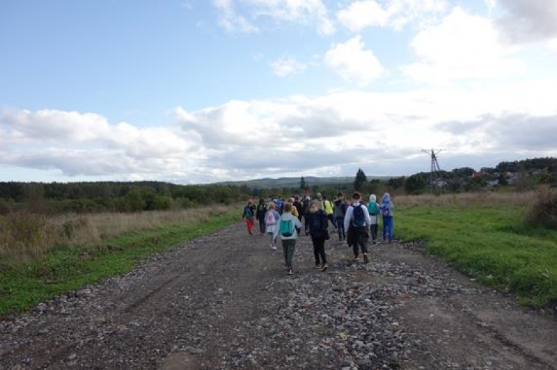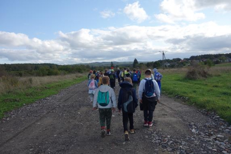Na ostatniej pieszej wycieczce uczniowie z klas 4-5 poznawali atrakcje gminy Nowa Wieś Lęborska. Wędrowali małym fragmentem czerwonego szlaku do Pomnika Przyrody – Diabelskiego Kamienia, który znajduje się w okolicach Kębłowa. Jest to jeden z większych głazów narzutowych w naszej okolicy. Trasa, którą wędrowali wiodła przez polne drogi, okoliczne żwirownie i las. Idąc, podziwiali piękną panoramę Lęborka. Podczas około 6 km wycieczki towarzyszyło im jesienne słońce więc humory dopisywały. Po dotarciu do kamienia był czas na skonsumowanie zabranych kanapek i słodyczy, pamiątkowe zdjęcia i poznanie legendy o Kamieniu opowiedzianej przez naszego przewodnika - Tadeusza. Była to kolejna bardzo udana wycieczka.