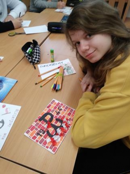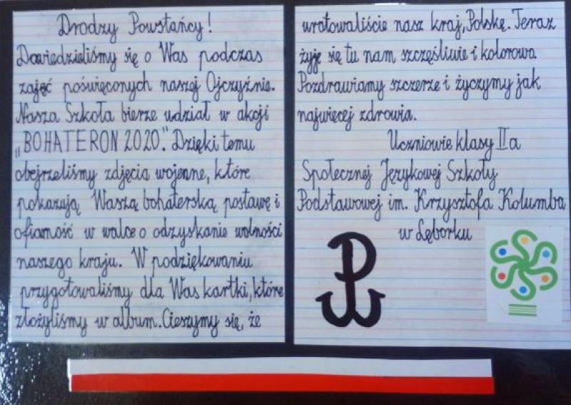 Z tej właśnie okazji klasa 2a oraz 7b przygotowały pamiątki w postaci albumów z życzeniami dla Powstańców Warszawskich.