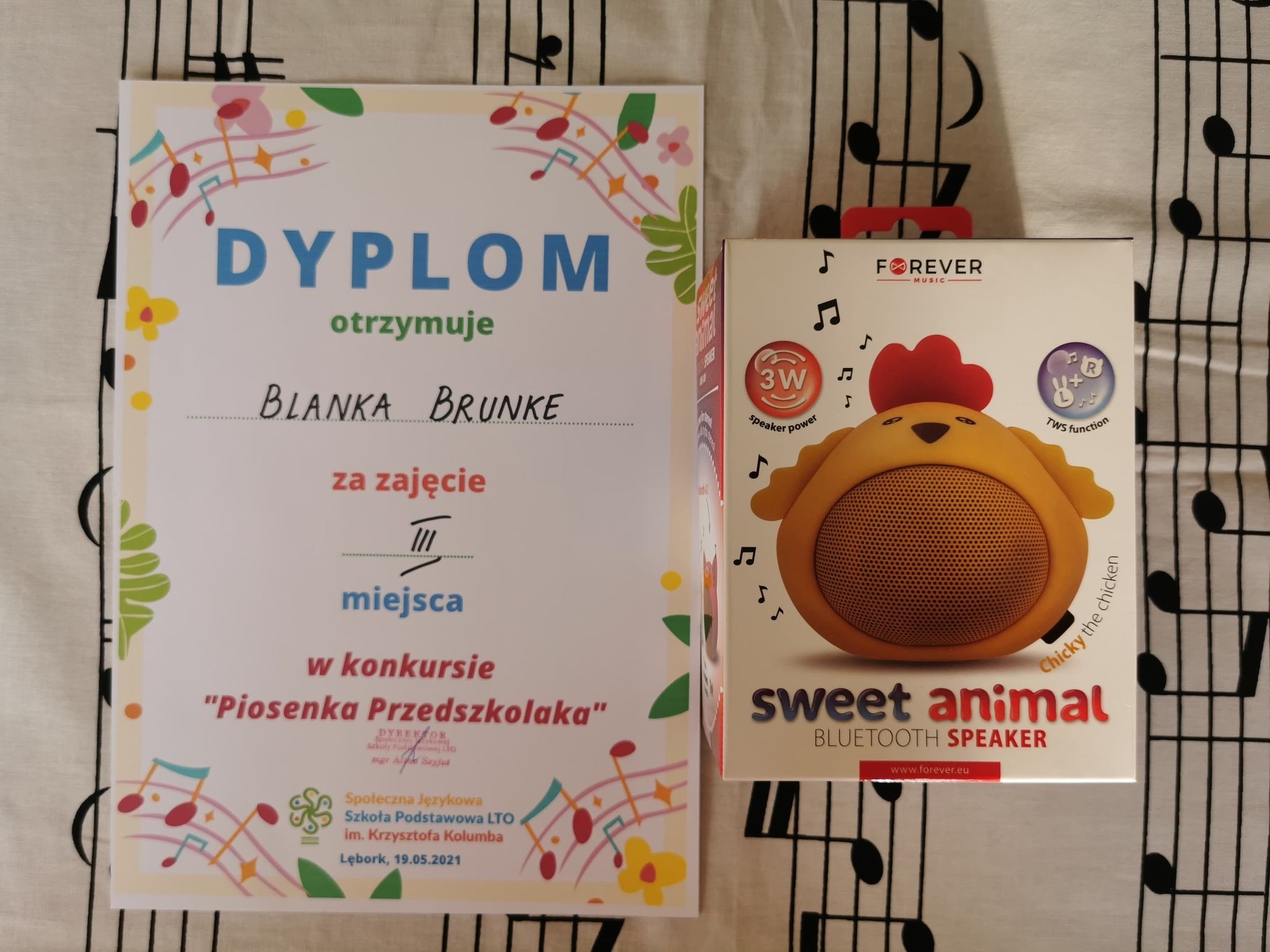Dnia 19 maja w Społecznej Językowej Szkole Podstawowej odbył się konkurs "Piosenka Przedszkolaka". Wyniki prezentują się następująco: