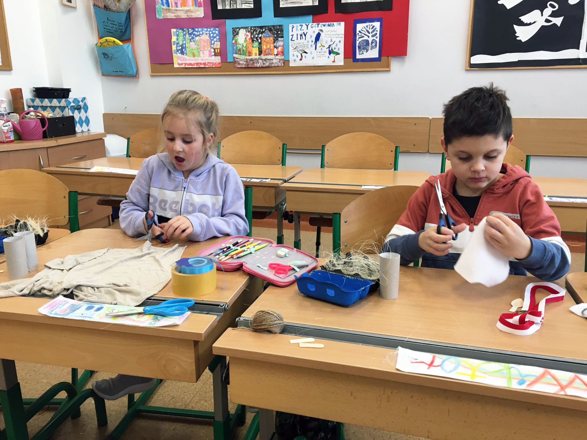 Uczestnicy kółka plastycznego Złote rączki wykonali ekologiczne szopki bożonarodzeniowe.