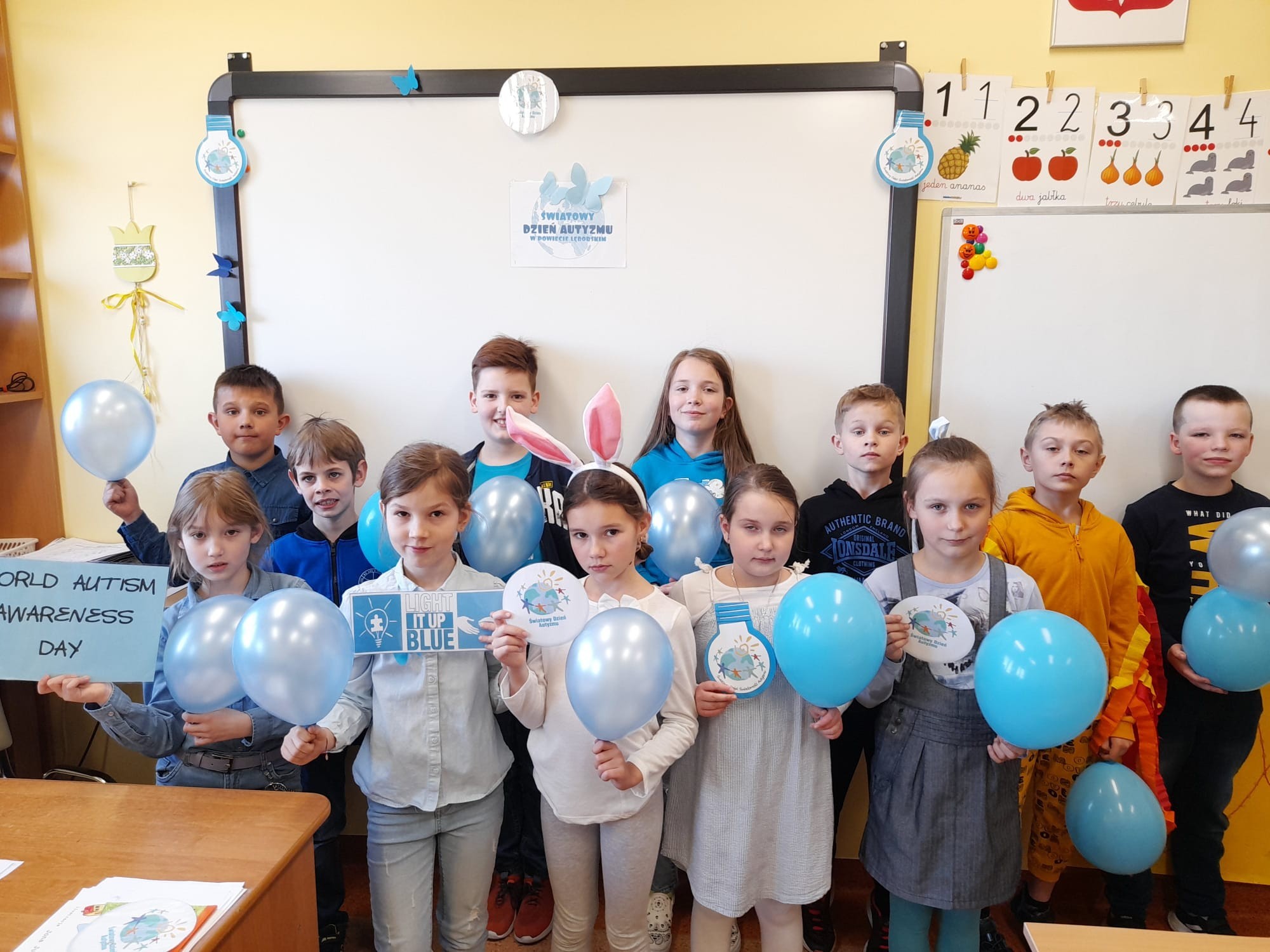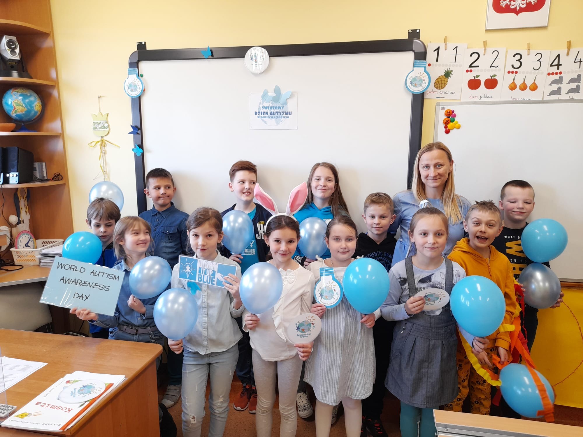 Kwiecień to miesiąc wiedzy o autyzmie. Inauguracja wydarzeń w naszej szkole rozpoczęła się w klasie 2b. Uczniowie solidaryzując się z osobami autystycznymi ubrali się na niebiesko w myśl hasła ,,Nie bądź zielony w temacie autyzmu. Zaświeć na niebiesko!"