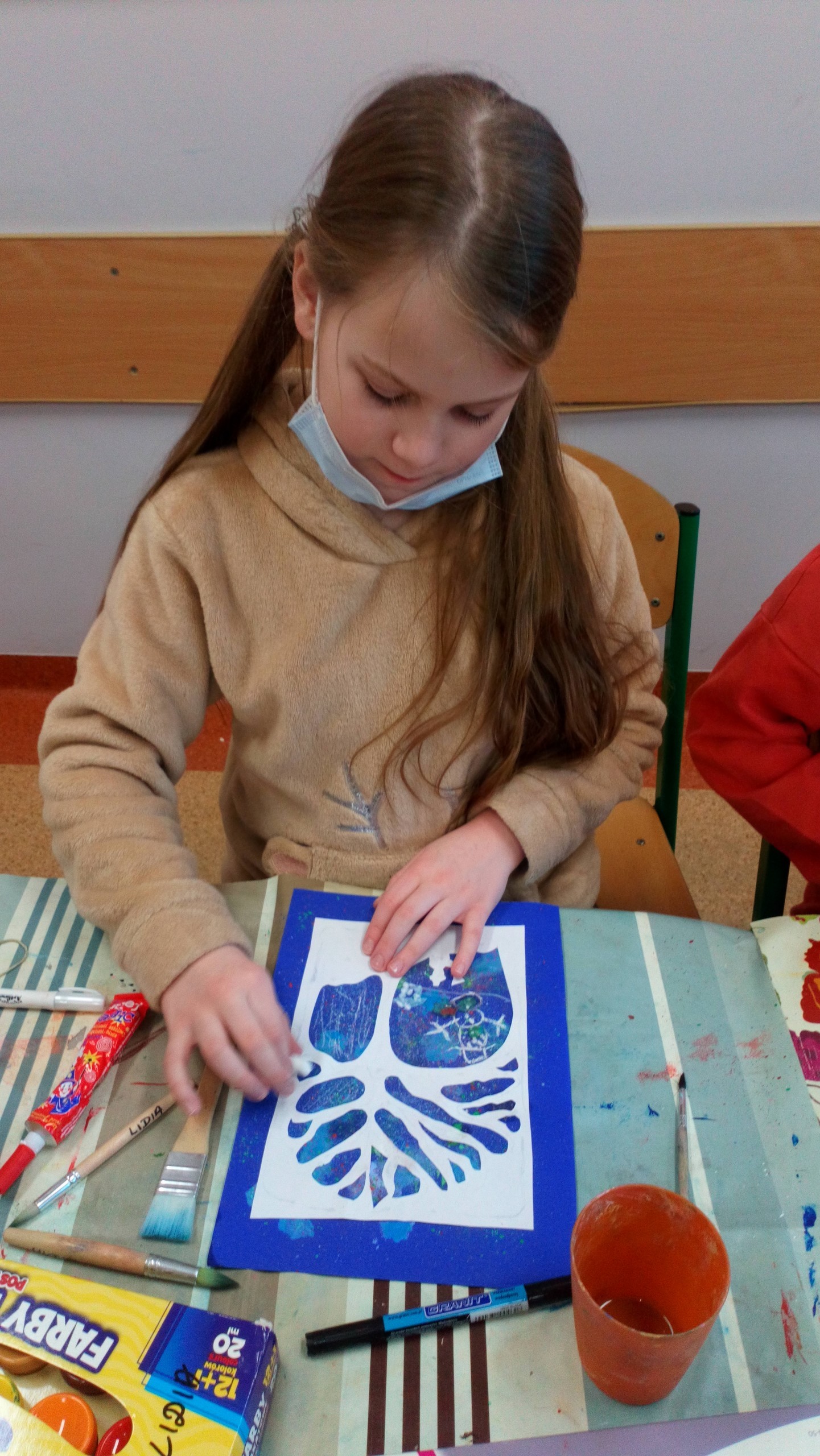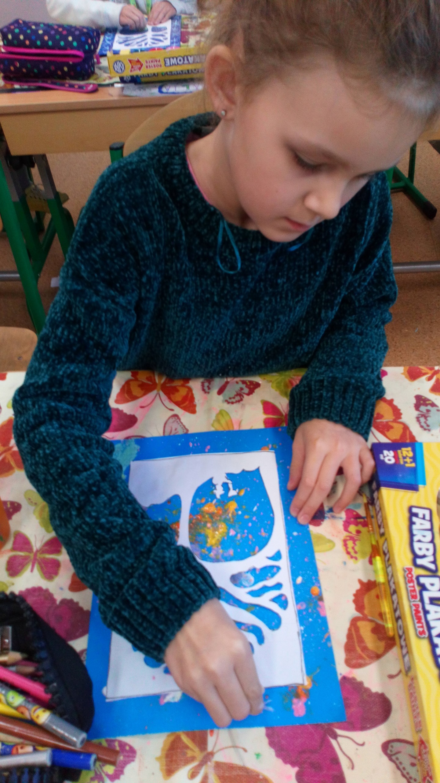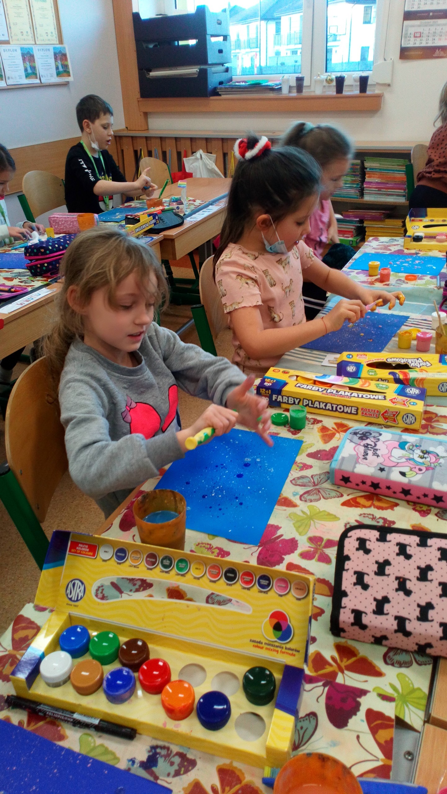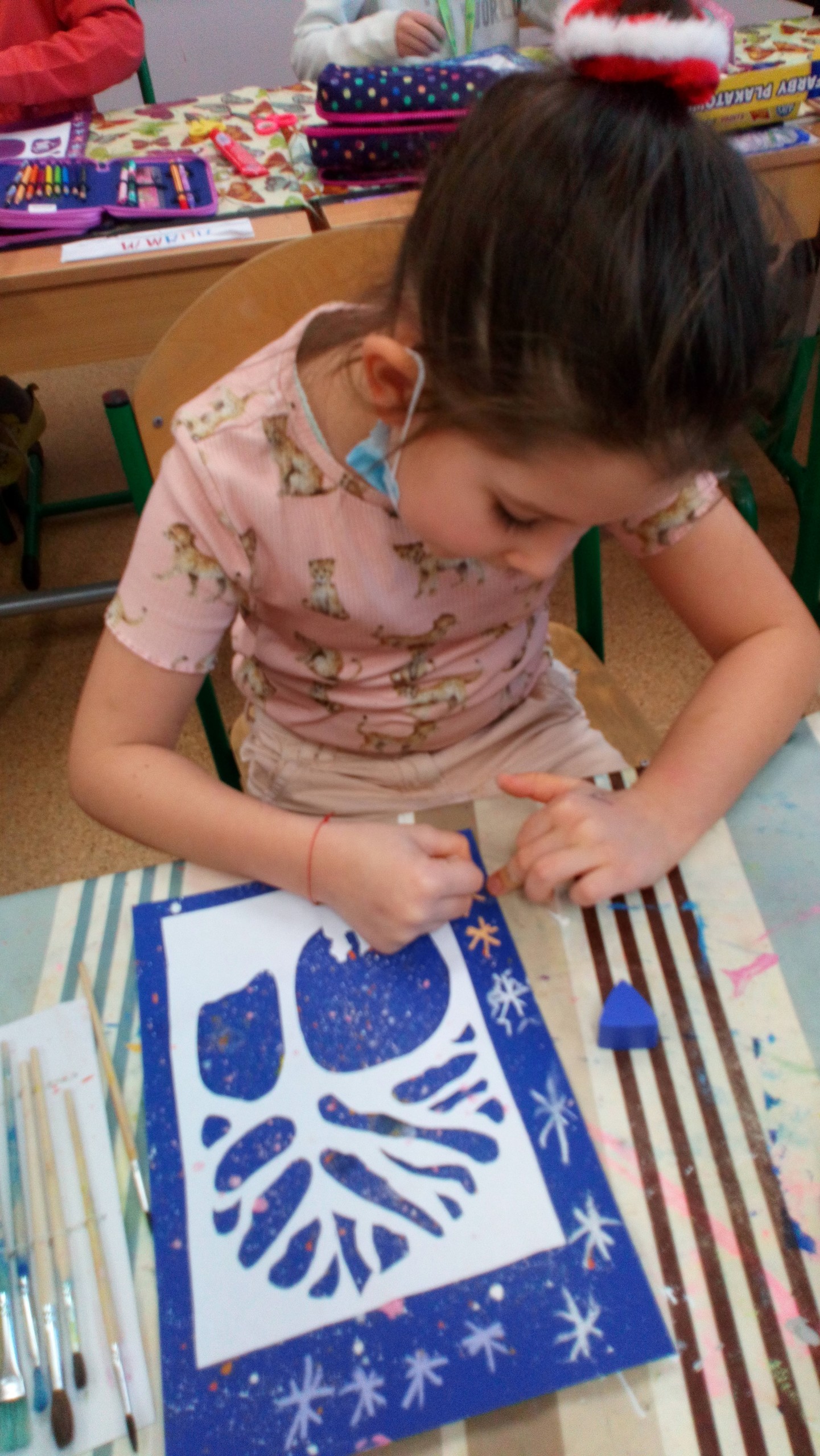 Na ostatnich zajęciach kółka plastycznego klas I-III dzieci wykonały ładne kartki bożonarodzeniowe, wykorzystując technikę nakrapianki i szablonu. Oto efekty ich pracy.