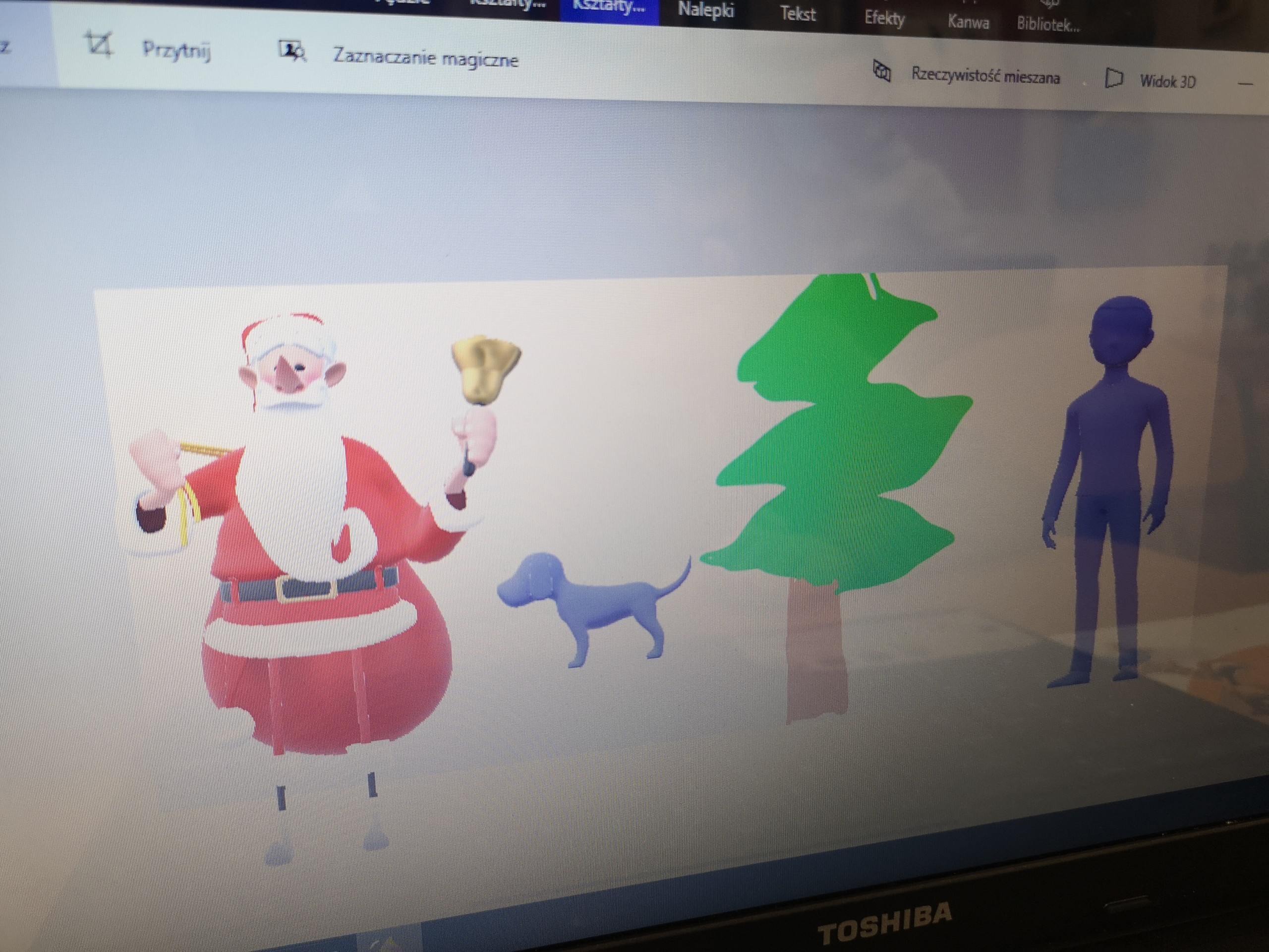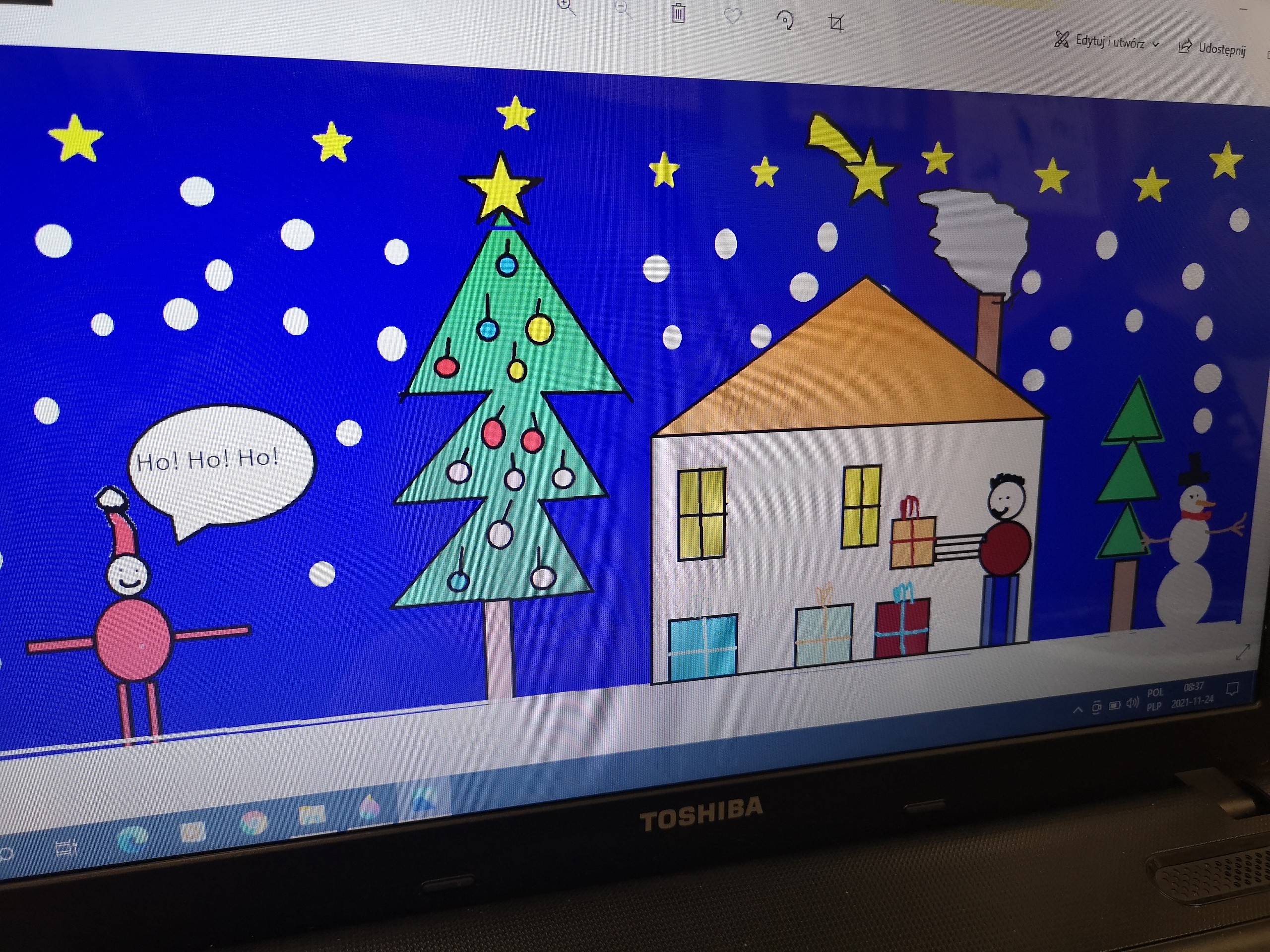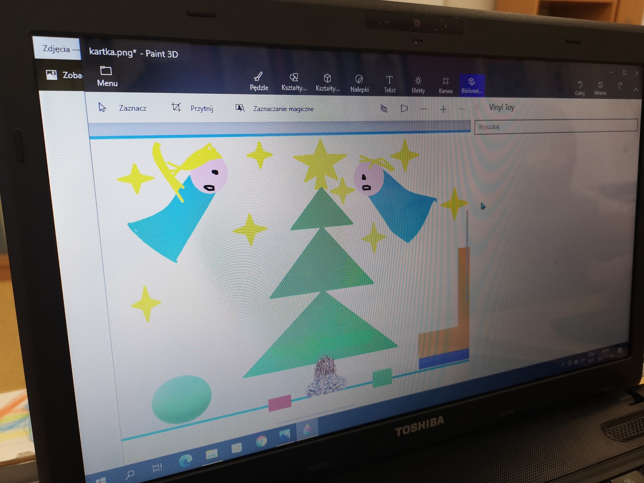 Kartki świąteczne trzecioklasistów tworzone w programie Paint 3D