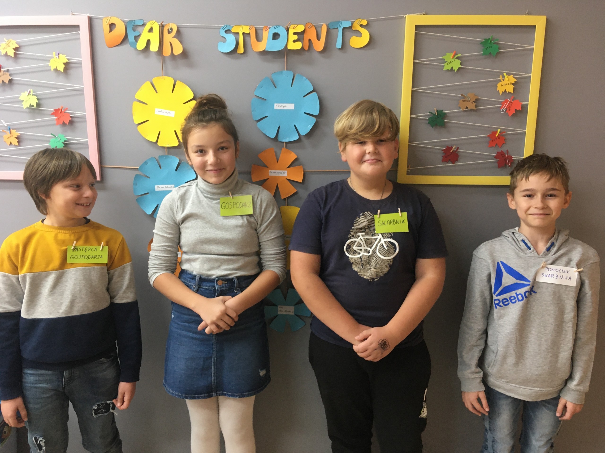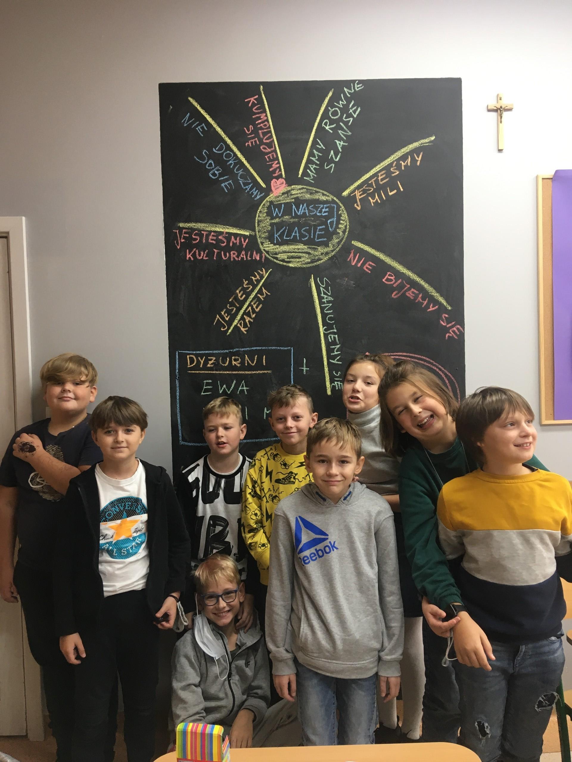Dzień 22 września w klasie 4a okazał się bardzo słoneczny i owocny. Po burzliwych obradach, uczniowie wybrali klasową trójkę, a nawet czwórkę... Powstał też projekt klasowego kodeksu zachowania, zapisany i udekorowany tak, by przypominać o tym, co sprawia, że w szkole wśród kolegów i koleżanek z klasy czujemy się dobrze. Uśmiechnięta, pozytywnie nastawiona 4a rozpoczyna kolorową jesień!