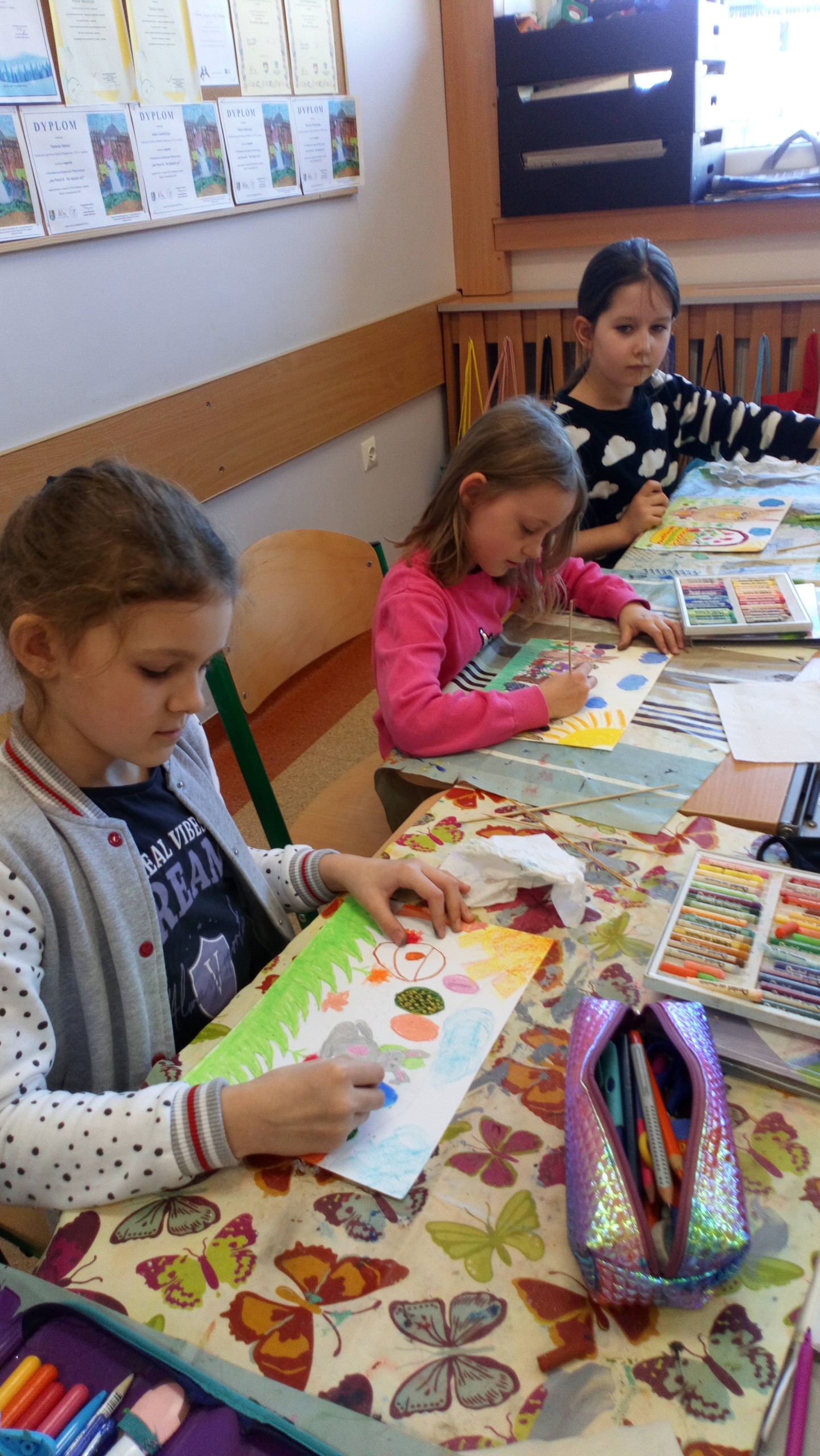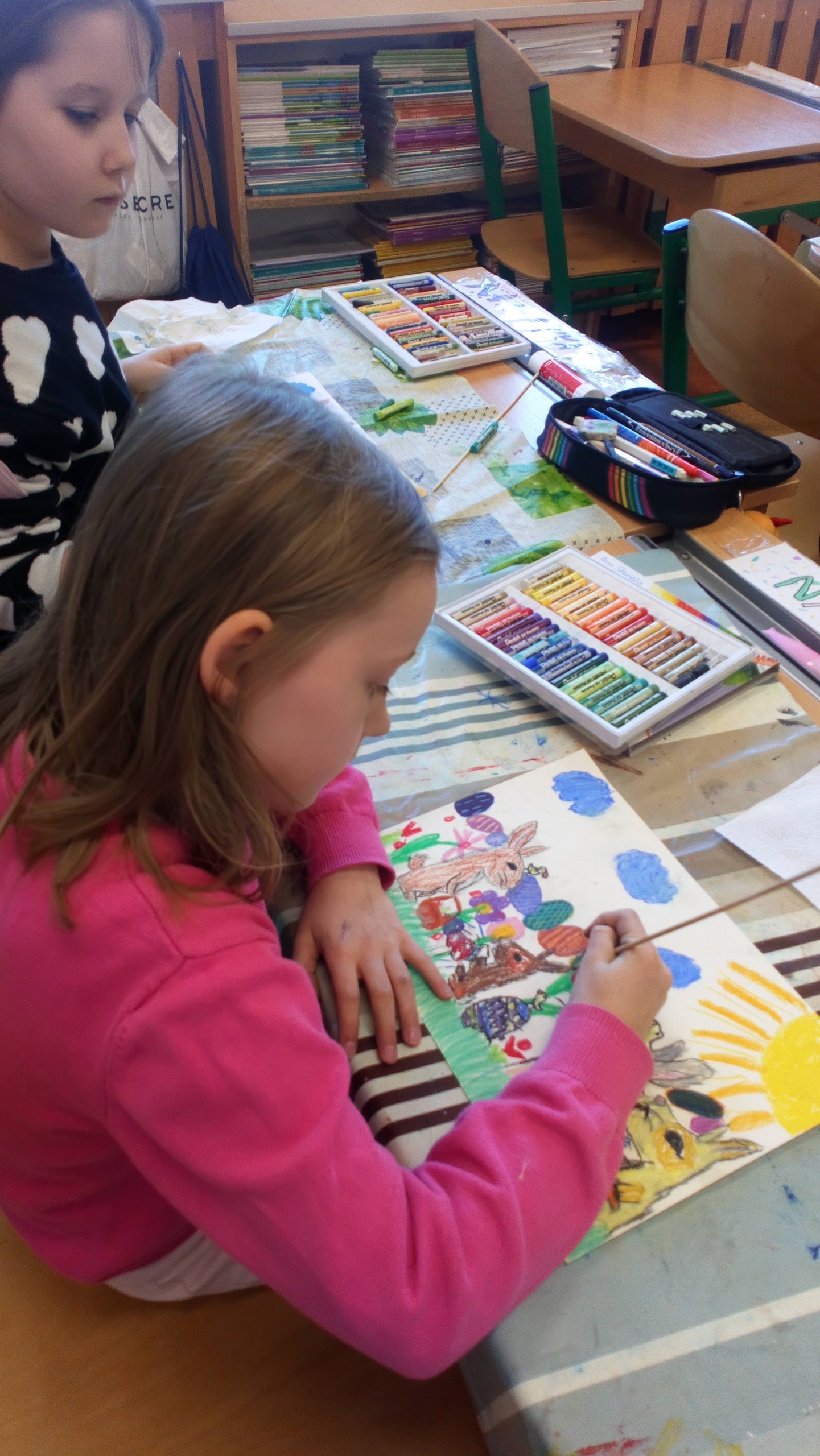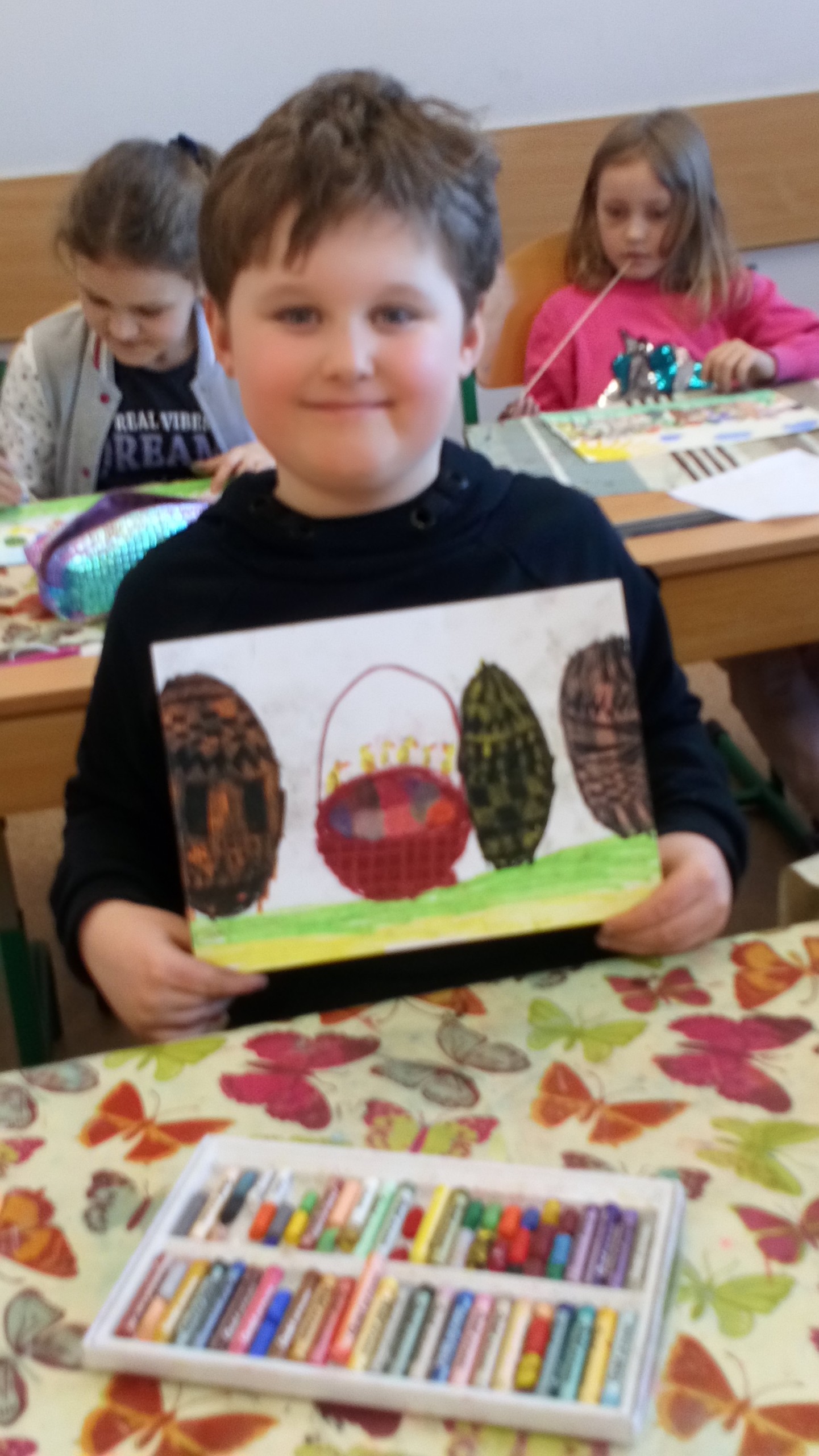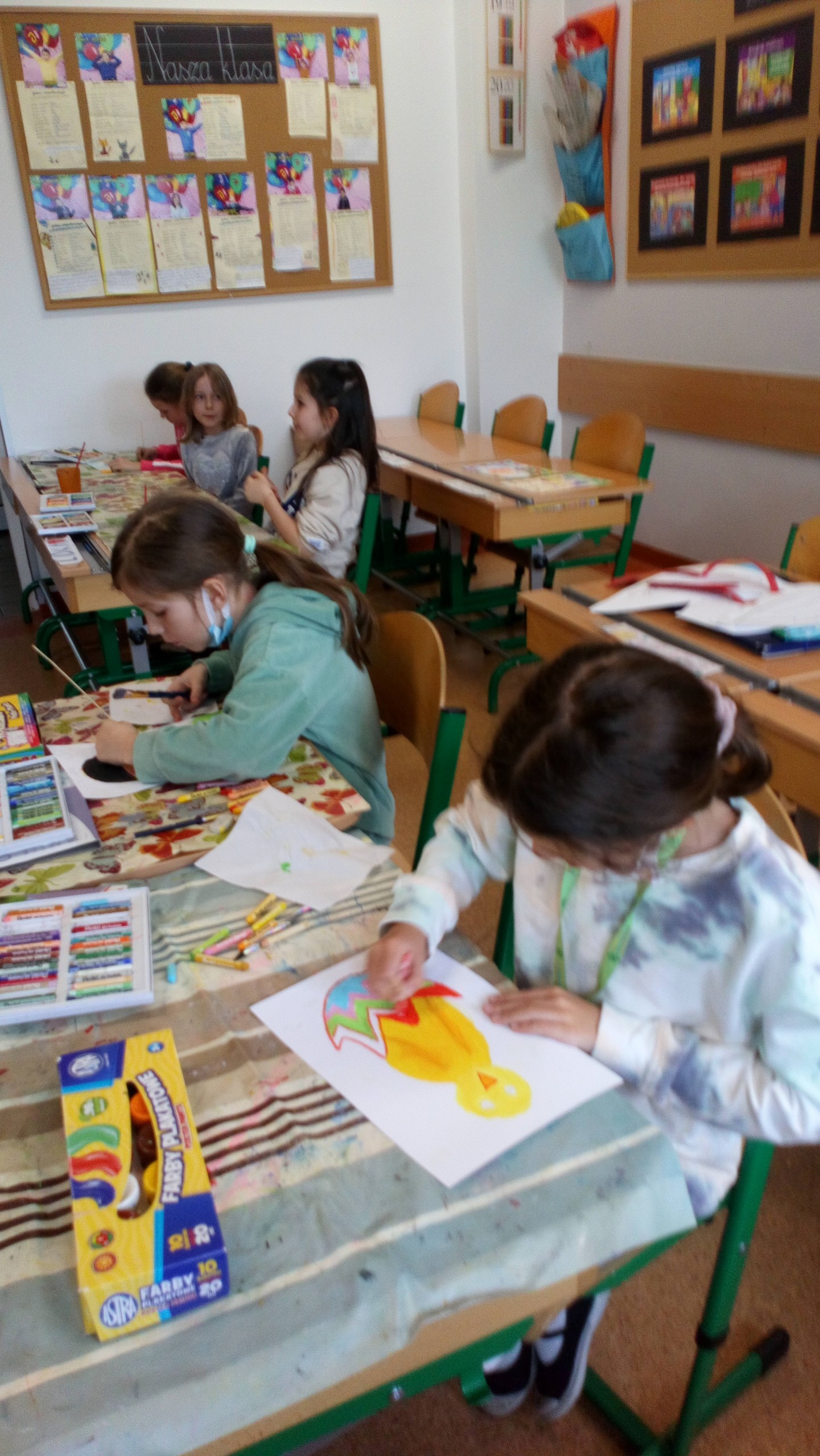 W marcu, na kółku plastycznym klas I –III, uczniowie wykonywali piękne kartki wielkanocne stosując pastele, akwarele oraz farby plakatowe. Na pracach dzieci nie zabrakło pisanek, kurczaków, zajączków, baranków, koszyczków, wiosennych kwiatków czy bazi. Jest co podziwiać!