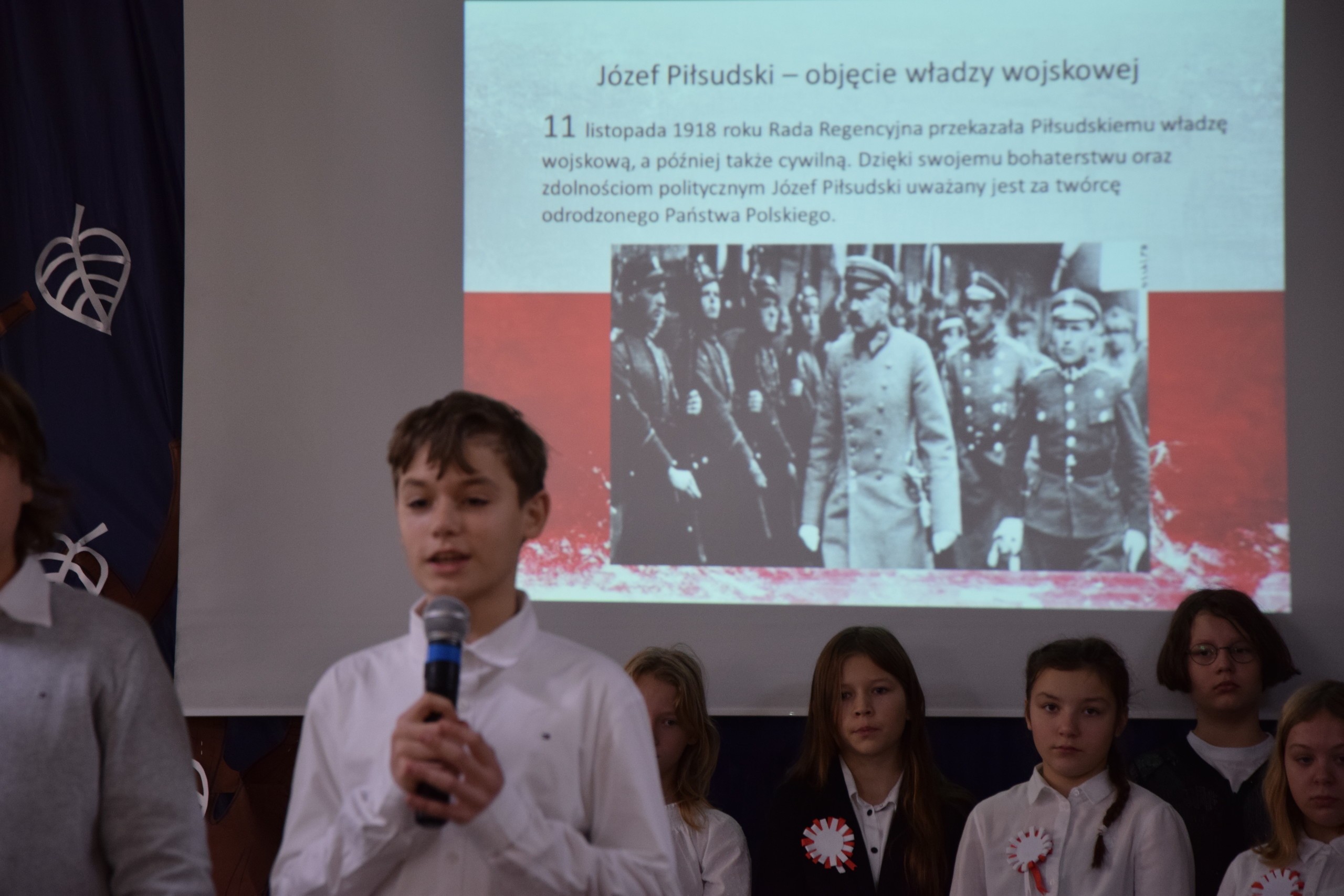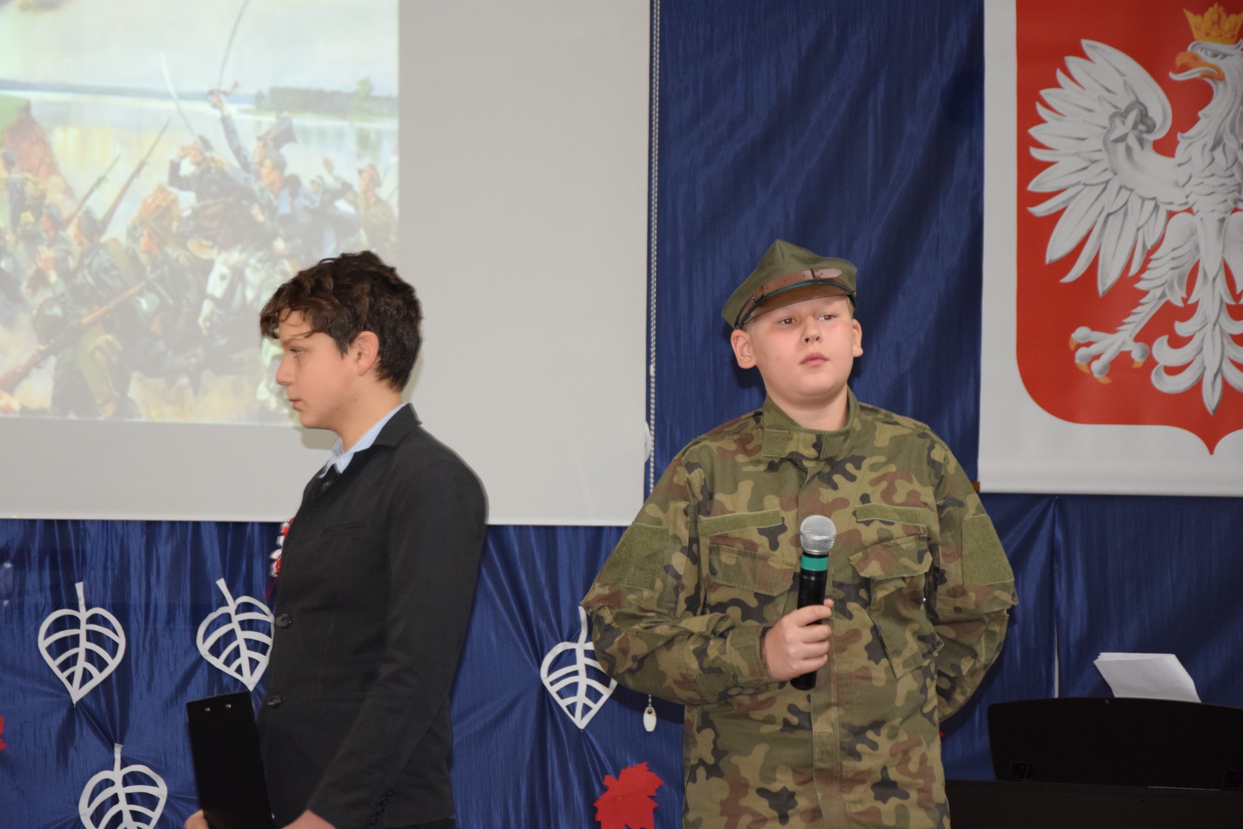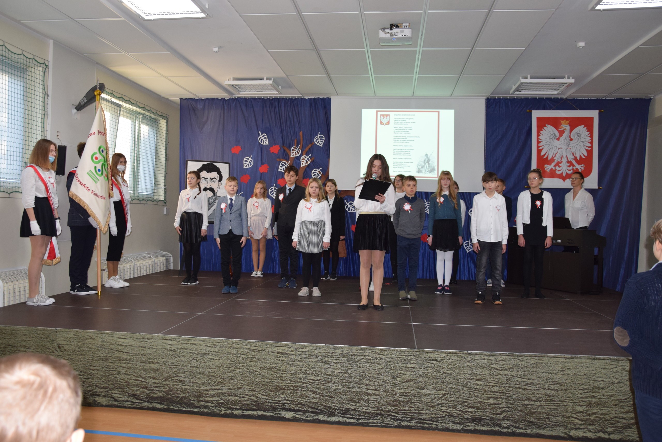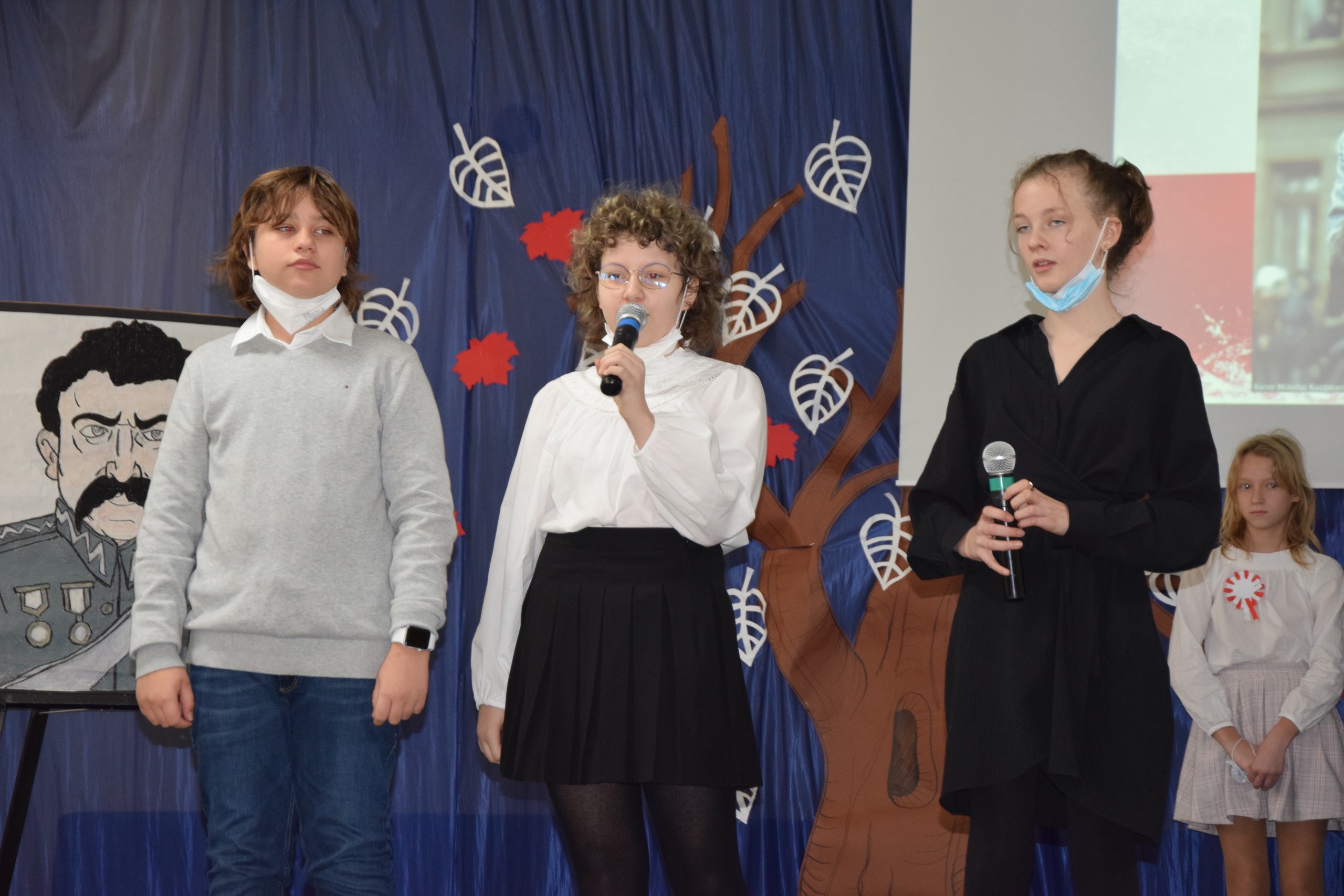 10 listopada 2021 uczniowie klas VIIA i VIA zaprezentowali przygotowany montaż słowno – muzyczny pt. Droga do niepodległości. W nastrój upamiętniający dawne, ciężkie czasy wprowadzili nas uczniowie klasy VIIA – Iness Jastrzembska oraz Kacper Walczyński. Jako narratorzy uroczystości przypominali uczniom fakty historyczne, uświadamiając, że pomimo 123 lat zaborów, Polacy nie stracili tożsamości narodowej. Podkreślił, że takie cechy jak jedność narodowa w myśl słów C. K. Norwida Ojczyzna to wielki zbiorowy obowiązek, dały siłę Polakom do uzyskania niepodległości. Podczas apelu uczniowie śpiewali pieśni patriotyczne, które pozwoliły zrozumieć rozterki i uczucia walczących o niepodległość.
