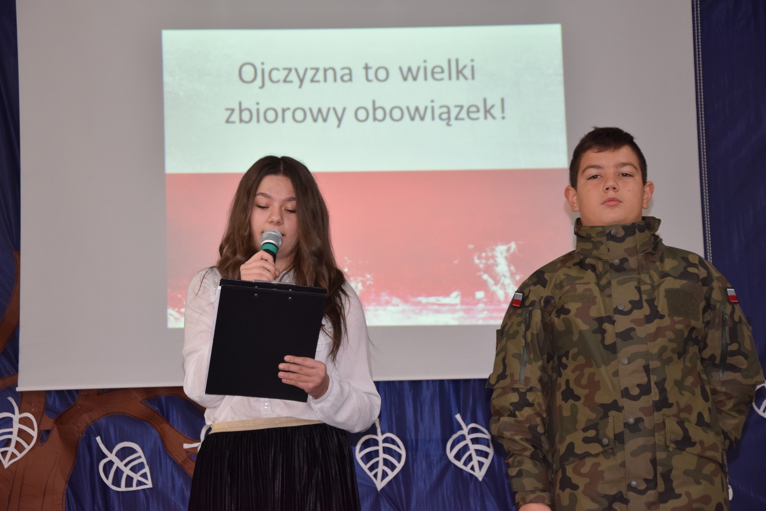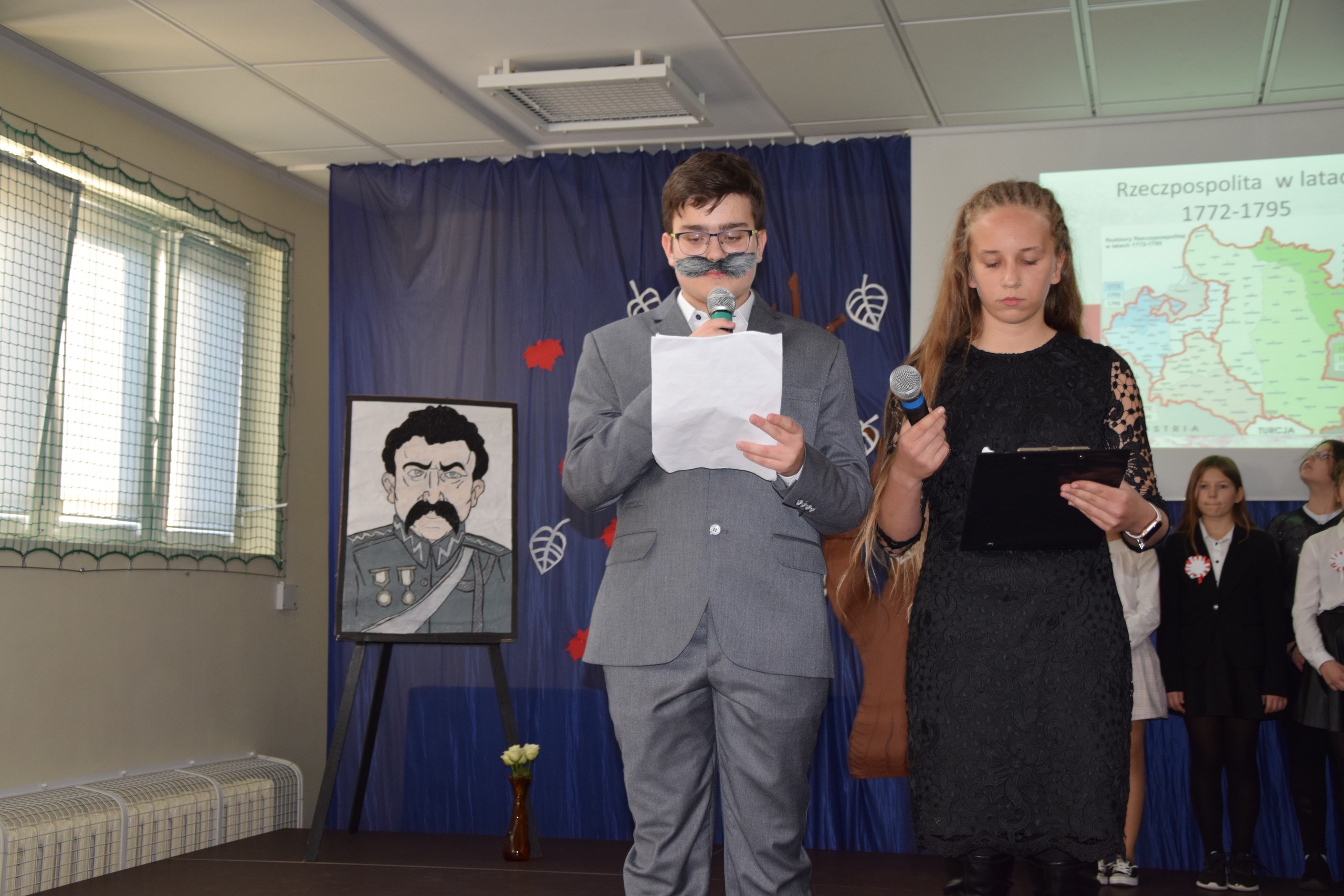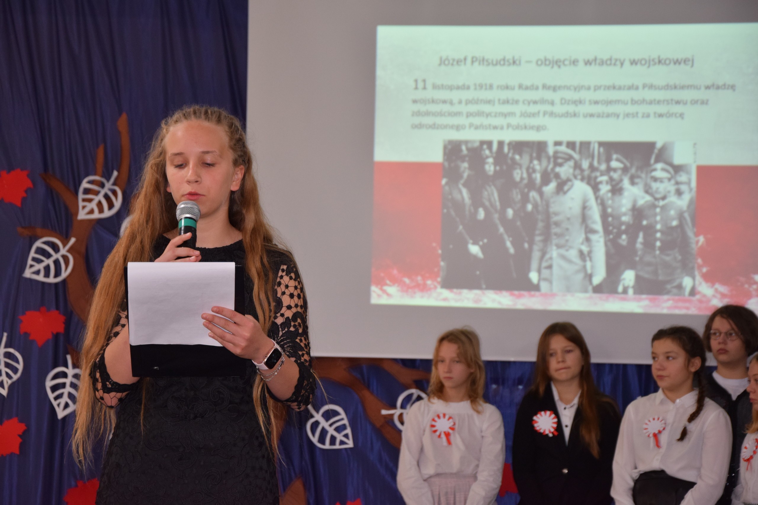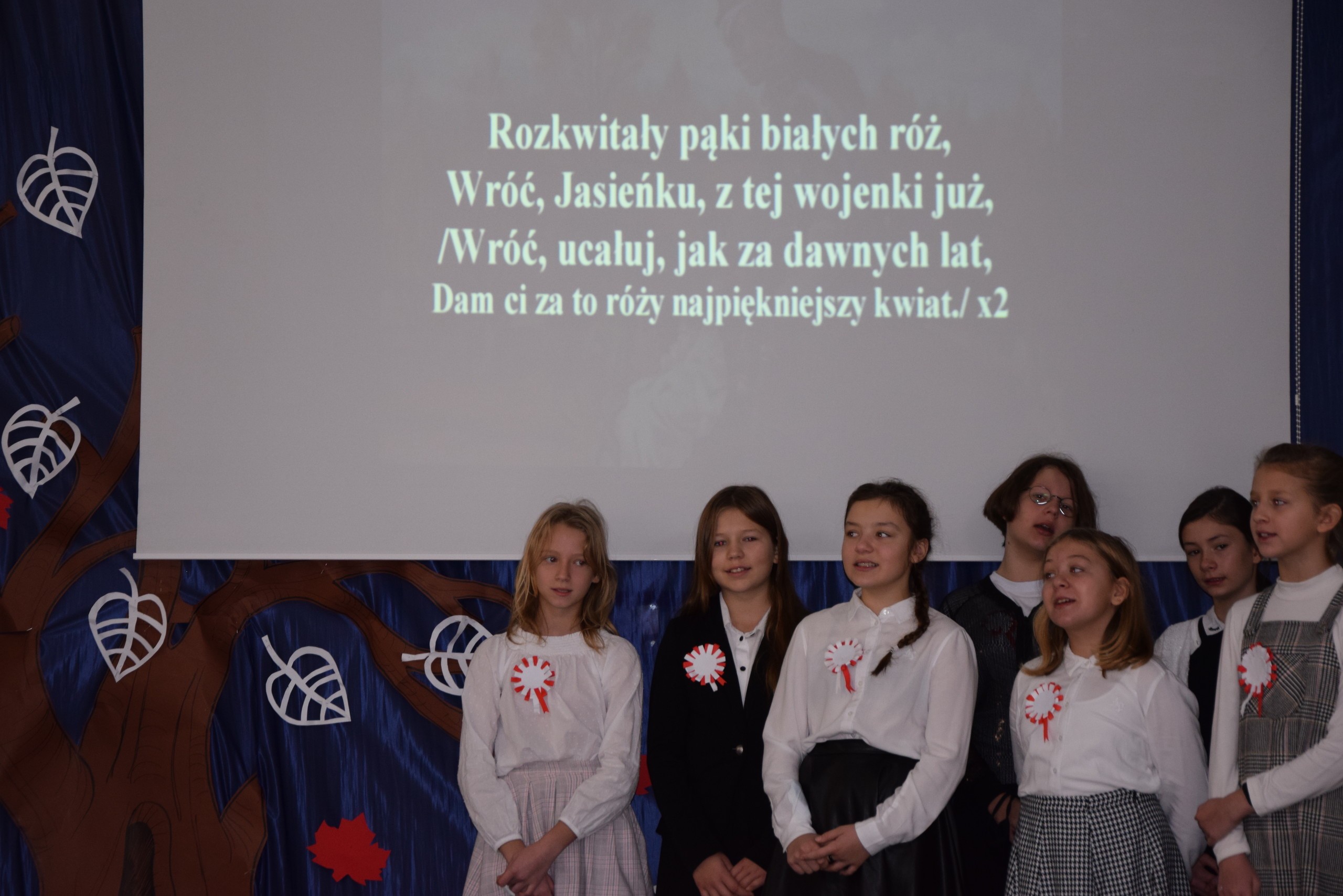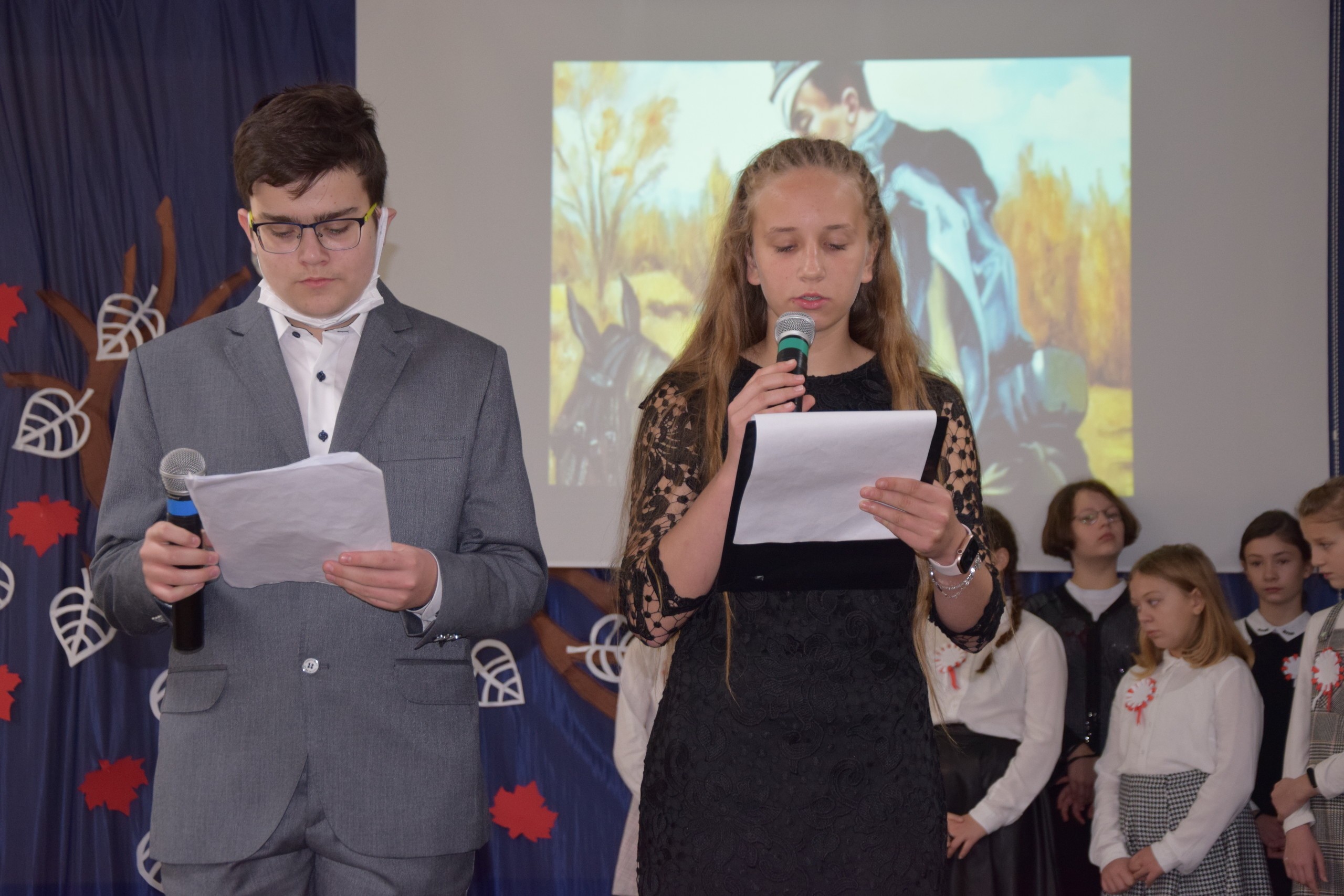 10 listopada 2021 uczniowie klas VIIA i VIA zaprezentowali przygotowany montaż słowno – muzyczny pt. Droga do niepodległości. W nastrój upamiętniający dawne, ciężkie czasy wprowadzili nas uczniowie klasy VIIA – Iness Jastrzembska oraz Kacper Walczyński. Jako narratorzy uroczystości przypominali uczniom fakty historyczne, uświadamiając, że pomimo 123 lat zaborów, Polacy nie stracili tożsamości narodowej. Podkreślił, że takie cechy jak jedność narodowa w myśl słów C. K. Norwida Ojczyzna to wielki zbiorowy obowiązek, dały siłę Polakom do uzyskania niepodległości. Podczas apelu uczniowie śpiewali pieśni patriotyczne, które pozwoliły zrozumieć rozterki i uczucia walczących o niepodległość.