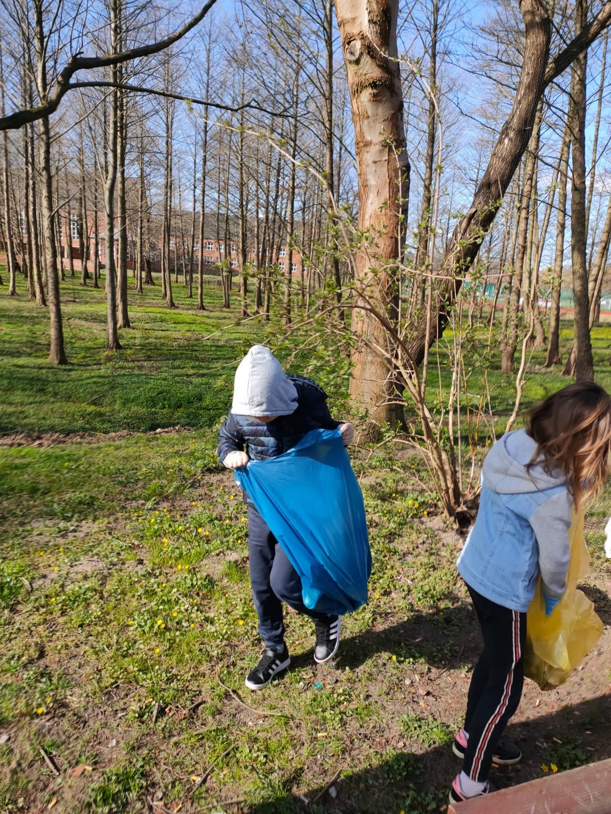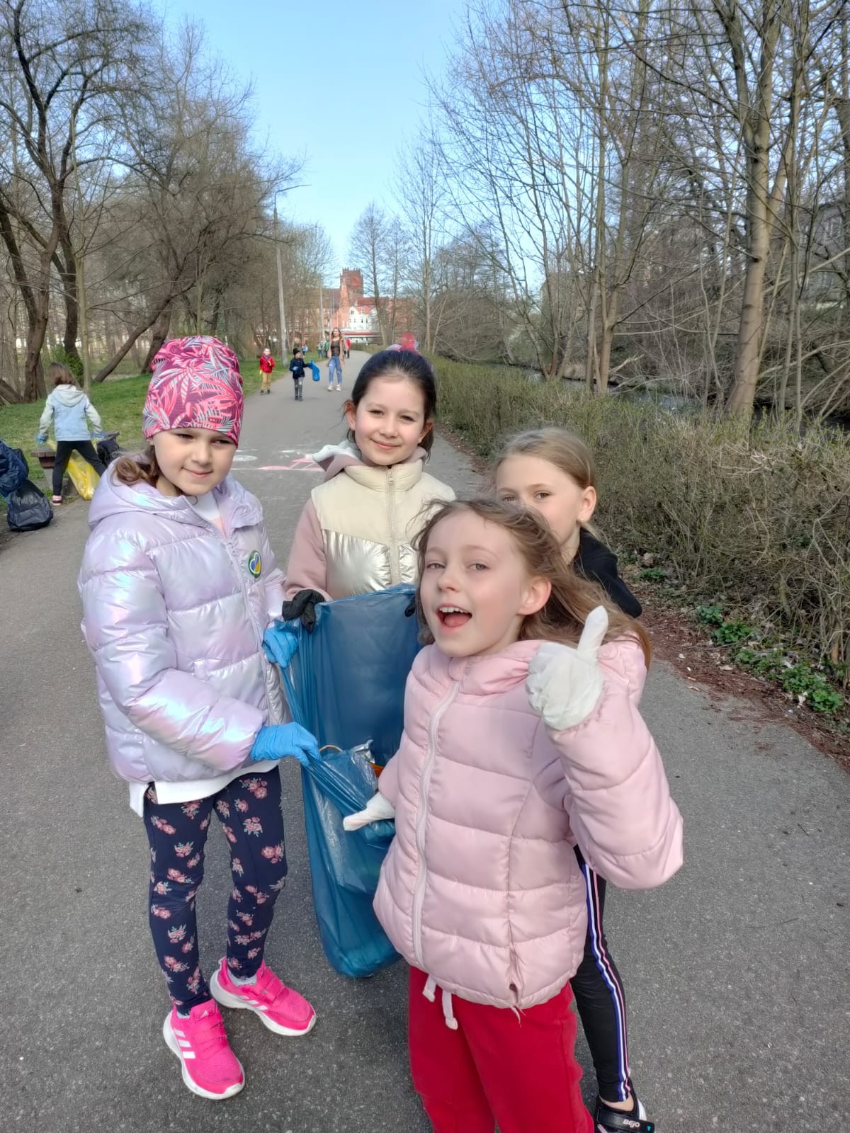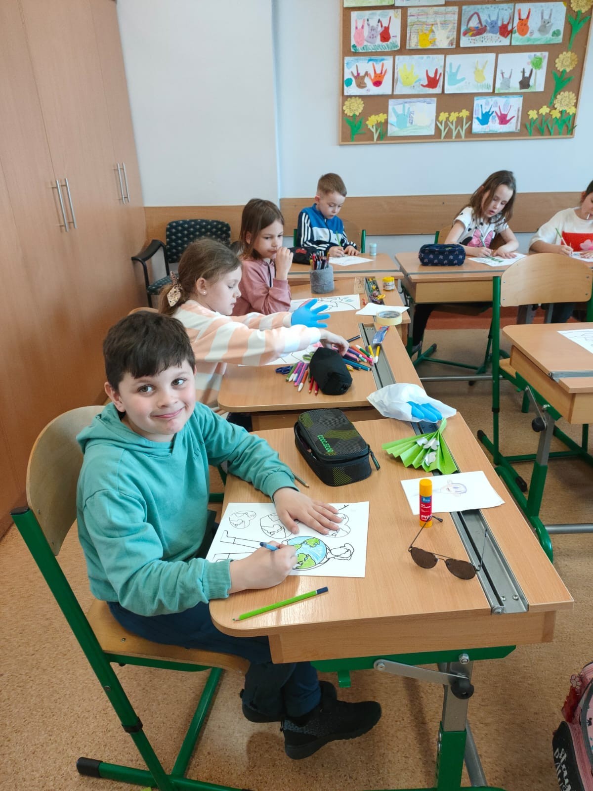 22 kwietnia klasa pierwsza świętowała Dzień Ziemi. Podczas zajęć  m.in. dzieci próbowały odpowiedzieć na pytanie co szkodzi naszej planecie? Odpowiedzi było wiele i wszystkie trafne widać, że ten temat nie jest obcy naszym pierwszakom. Kolejnym zagadnieniem lekcji było utrwalenie wiadomości na temat segregacji śmierci, okazuje się ,że dzieci nie mają z tym żadnego problemu. Doskonale wiedzą do którego pojemnika mają trafiać poszczególne odpady. Po tej części zajęć,klasa wybrała się do Parku Chrobrego włączając się do akcji Sprzątania Świata. Ta aktywność sprawiła dzieciom wiele radości, chętnie zbierały śmierci rywalizując między sobą kto zbierze ich najwięcej. Po powrocie do szkoły  dzieci wykonały pracę plastyczną w postaci kolorowanki XXL, która została umieszczona na gazetce przed klasą. To był pracowity i udany dzień.