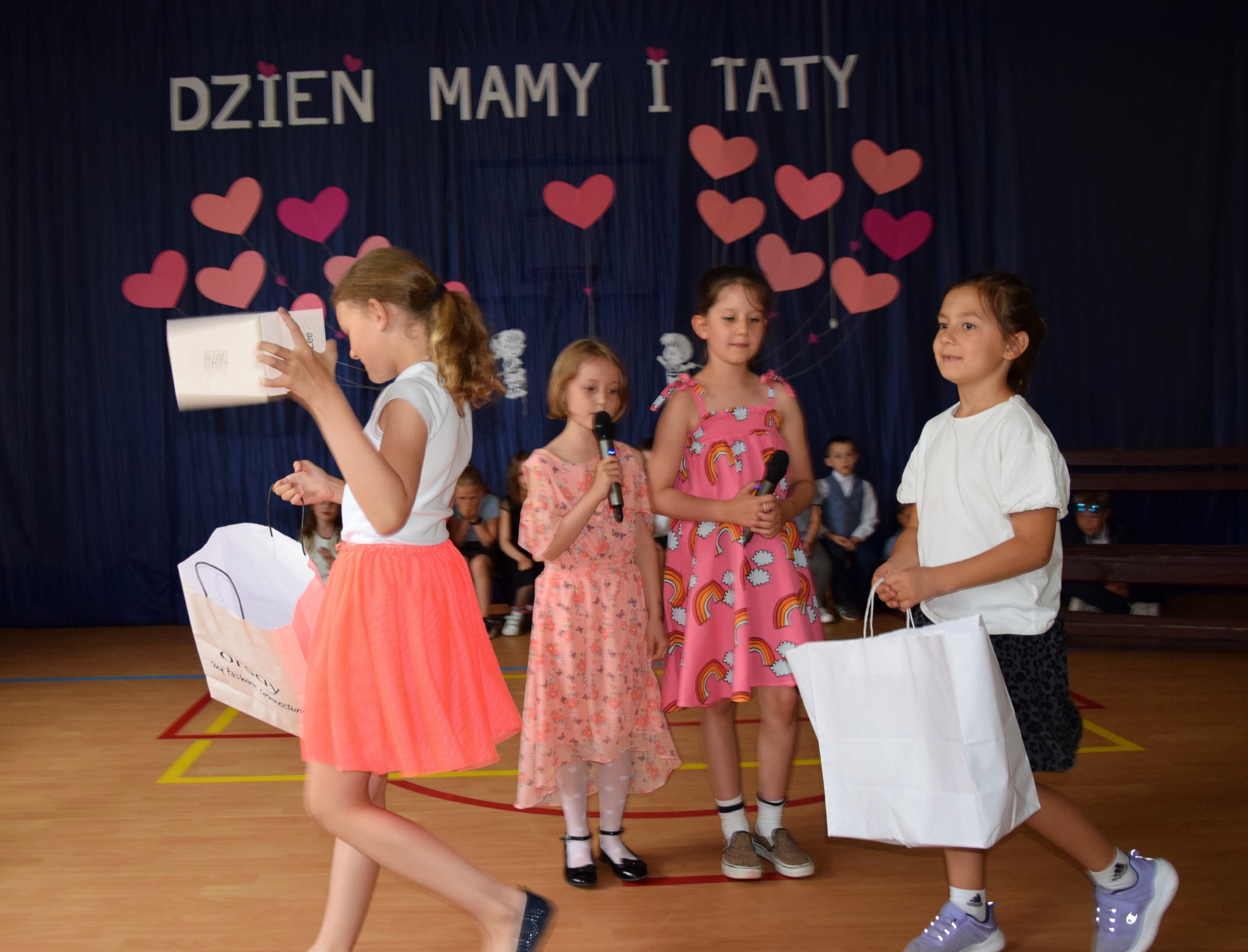 W poniedziałek 6 czerwca odbyła się uroczystość z okazji Dnia Mamy i Taty przygotowana przez klasę pierwszą. W części artystycznej dzieci, śpiewały piosenki, recytowały wiersze, a w specjalnie przygotowanej prezentacji audiowizualnej opowiedziały za co kochają swoich rodziców. Pierwszaki bardzo starały się podziękować rodzicom za miłość, cierpliwość i troskę. Atmosfera tej uroczystości była bardzo radosna. Na koniec dzieci wręczyły rodzicom upominki i zaprosiły na słodki poczęstunek.