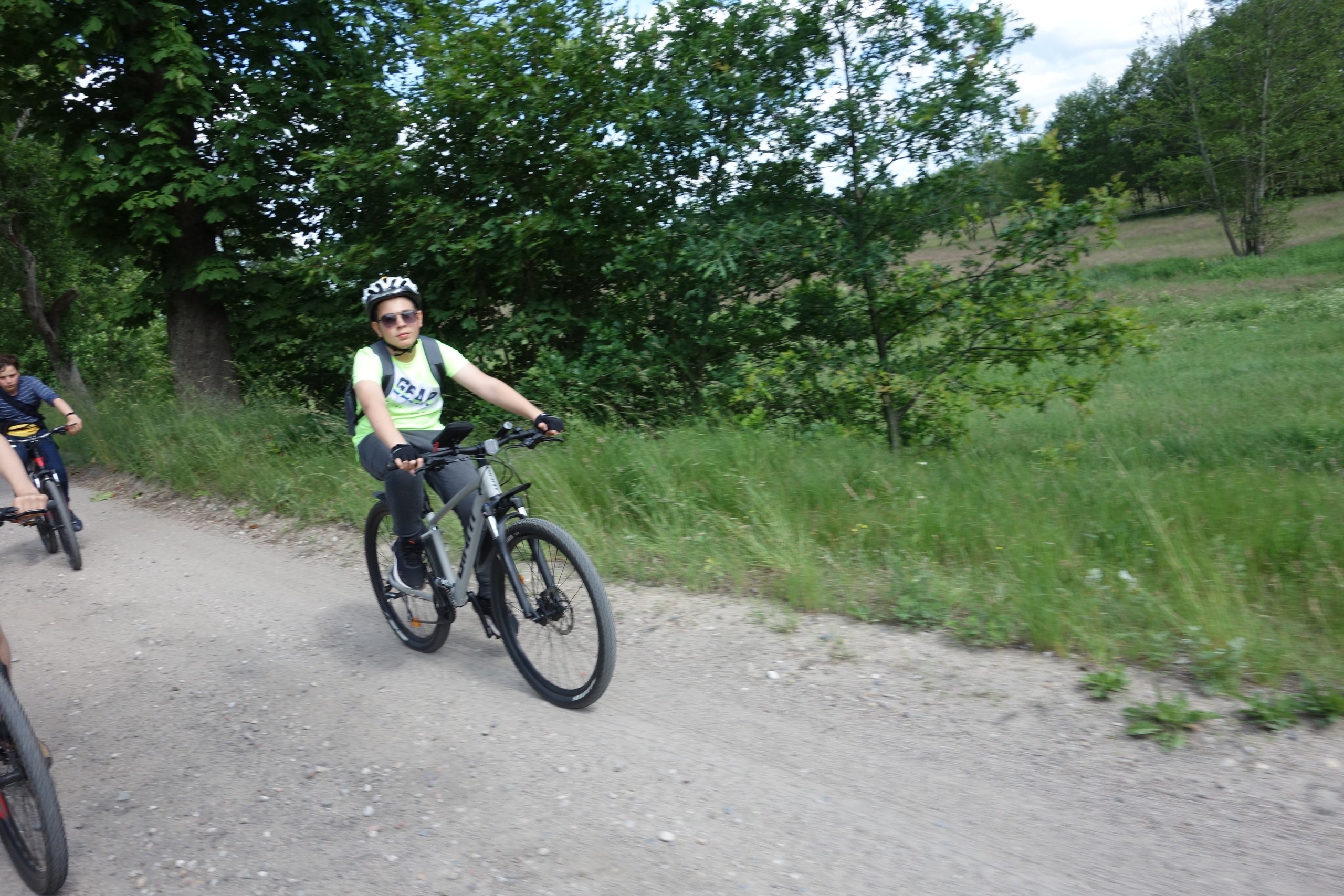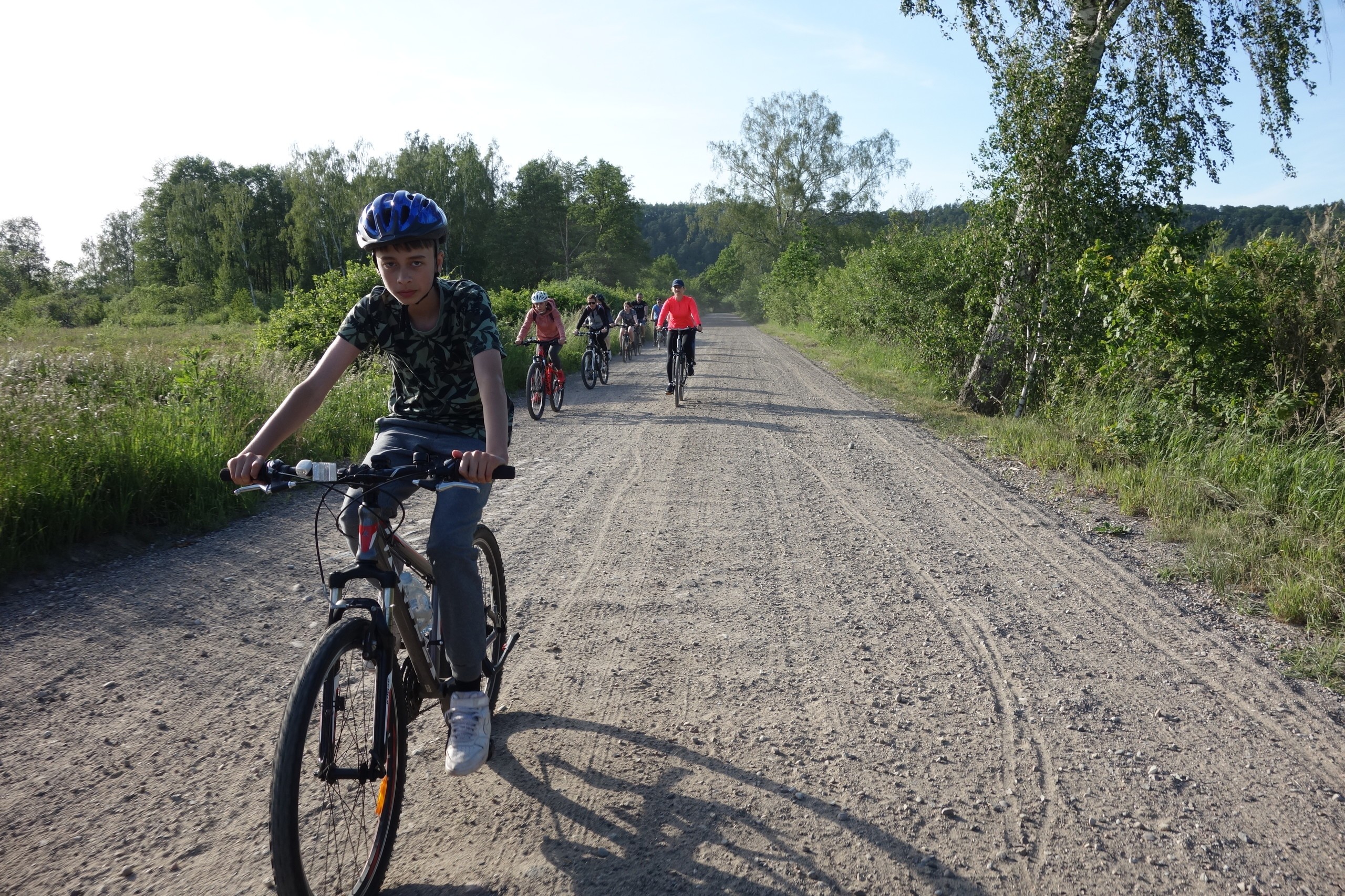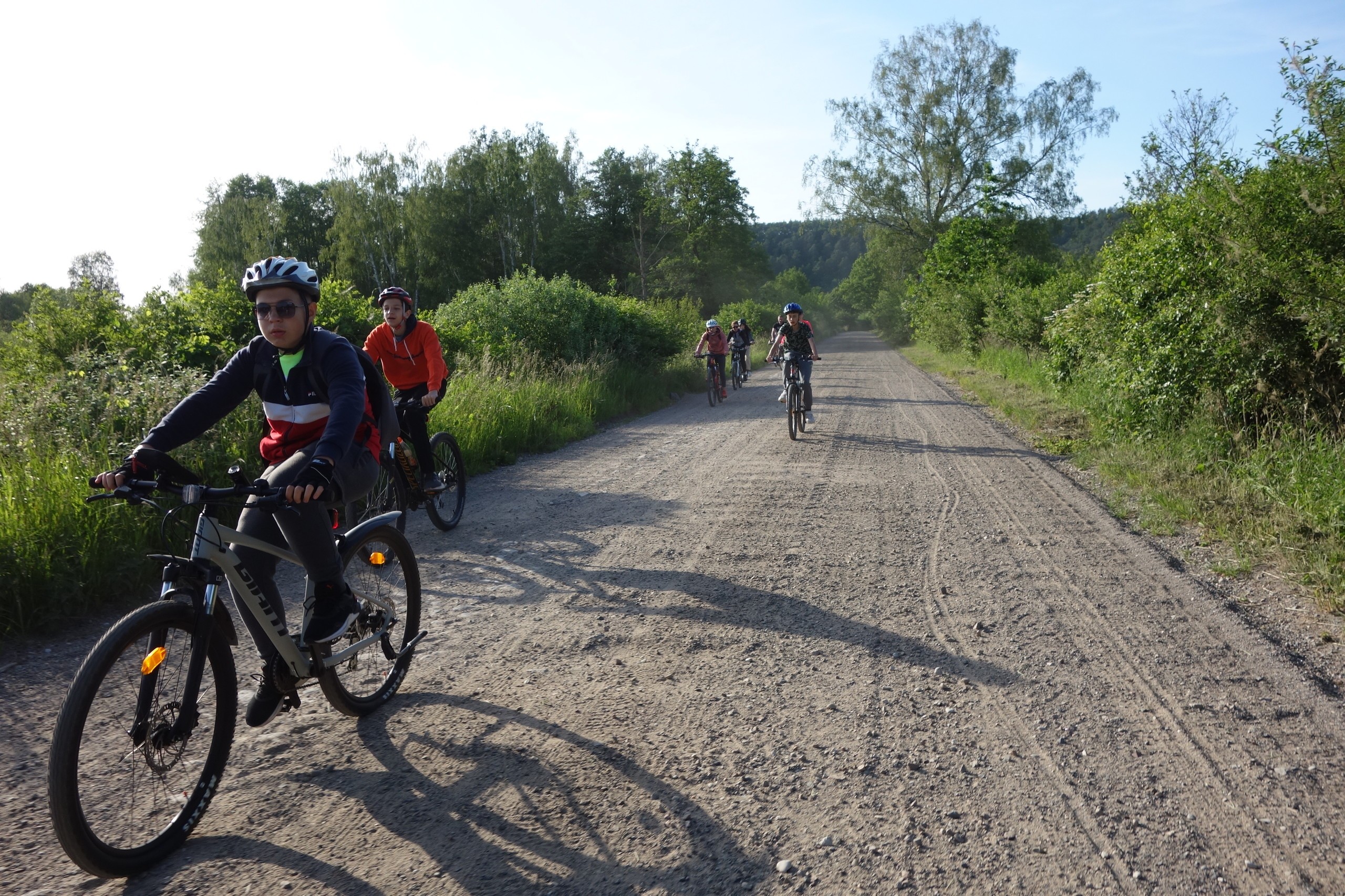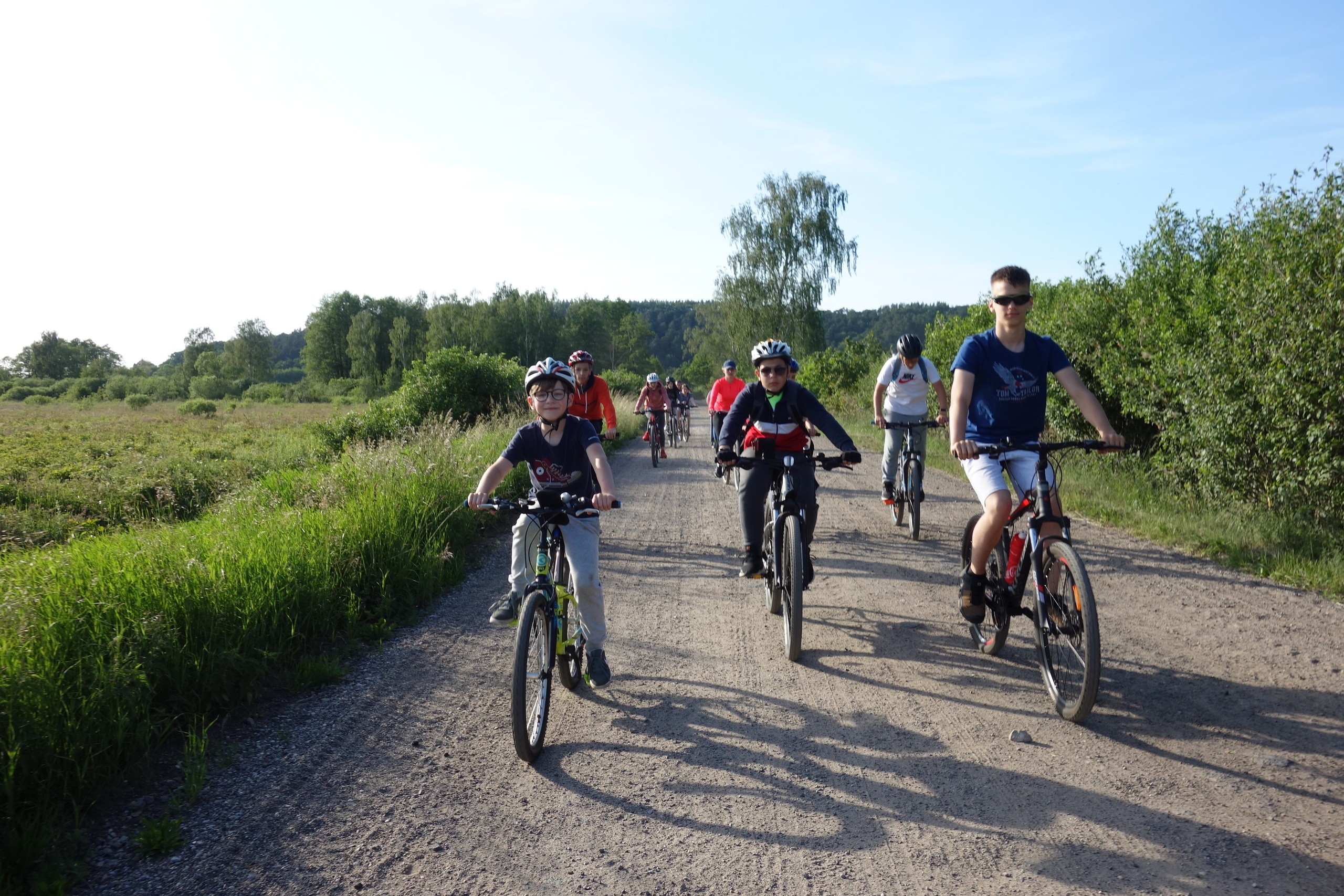 15 czerwca uczniowie klasy 7 b wraz z rodzicami wzięli udział w rajdzie rowerowym. Wycieczka rozpoczęła się pod szkołą i wiodła przez Nową Wieś, skąd malowniczymi drogami szutrowymi i polnymi dojechaliśmy do Chocielewka. Tam urządziliśmy sobie wspólny piknik i ognisko. Pogoda była wprost wymarzona, a humory wszystkim dopisywały. Był czas na wspólne rozmowy i wygłupy. Mogliśmy nacieszyć się sobą przed wakacjami. Aktywnie spędziliśmy popołudnie grając w piłkę nożną, rugby czy frisbee. Droga powrotna do Lęborka prowadziła przez Leśnice. Cała trasa liczyła ponad 20 km. Był to już nasz trzeci rowerowy wyjazd i na pewno nie ostatni, bo stał się on bowiem klasową tradycją!