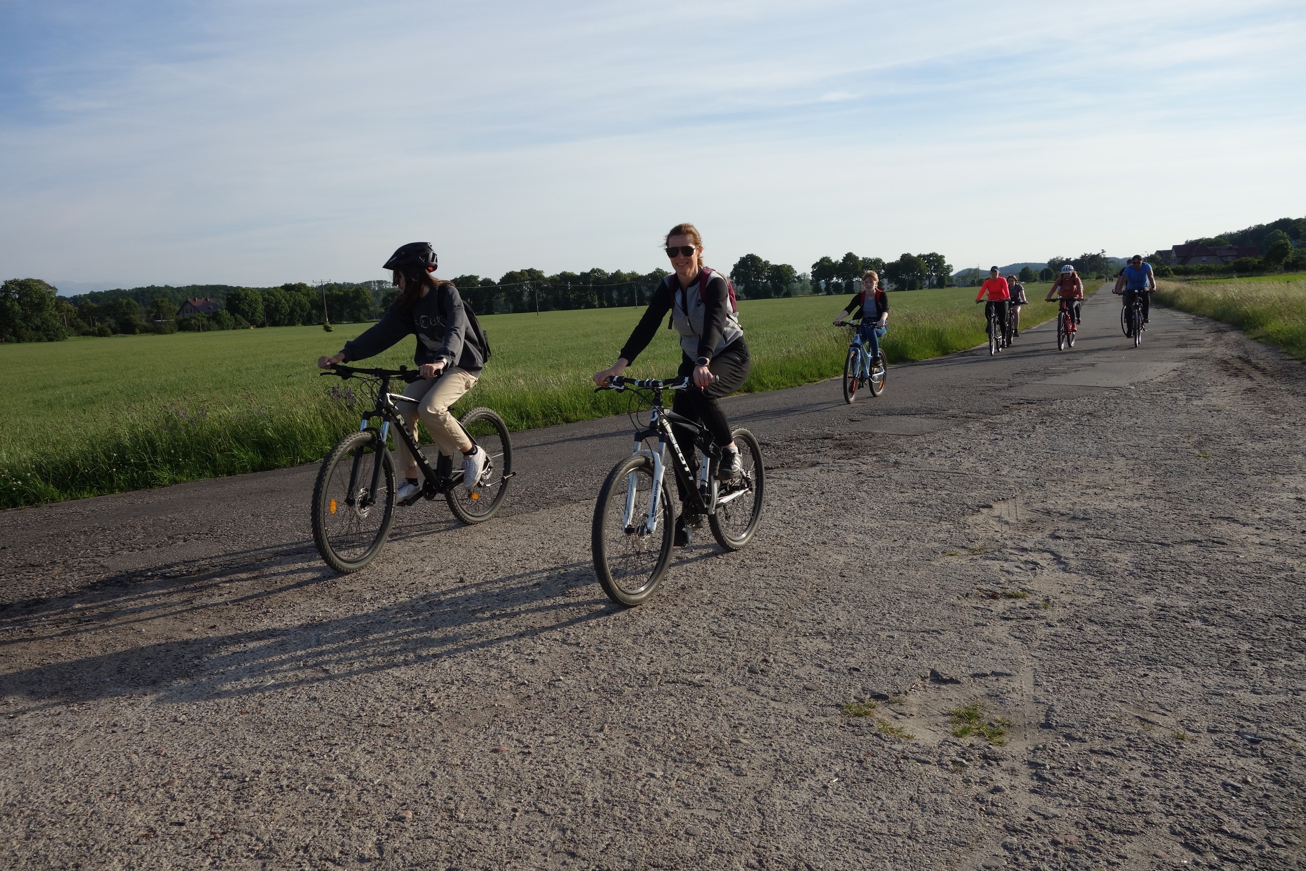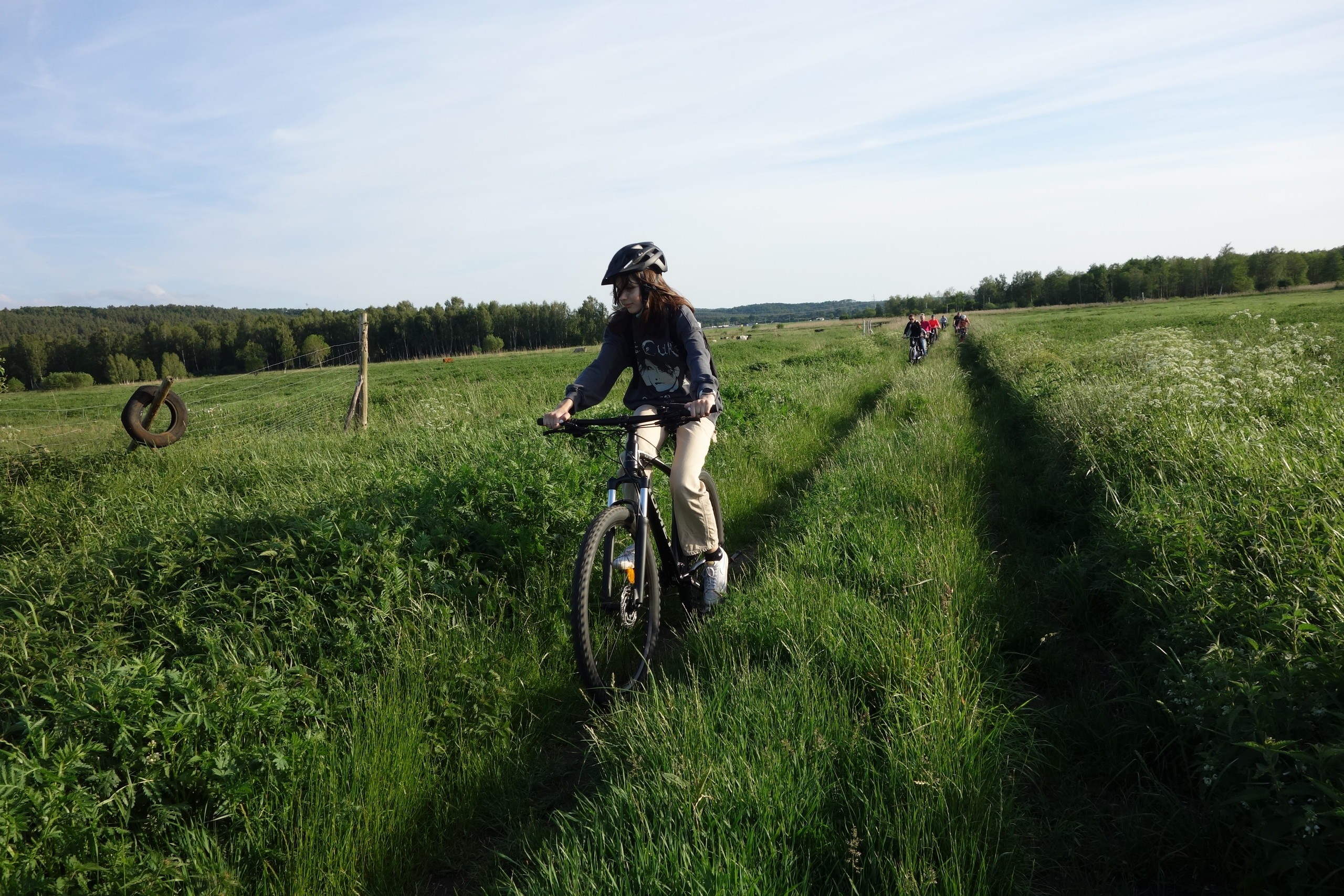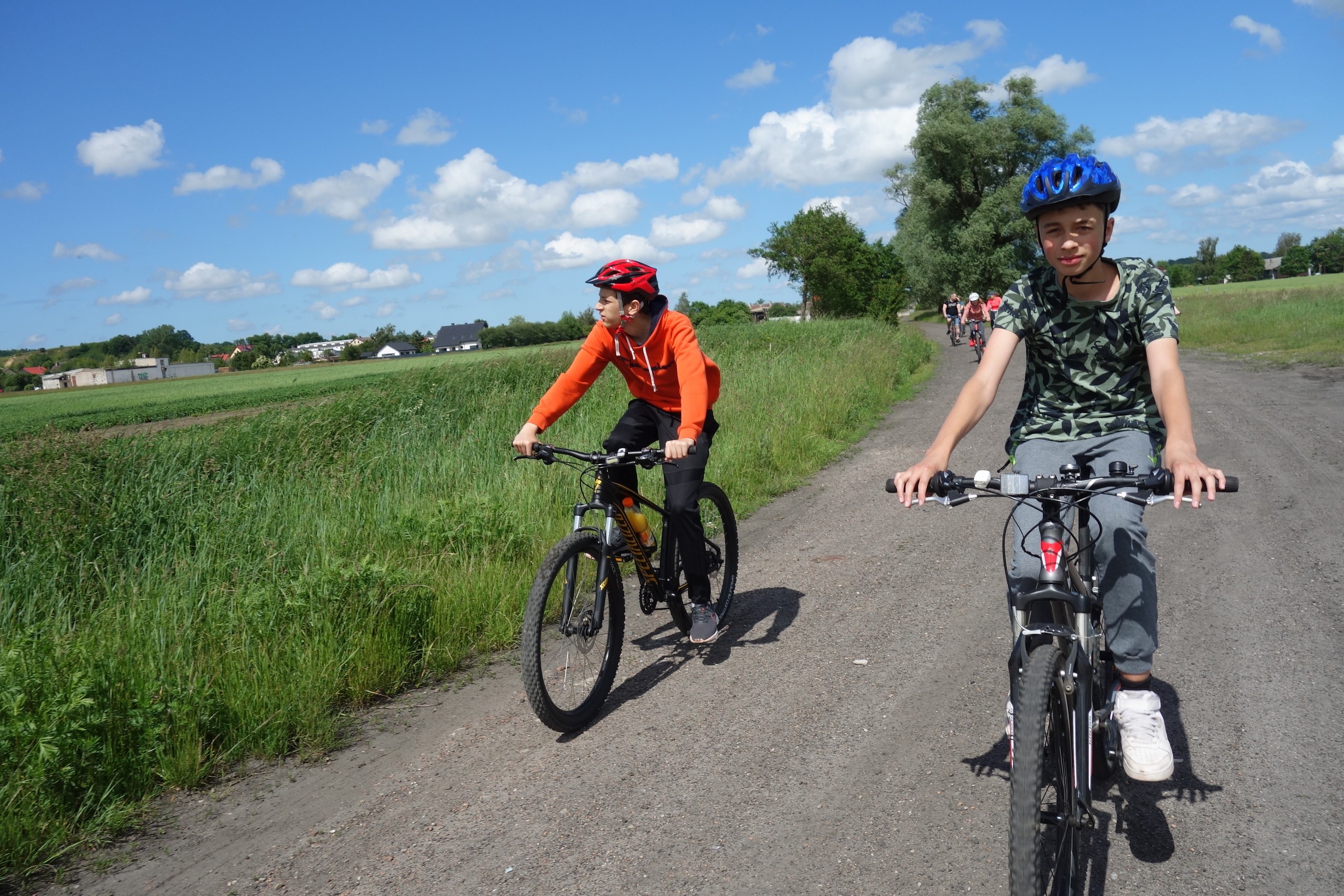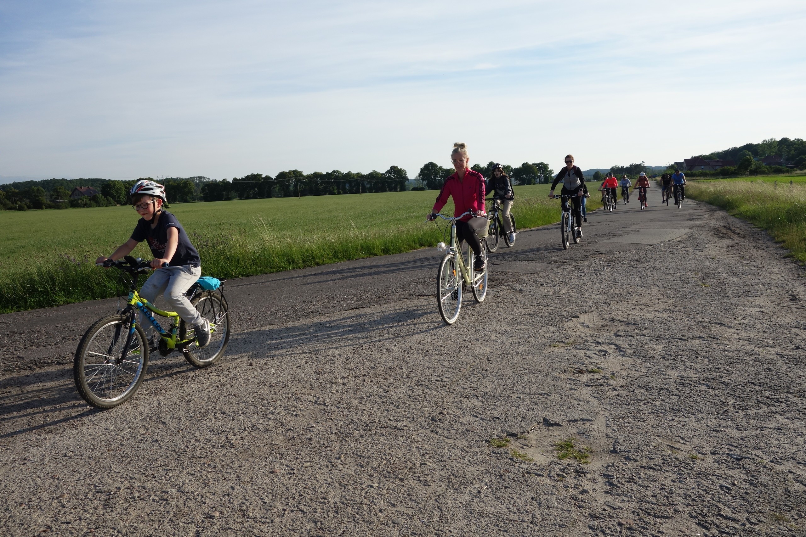 15 czerwca uczniowie klasy 7 b wraz z rodzicami wzięli udział w rajdzie rowerowym. Wycieczka rozpoczęła się pod szkołą i wiodła przez Nową Wieś, skąd malowniczymi drogami szutrowymi i polnymi dojechaliśmy do Chocielewka. Tam urządziliśmy sobie wspólny piknik i ognisko. Pogoda była wprost wymarzona, a humory wszystkim dopisywały. Był czas na wspólne rozmowy i wygłupy. Mogliśmy nacieszyć się sobą przed wakacjami. Aktywnie spędziliśmy popołudnie grając w piłkę nożną, rugby czy frisbee. Droga powrotna do Lęborka prowadziła przez Leśnice. Cała trasa liczyła ponad 20 km. Był to już nasz trzeci rowerowy wyjazd i na pewno nie ostatni, bo stał się on bowiem klasową tradycją!