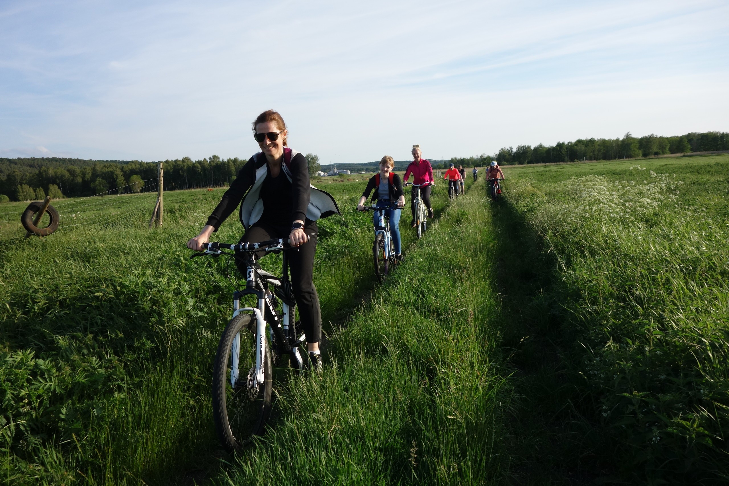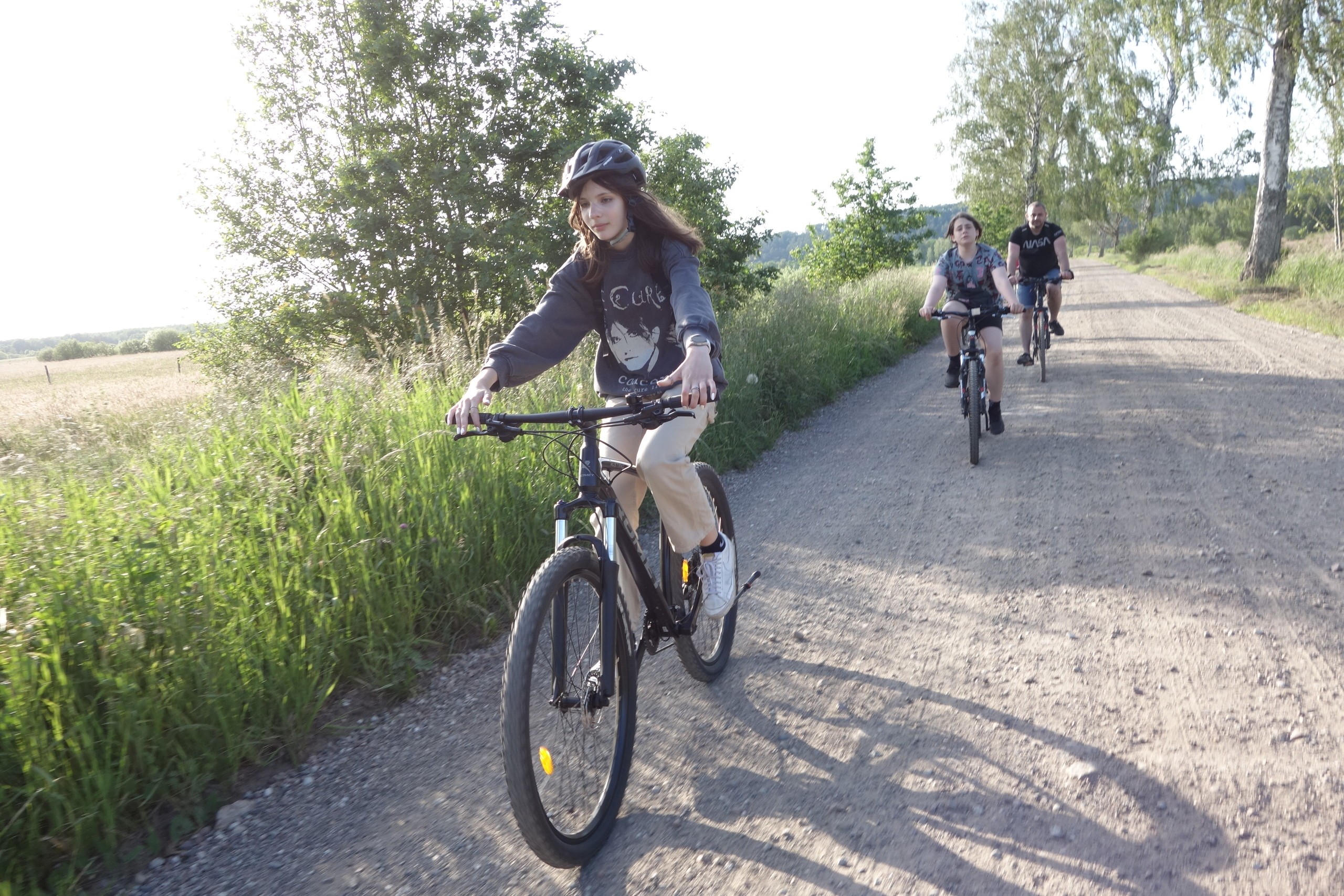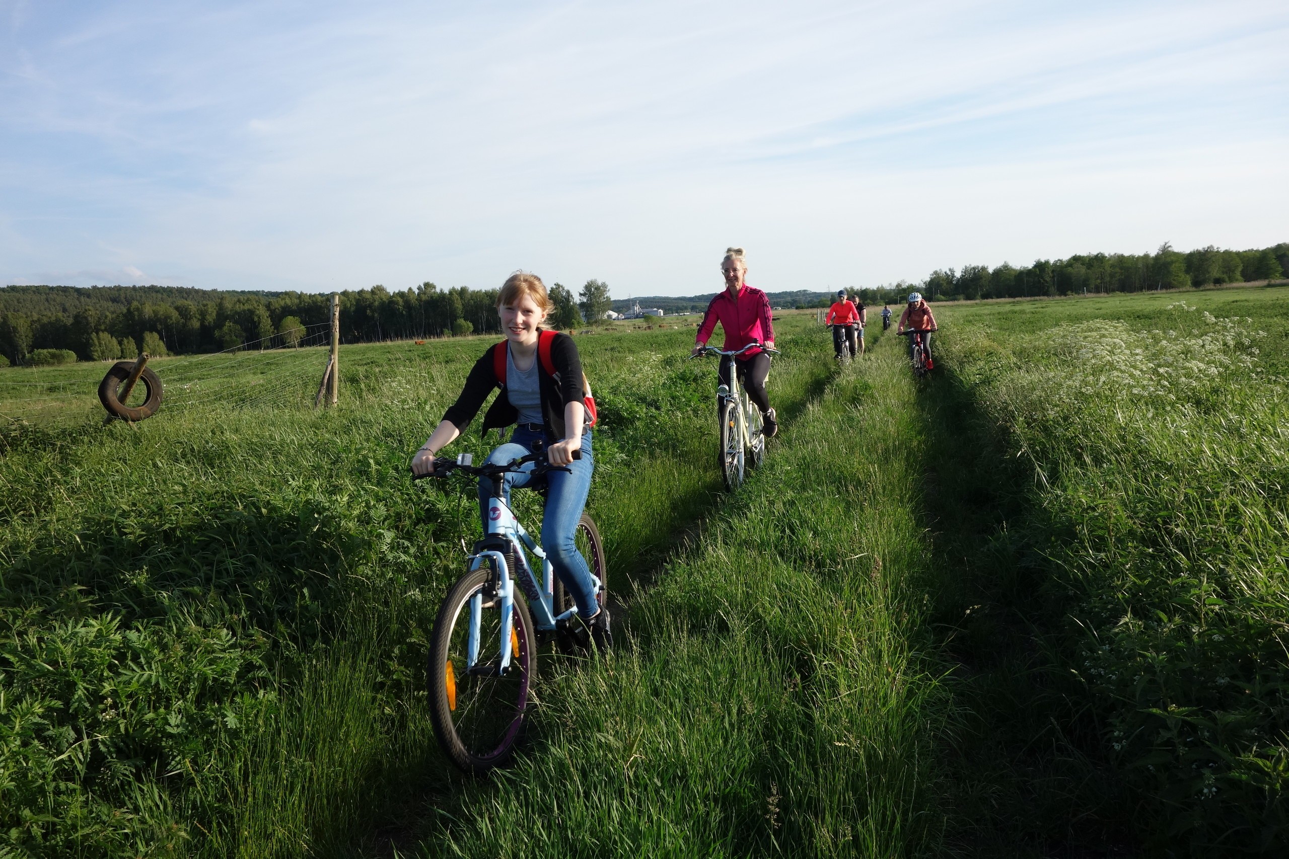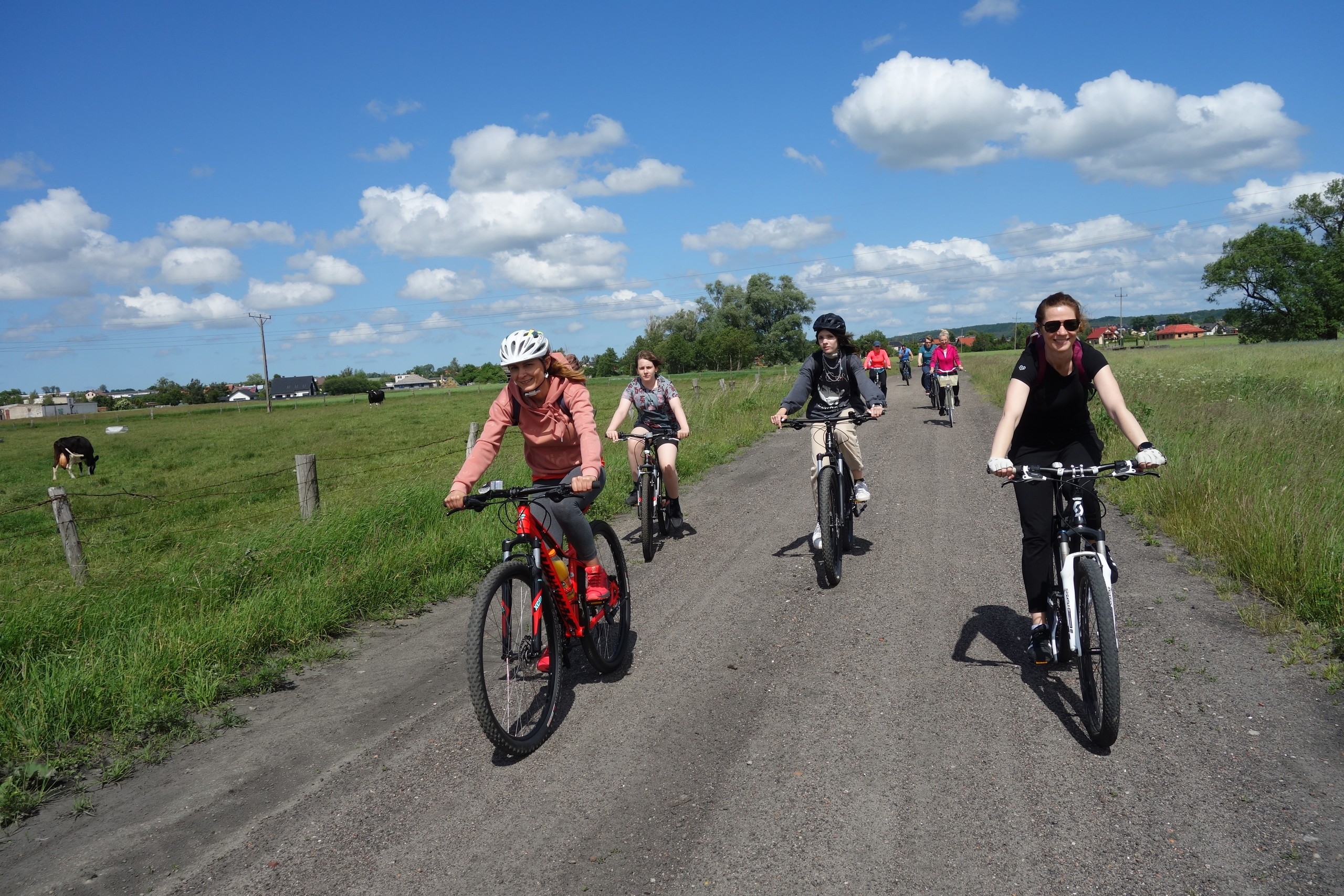 15 czerwca uczniowie klasy 7 b wraz z rodzicami wzięli udział w rajdzie rowerowym. Wycieczka rozpoczęła się pod szkołą i wiodła przez Nową Wieś, skąd malowniczymi drogami szutrowymi i polnymi dojechaliśmy do Chocielewka. Tam urządziliśmy sobie wspólny piknik i ognisko. Pogoda była wprost wymarzona, a humory wszystkim dopisywały. Był czas na wspólne rozmowy i wygłupy. Mogliśmy nacieszyć się sobą przed wakacjami. Aktywnie spędziliśmy popołudnie grając w piłkę nożną, rugby czy frisbee. Droga powrotna do Lęborka prowadziła przez Leśnice. Cała trasa liczyła ponad 20 km. Był to już nasz trzeci rowerowy wyjazd i na pewno nie ostatni, bo stał się on bowiem klasową tradycją!