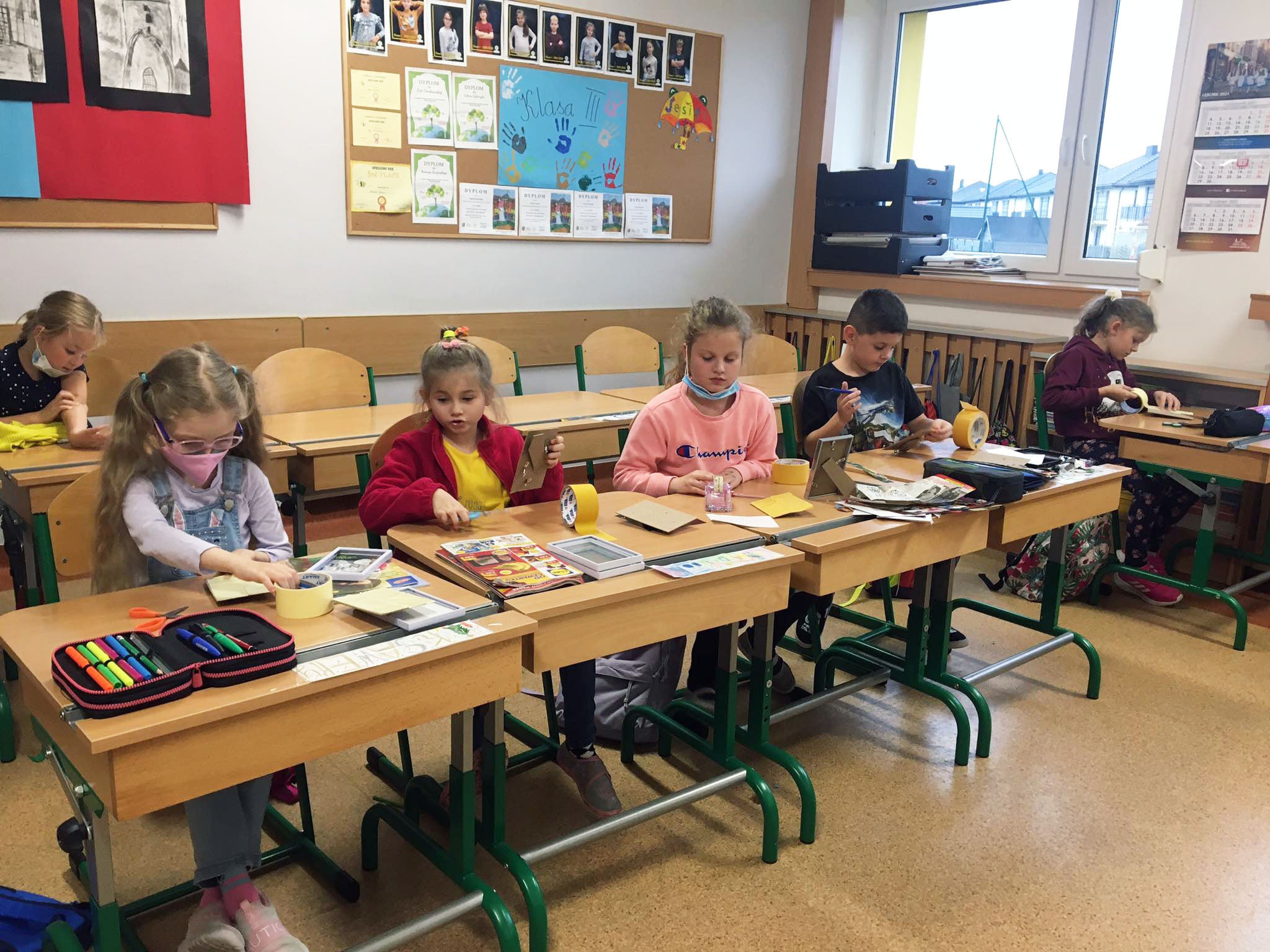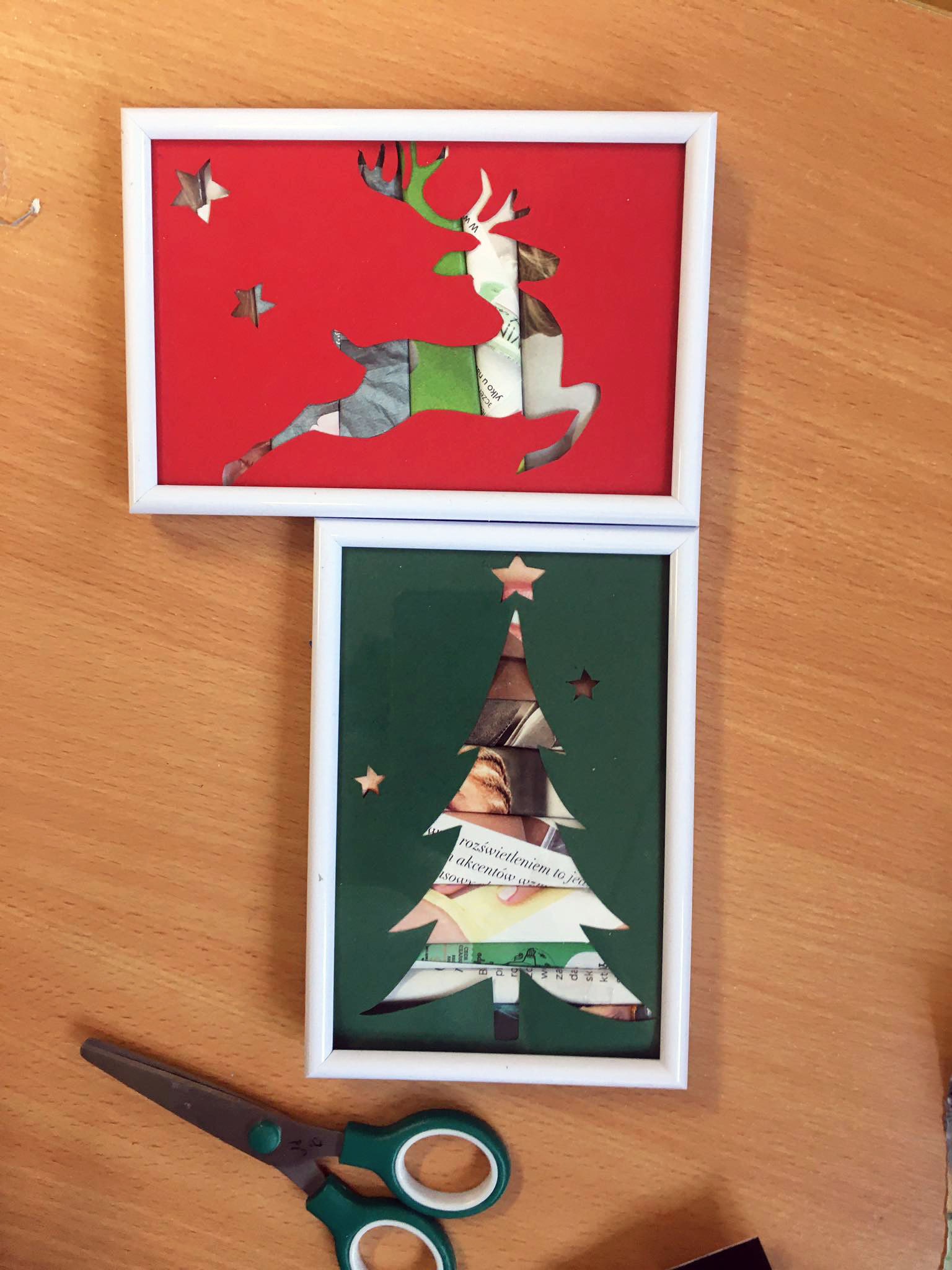 "Złote Rączki" wykonały pierwsze w tym roku bożonarodzeniowe prace. Tym razem postanowiliśmy wykorzystać stare gazety. Wykonaliśmy z nich obrazki. Mamy dla Was dobrą wiadomość! Część obrazków będzie można kupić na świątecznym kiermaszu szkolnym.