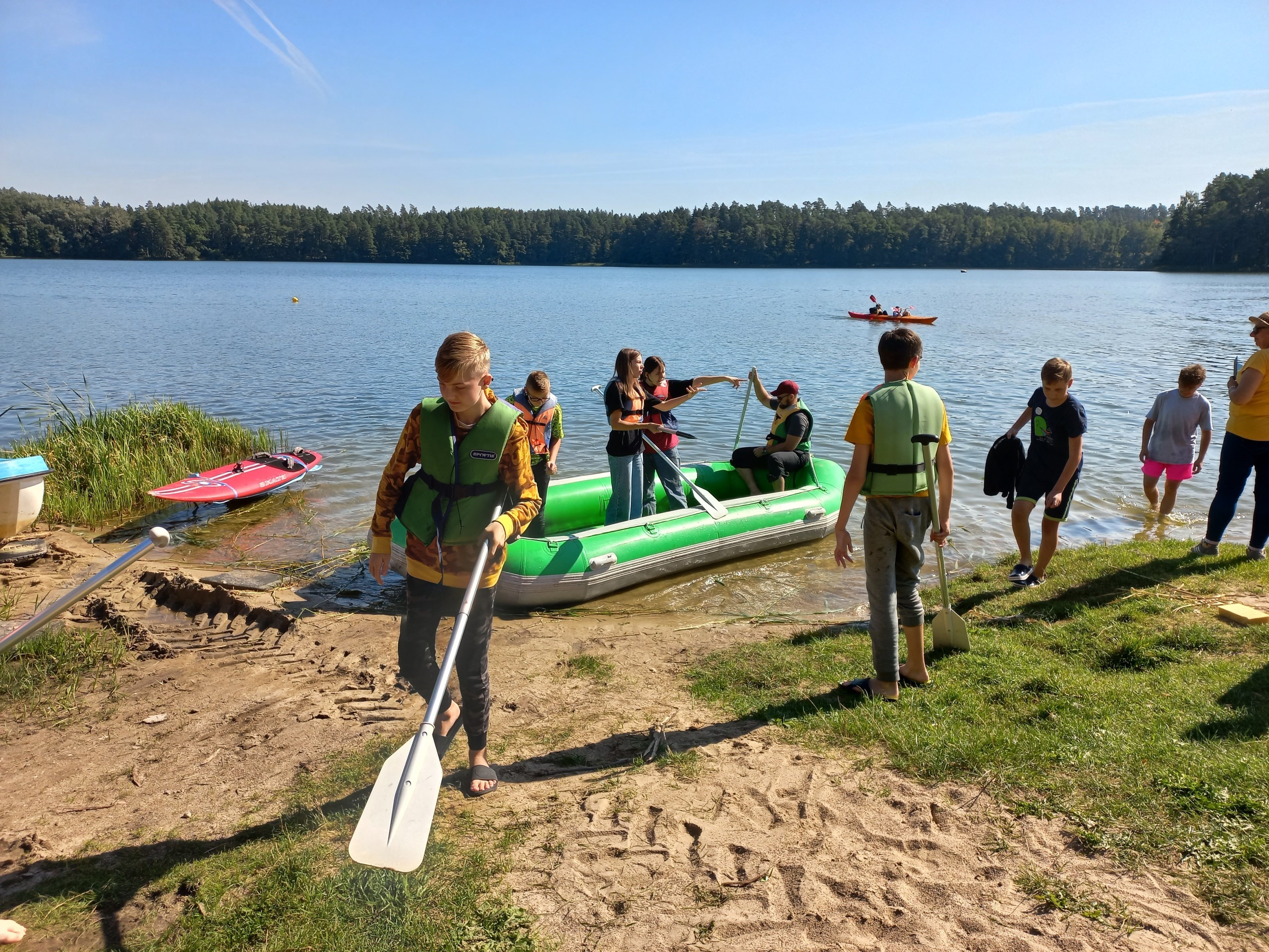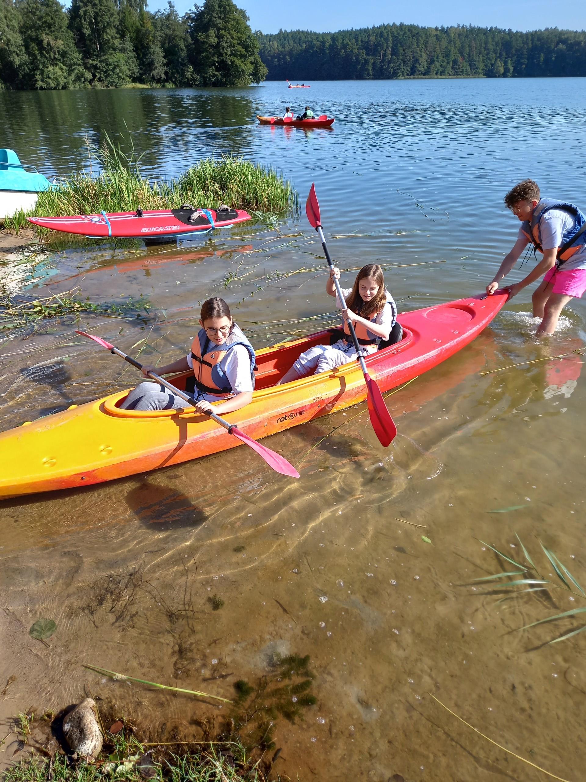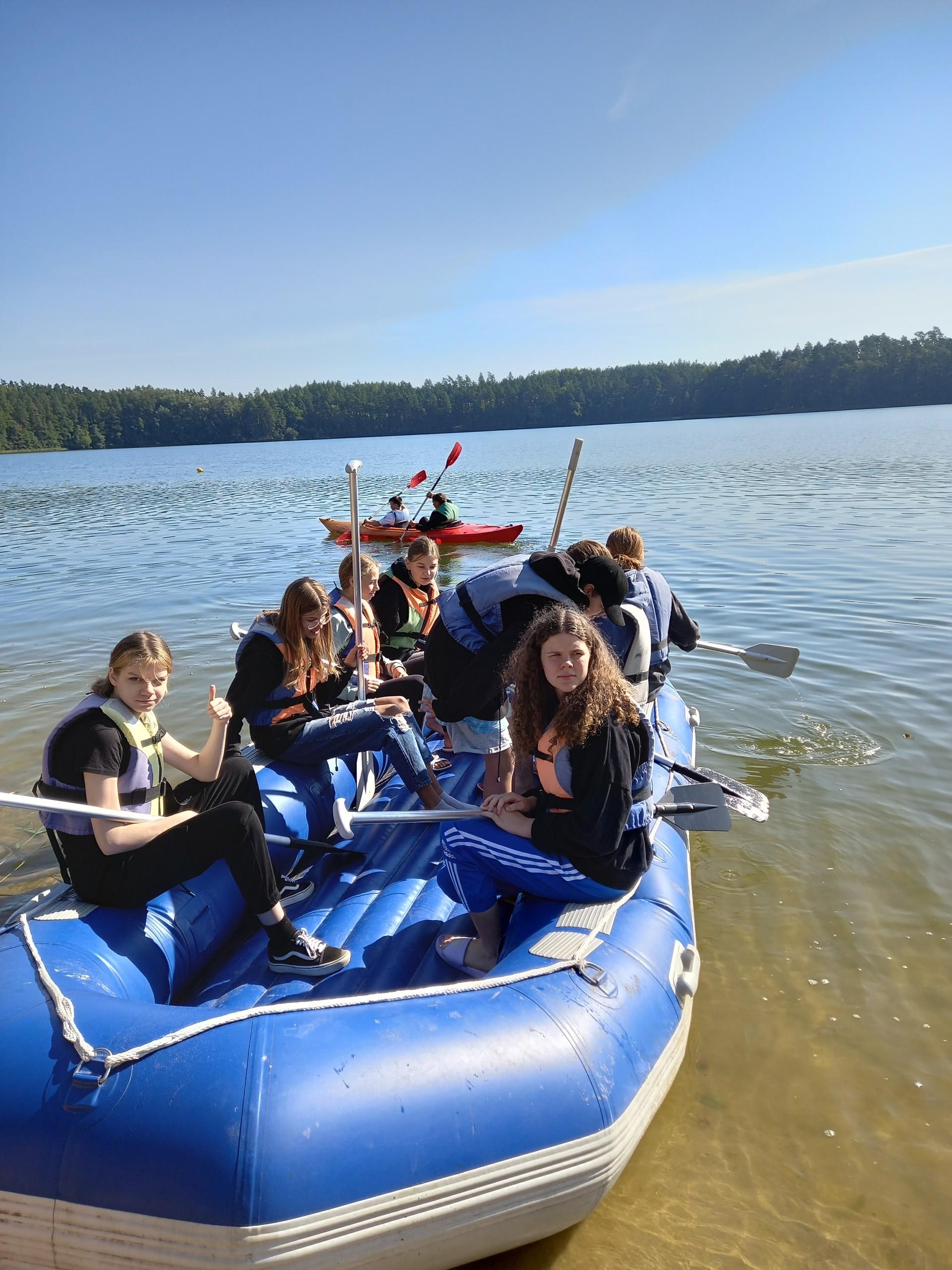 W dniach od 6.09. do 8.09.2021r. odbyła się integracyjna wycieczka na Mazury, na którą pojechali uczniowie klas 8A i 8B. W miejscowości Piecki zostaliśmy zakwaterowani w pięknie położonym ośrodku „Mazurskie chaty”. Czas mijał nam szybko na wspólnych zabawach, grach i konkursach. Mogliśmy wykazać się na ściance wspinaczkowej, parku linowym, grach terenowych. Korzystając z przepięknej pogody pływaliśmy kajakami i pontonami po jeziorze Węgiel. Namiastkę atrakcji oddają poniższe zdjęcia...