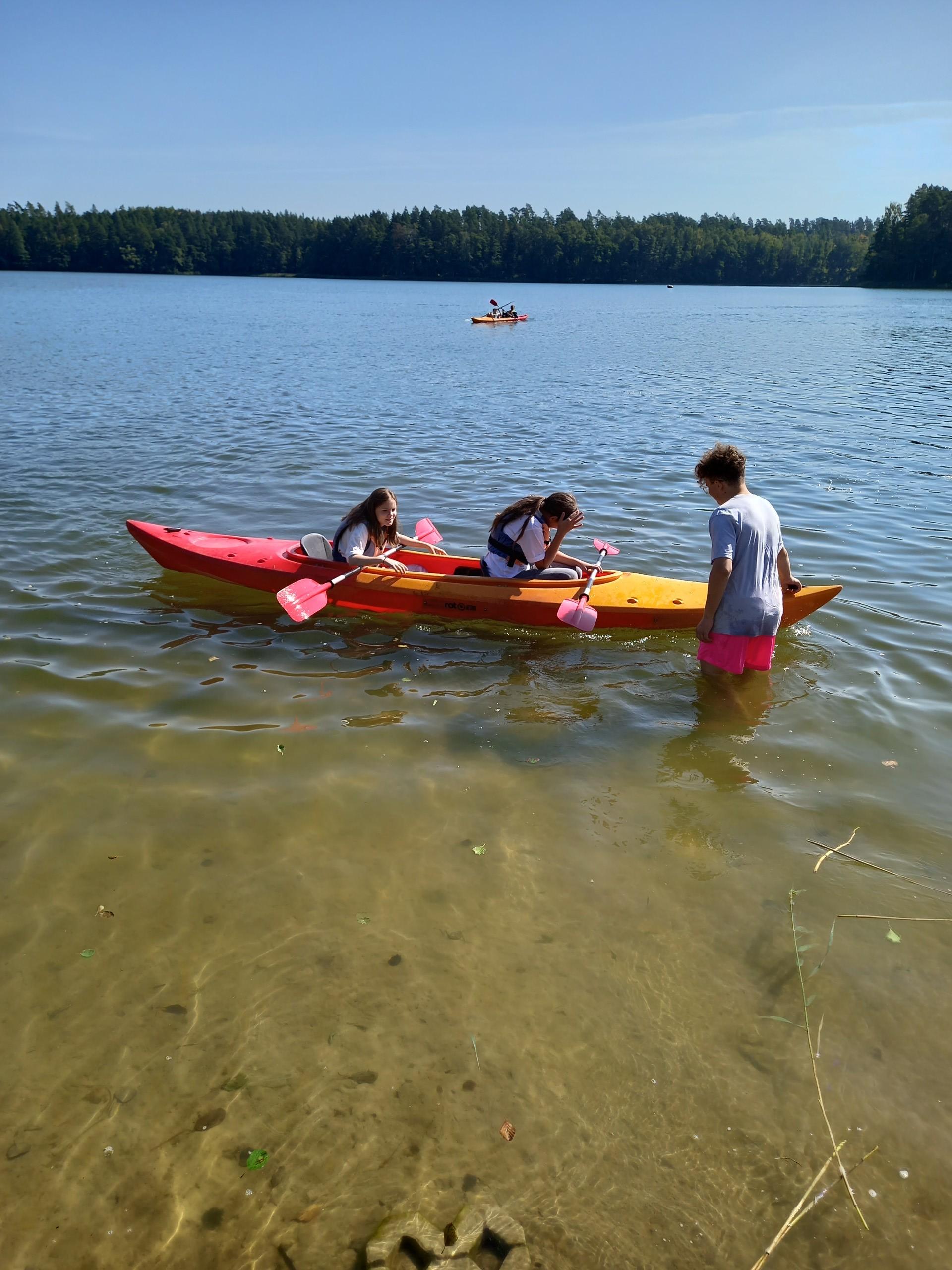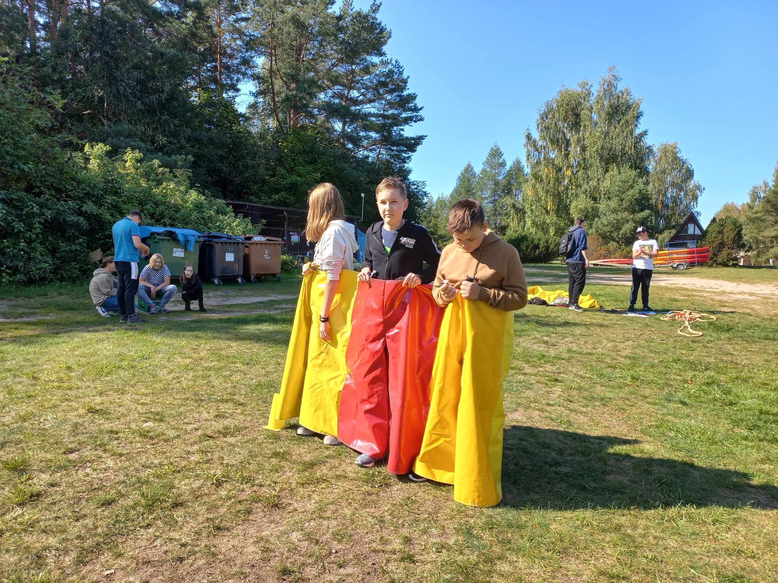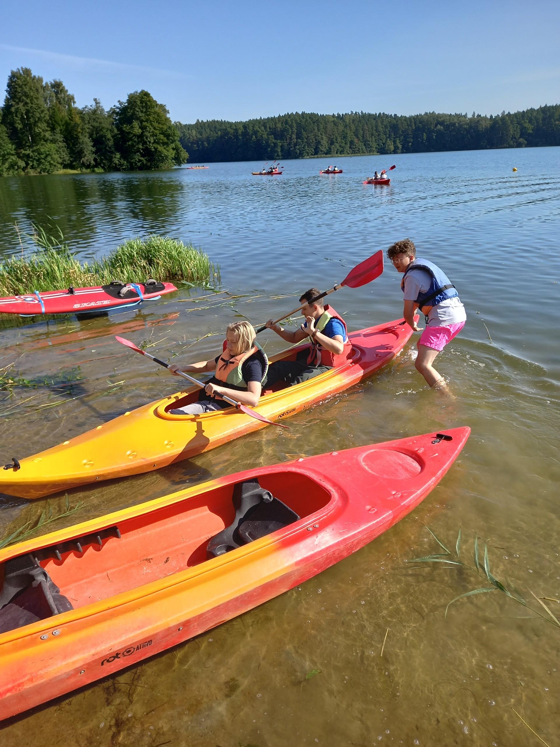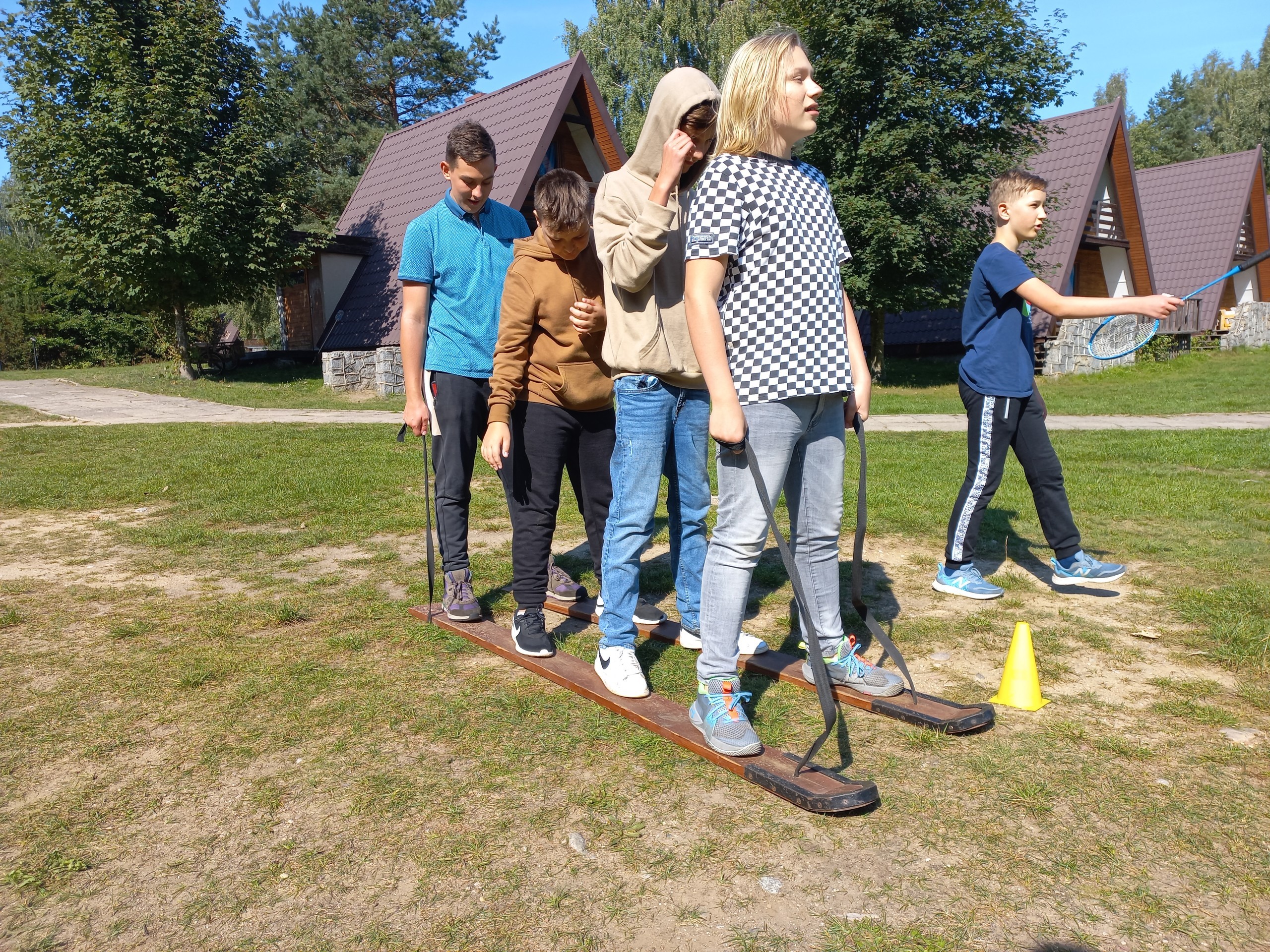 W dniach od 6.09. do 8.09.2021r. odbyła się integracyjna wycieczka na Mazury, na którą pojechali uczniowie klas 8A i 8B. W miejscowości Piecki zostaliśmy zakwaterowani w pięknie położonym ośrodku „Mazurskie chaty”. Czas mijał nam szybko na wspólnych zabawach, grach i konkursach. Mogliśmy wykazać się na ściance wspinaczkowej, parku linowym, grach terenowych. Korzystając z przepięknej pogody pływaliśmy kajakami i pontonami po jeziorze Węgiel. Namiastkę atrakcji oddają poniższe zdjęcia...