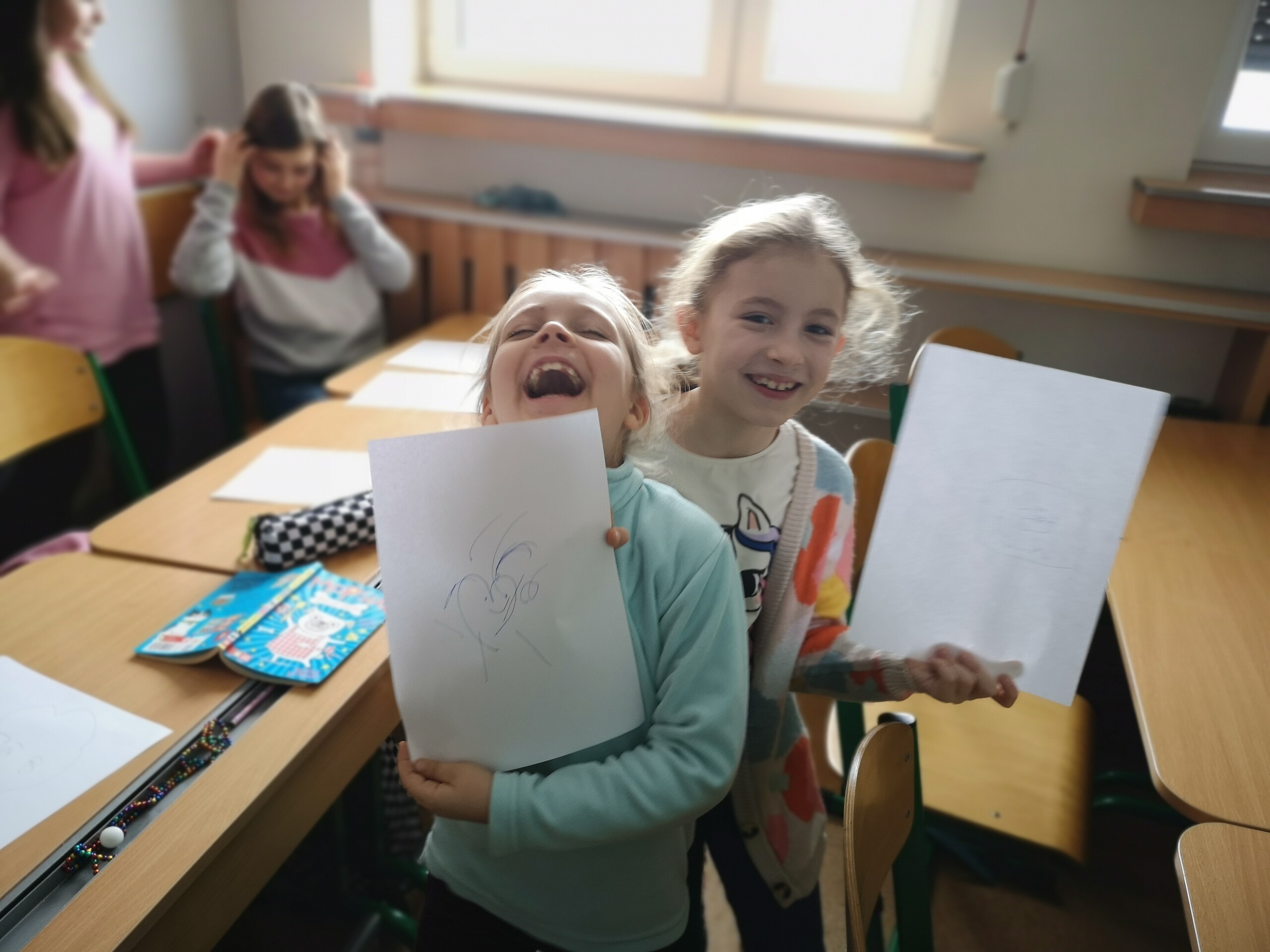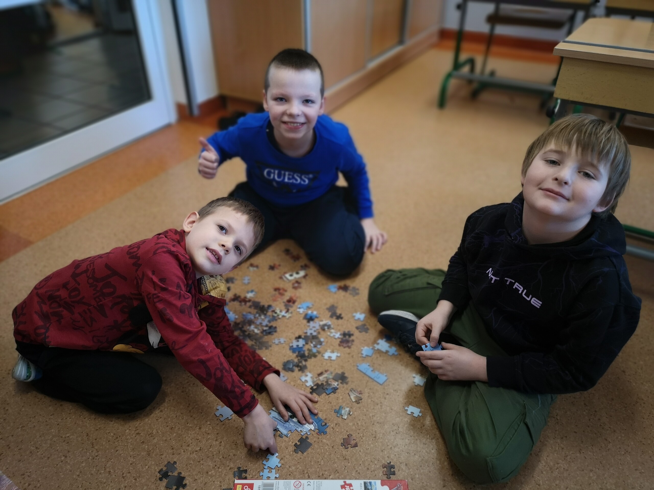 Uczestnicy kółka Łamigłówki Mądrej Główki podczas zajęć odkrywają w jaki sposób można wspaniale i z pożytkiem spędzić wolny czas. Gra w "Państwa-Miasta", rysowanie z zamkniętymi oczami czy układane puzzli, dostarcza dzieciom mnóstwo pozytywnych emocji. Wszyscy są bardzo radośni, co widać na zdjęciach.