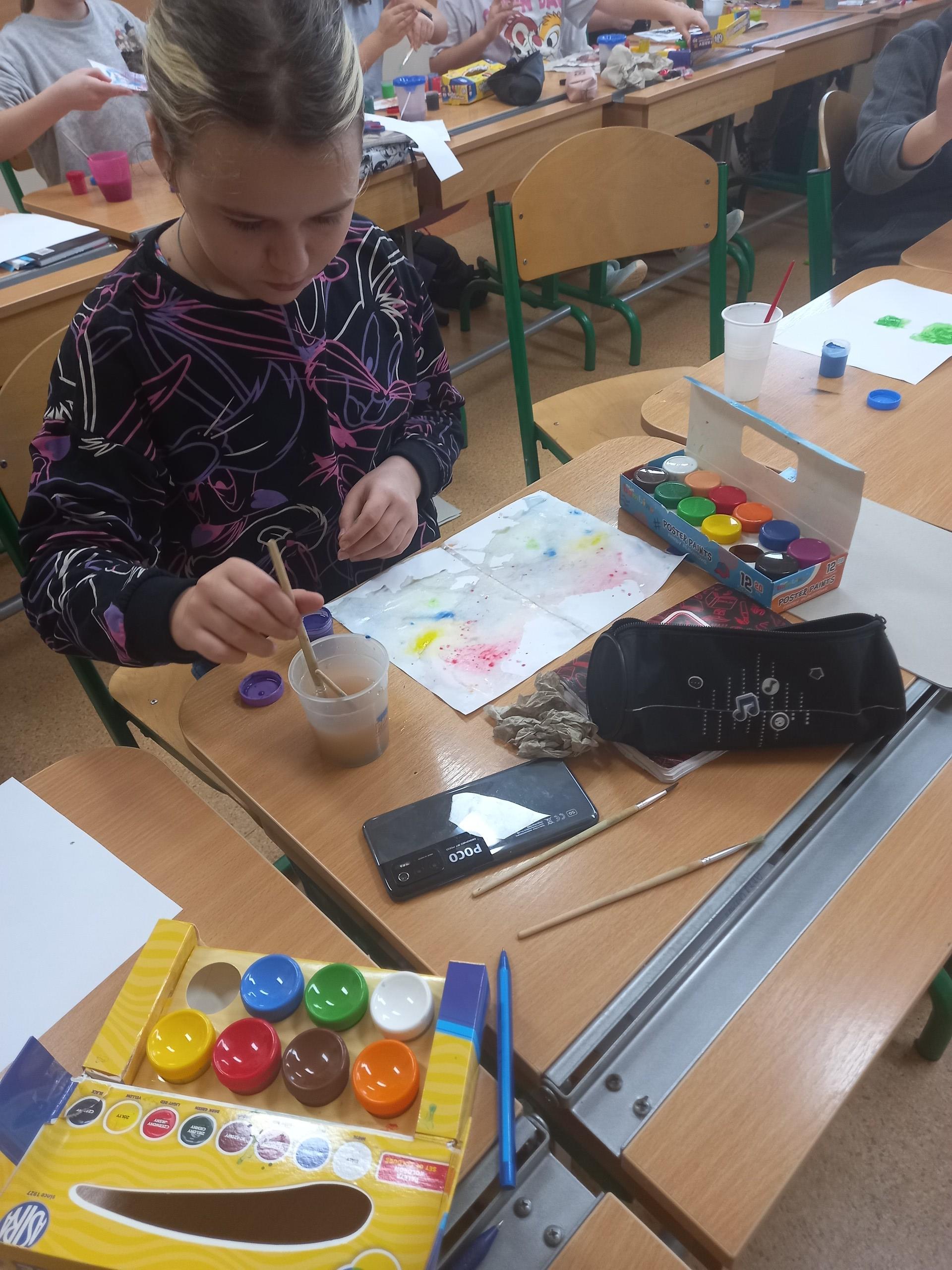 Lekcja kleksografii  w klasie IV