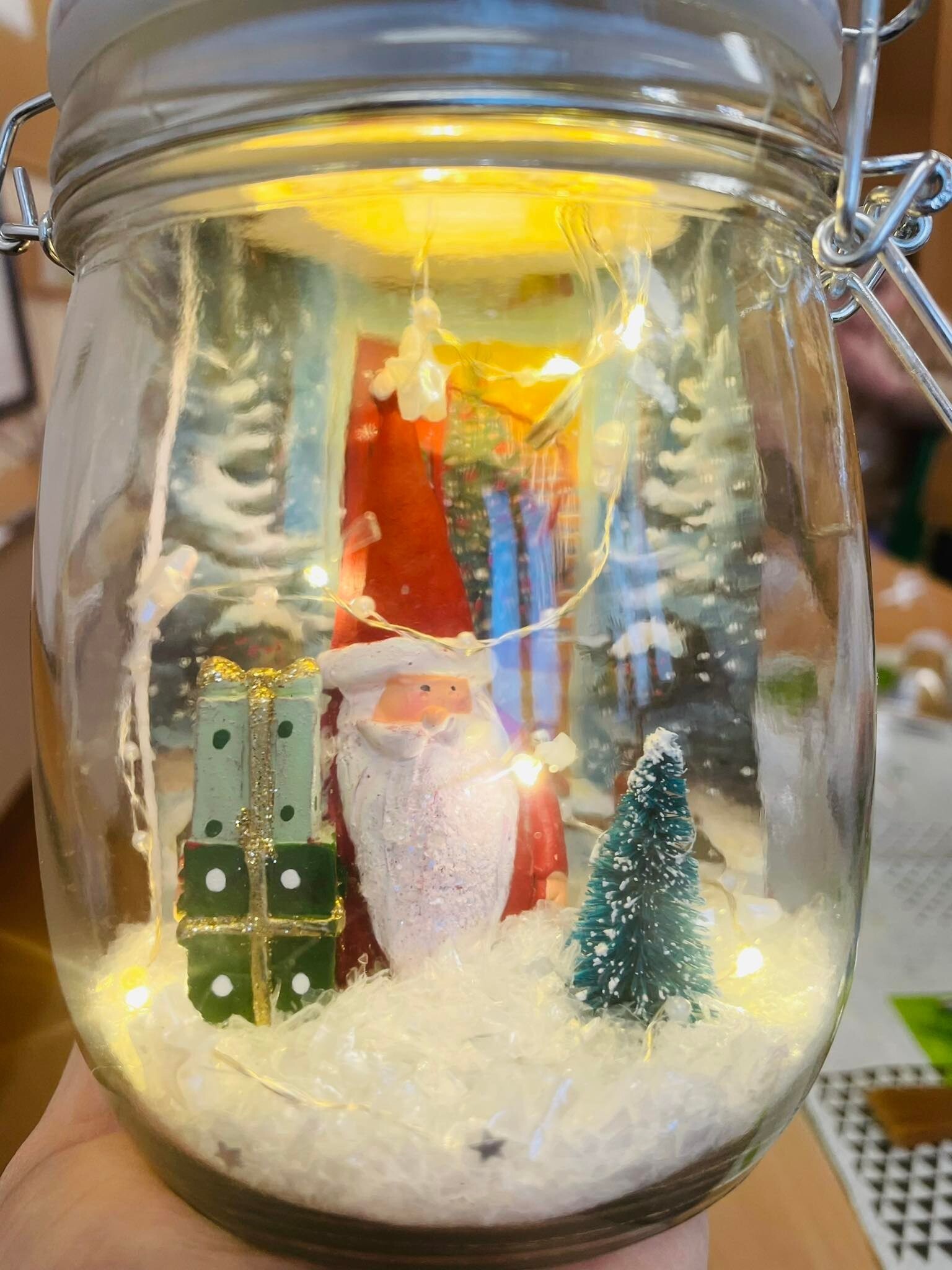 Przed świętami Bożego Narodzenia, na kólku plastycznym Złote Rączki uczestnicy wykonali ozdoby bożonarodzeniowe. Powstały świąteczne lampiony oraz gwiazdy z torebek śniadaniowych.