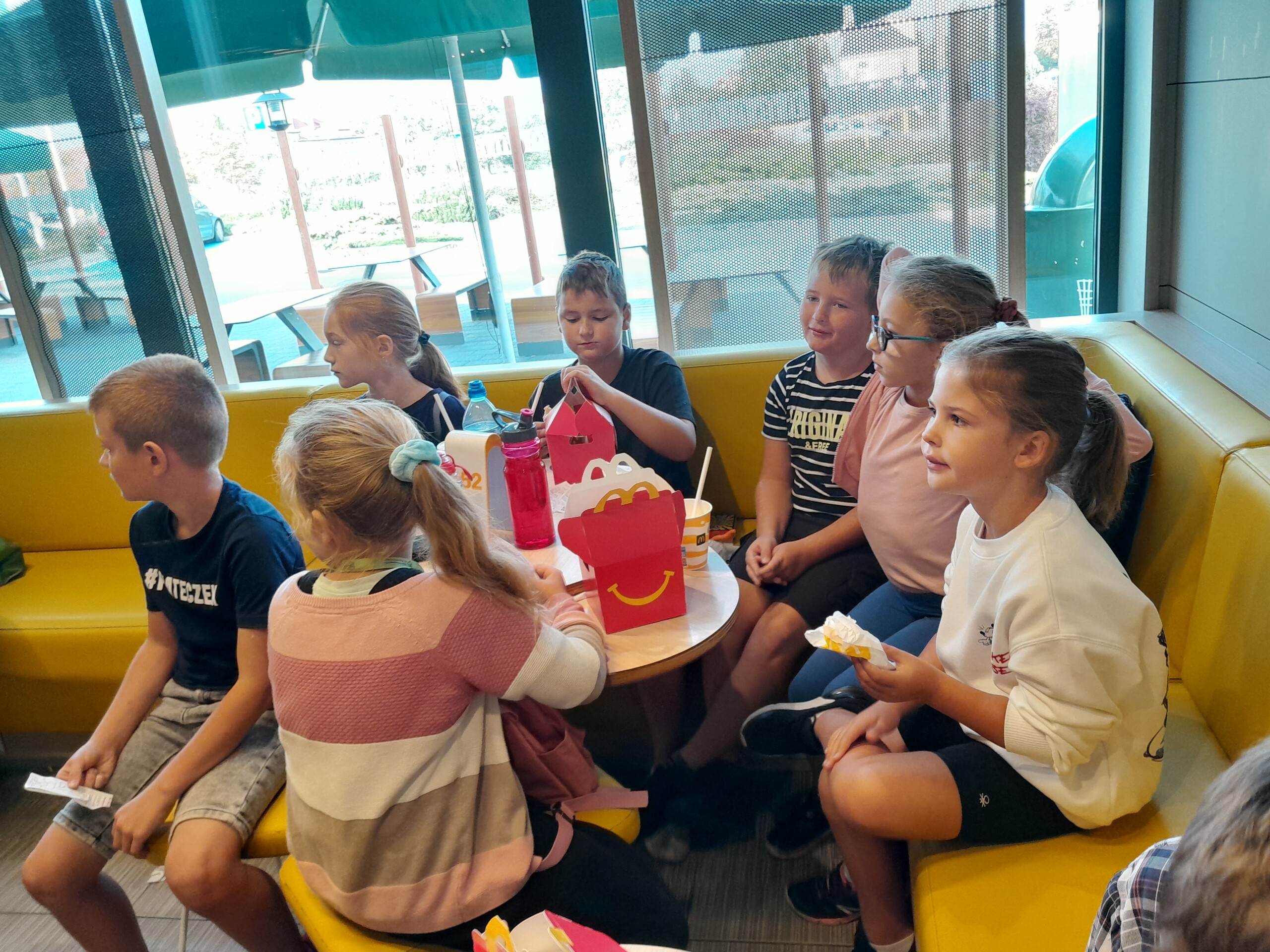 Chłopcy z klasy drugiej świętowali Dzień Chłopaka wspólnie z koleżankami z klasy w Mc Donaldzie. Dzieci pojechały do MC Donalda autobusem miejskim,aby zastosować w praktyce omawiane ostatnio na lekcjach zasady zachowania się w komunikacji miejskiej. Na miejscu nie zabrakło również wspólnych zabaw na świeżym powietrzu, gdyż-trzeba przyznać- pogoda w tym dniu dopisała drugoklasistom.Po powrocie do szkoły na chłopców czekały jeszcze upominki od dziewczynek.To był bardzo miły dzień!