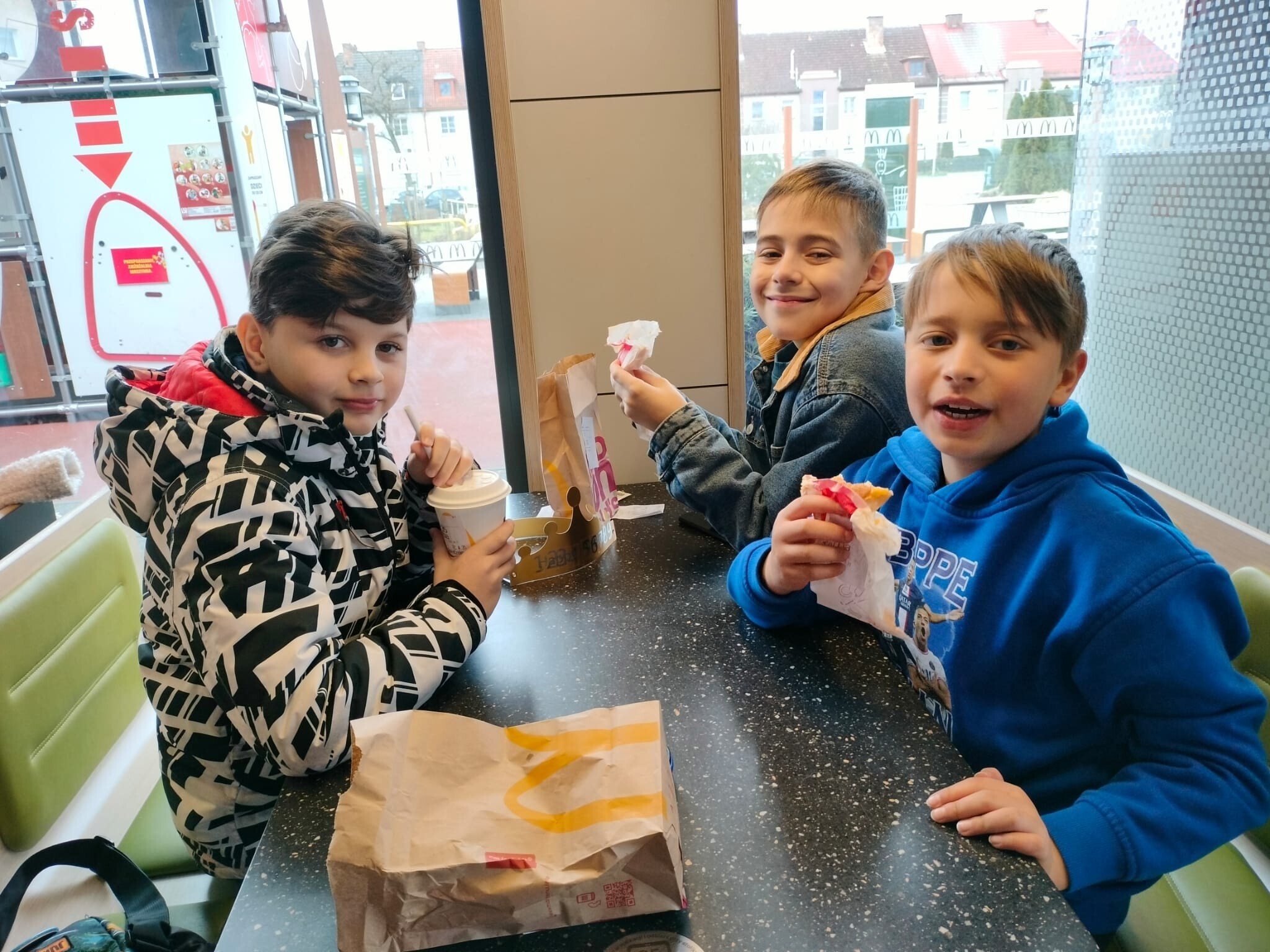 Dzień kobiet w klasie trzeciej upłynął bardzo miło. Rano chłopcy obdarowali dziewczynki drobnymi upominkami. Jednak największą atrakcją dnia było wyjście do restauracji McDonald.