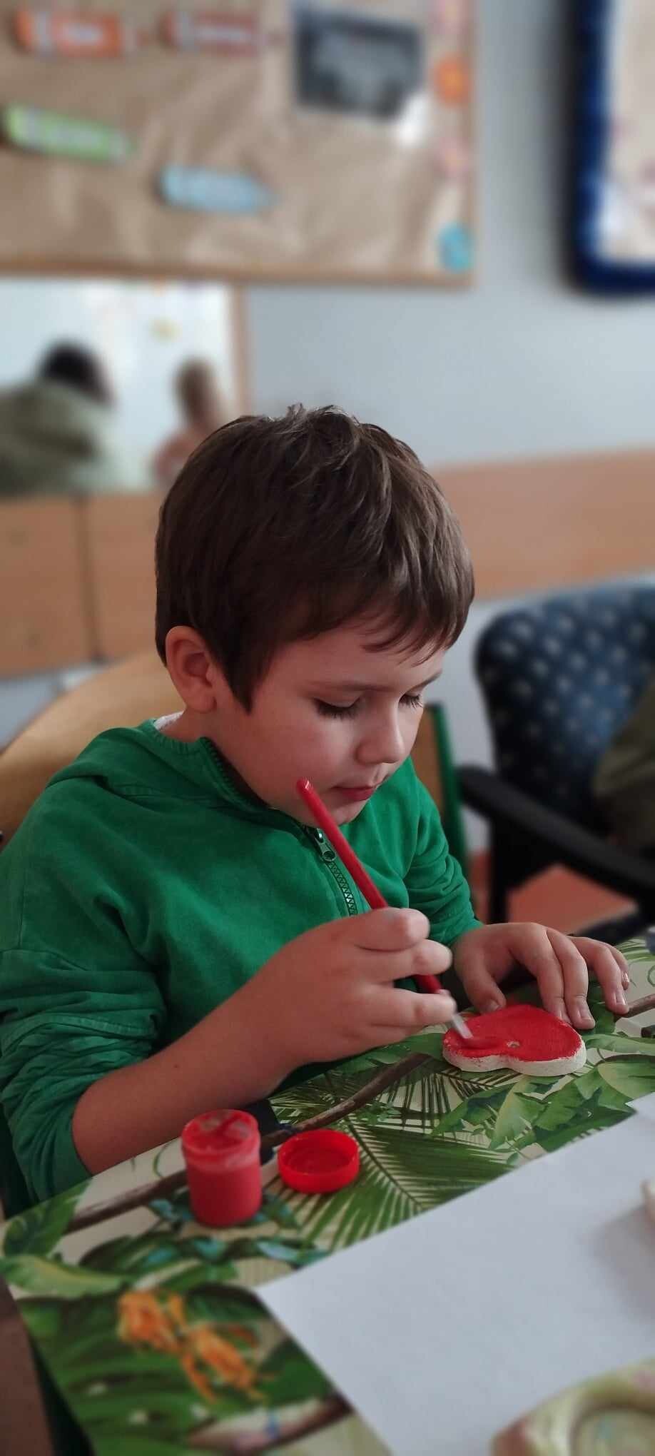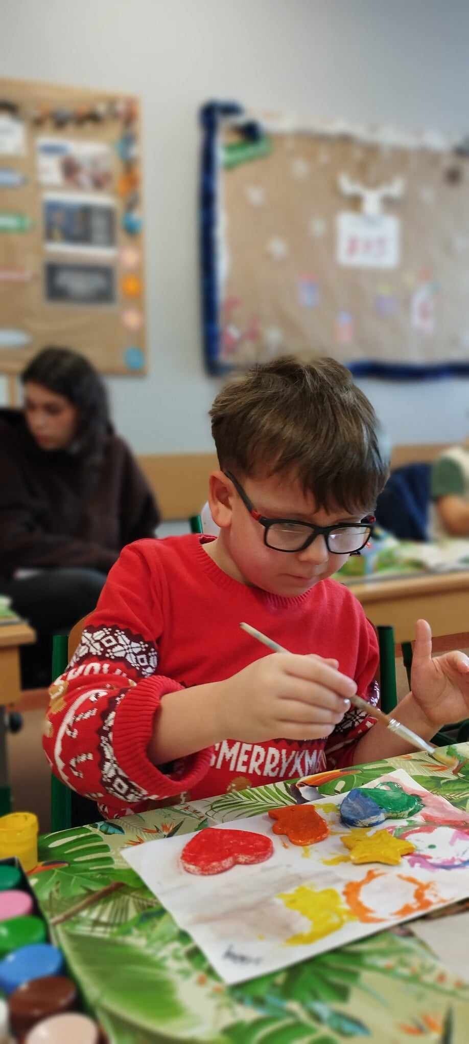 Czas świąteczny, to również czas obdarowywania. Klasa 1A wzięła się za własnoręcznie robione upominki. Z masy solnej powstały mini świeczniki oraz ozdoby choinkowe. Dzieci wykazały się dużą kreatywnością oraz miały sporo zabawy w zdobieniu i malowaniu świątecznych prezentów.