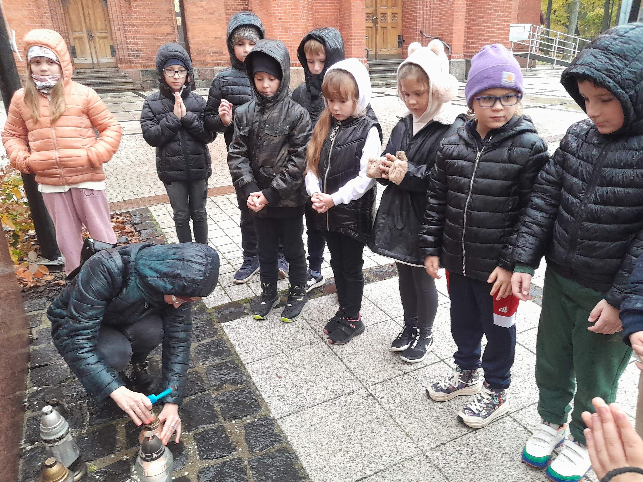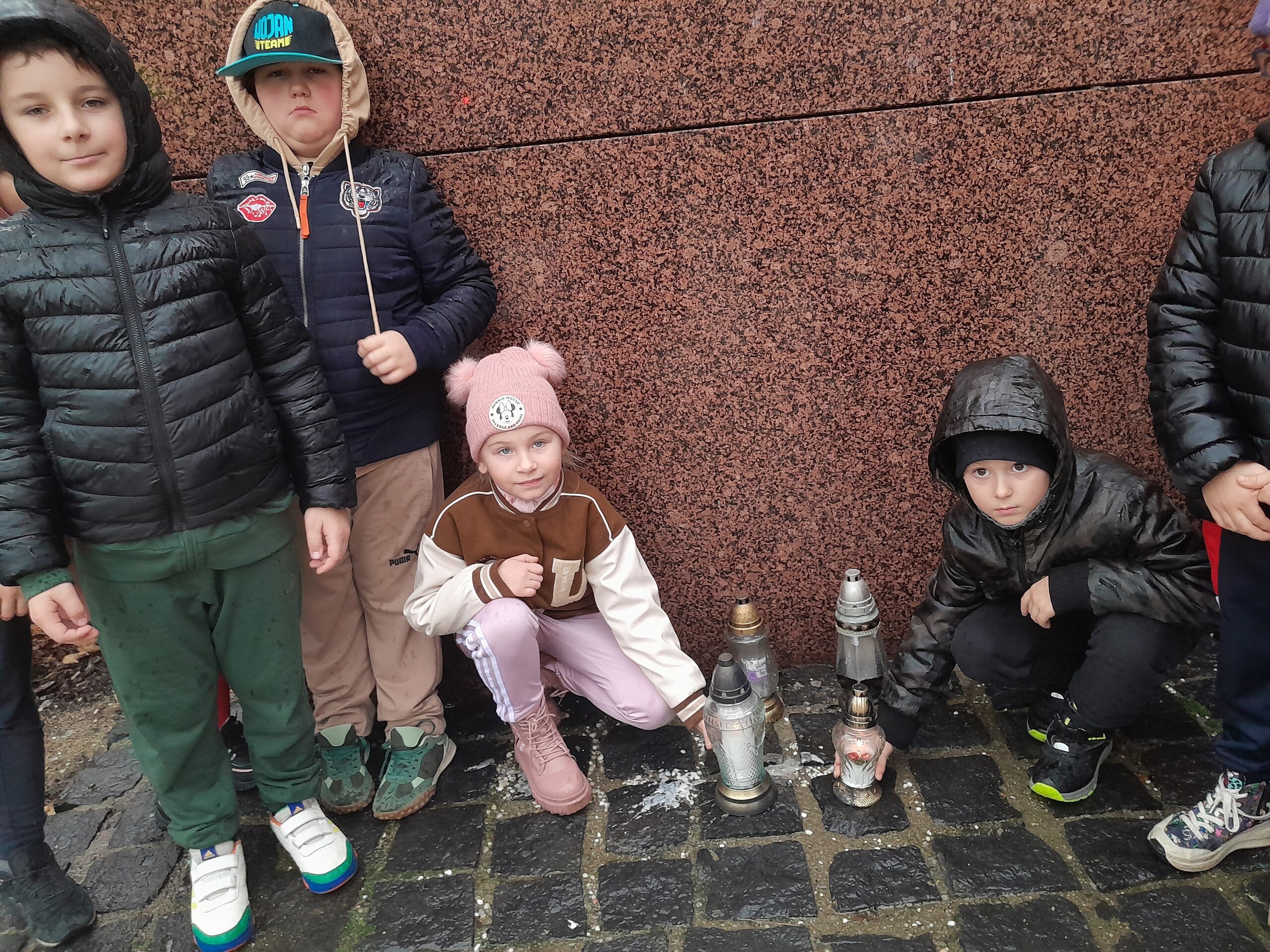 W przeddzień Święta Zmarłych dzieci z klasy drugiej zapaliły znicze przy pomniku.W ten sposób symbolicznie uczciły pamięć o tych , którzy odeszli
