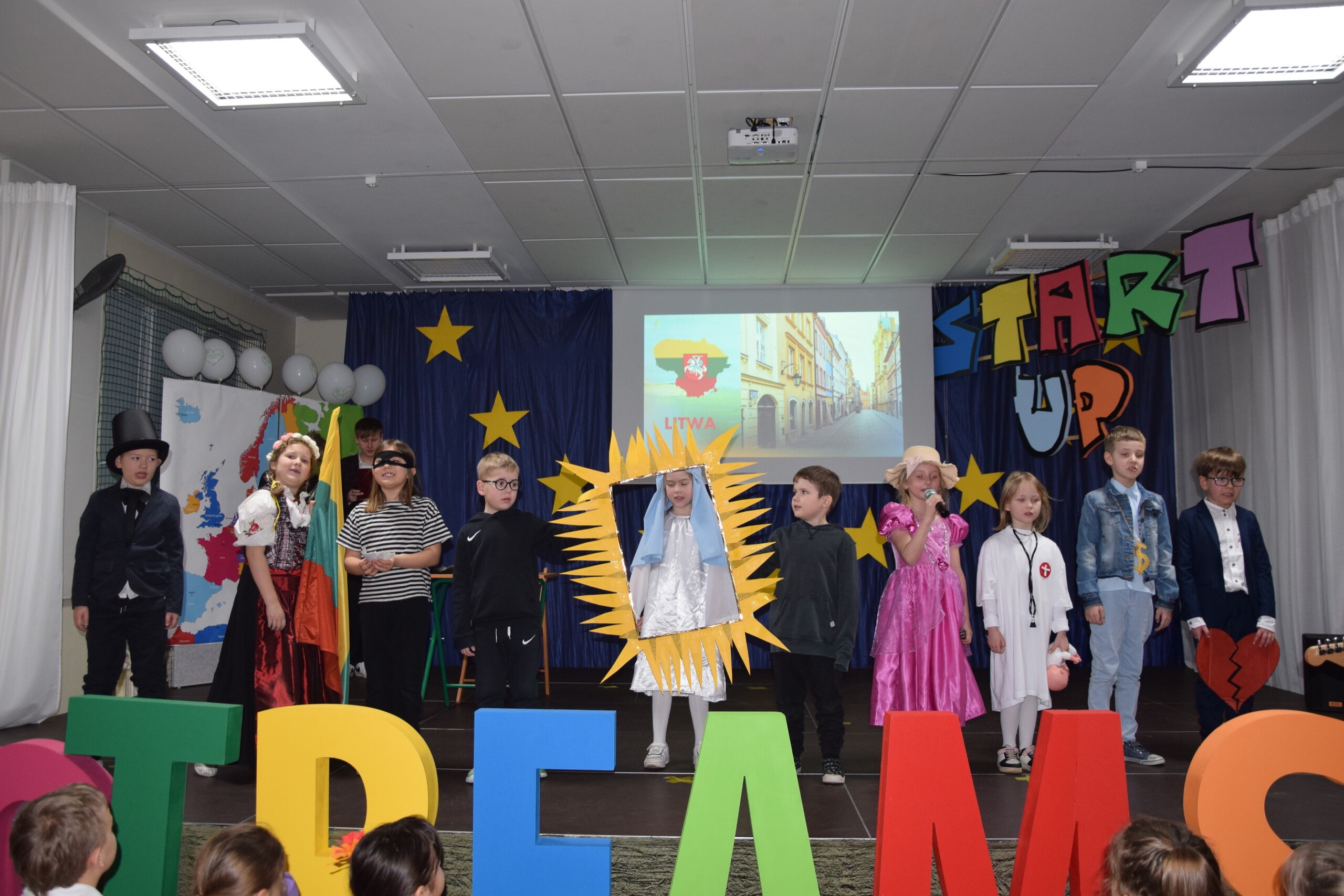 W związku z projektami uczniowie mieli możliwość wyjazdów do wielu państw.  Poznawali kulturę, tradycje, zwyczaje odwiedzanych miejsc. Podczas Start Up dzieci prezentowały jeden z krajów. Prezentacja miała na celu nie tylko przybliżenie jakiegoś charakterystycznego motywu kojarzącego się z danym miejscem, ale również rozwijanie kreatywności uczniów, promowanie i odkrywanie talentów, popularyzację działań artystycznych oraz alternatywnych form uczenia się. W tym roku prezentowały się zespoły klasowe w różnych aktywnościach – taniec, ruch sceniczny, zabawa ludowa, pantomima, teatr cieni, gra na nietypowych instrumentach, pokaz mody, elementy sportowe i wokal. Do występów dzieci przygotowywały się pod czujnym okiem nauczycieli.