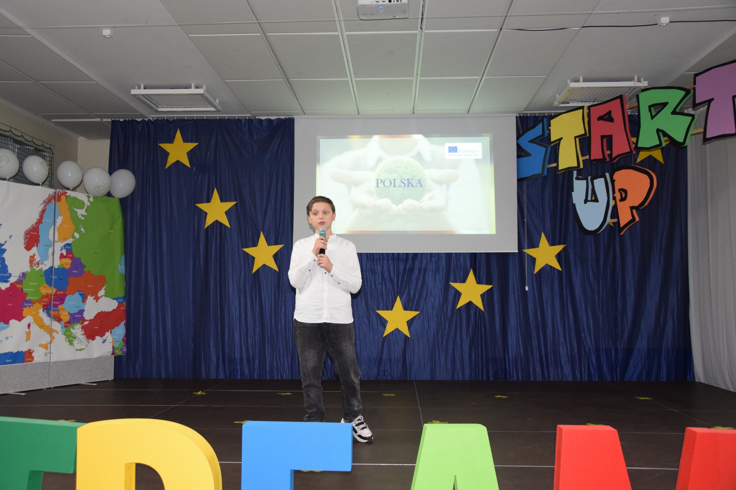 15 marca 2024 roku już po raz 6 odbył się w naszej szkole START UP.  Tematem przewodnim tegorocznego Pokazu Talentów była Europa, Unia Europejska i projekty Erasmus+, które realizowane są w szkole. W bieżącym roku obchodzimy  20 rocznicę wstąpienia Polski do Wspólnoty Europejskiej co jest niezwykle ważne, szczególnie dla młodych ludzi. Jako szkoła otwarta i nowoczesna staramy się przyczyniać się do integracji europejskiej. Współpracujemy z państwami należącymi już do Wspólnoty, z kandydatami do UE i z takimi, które nie są jej członkami.