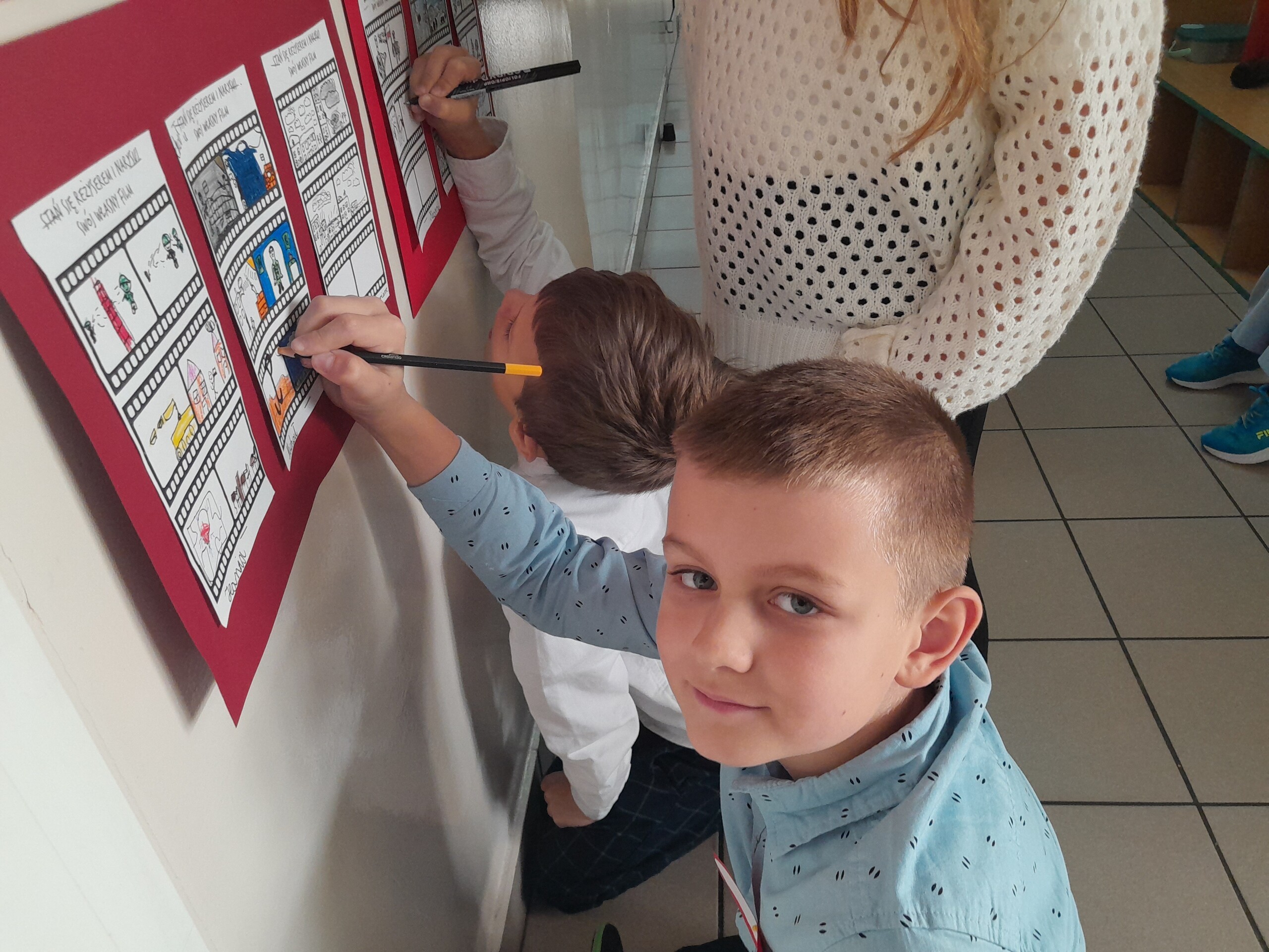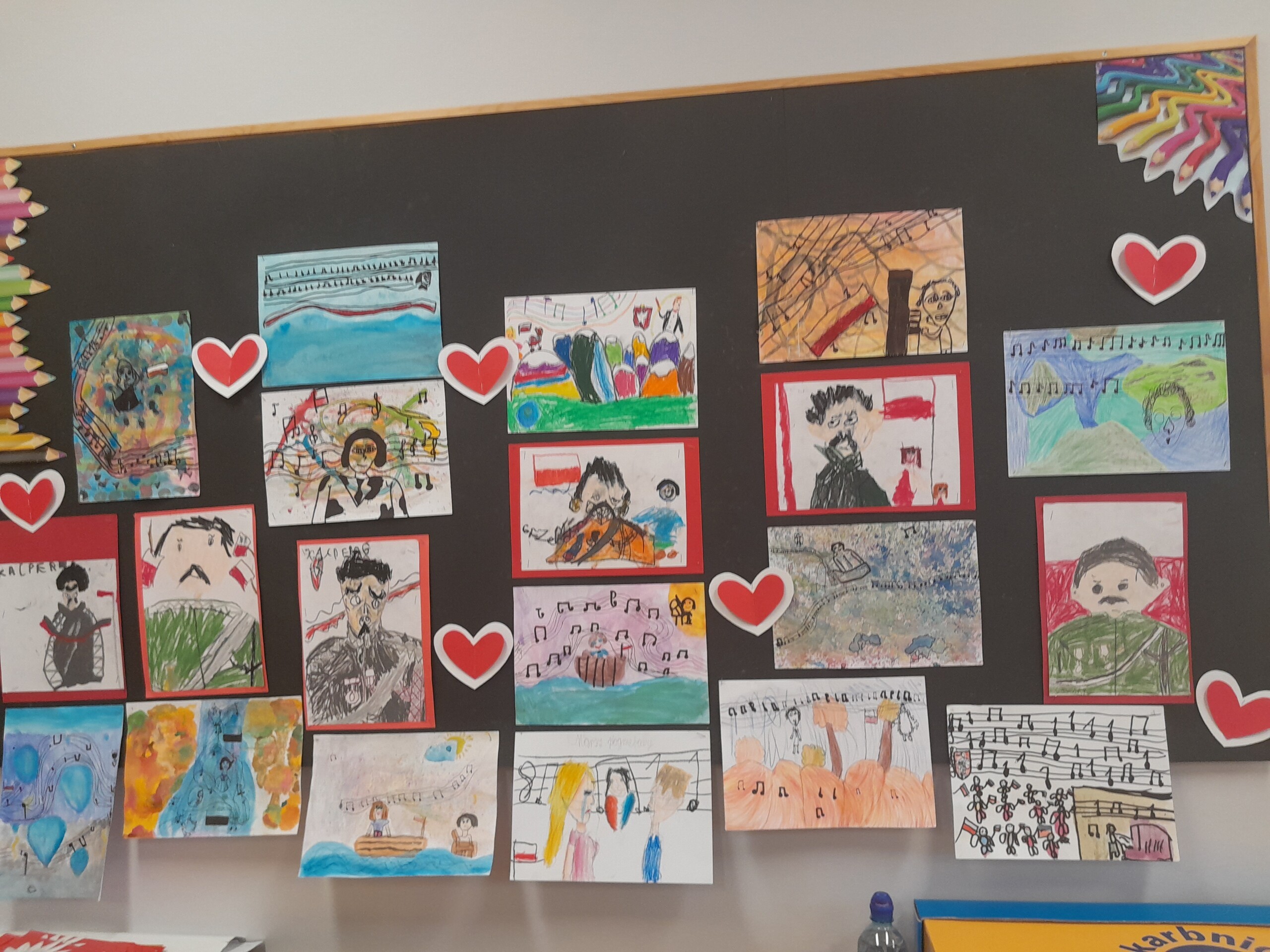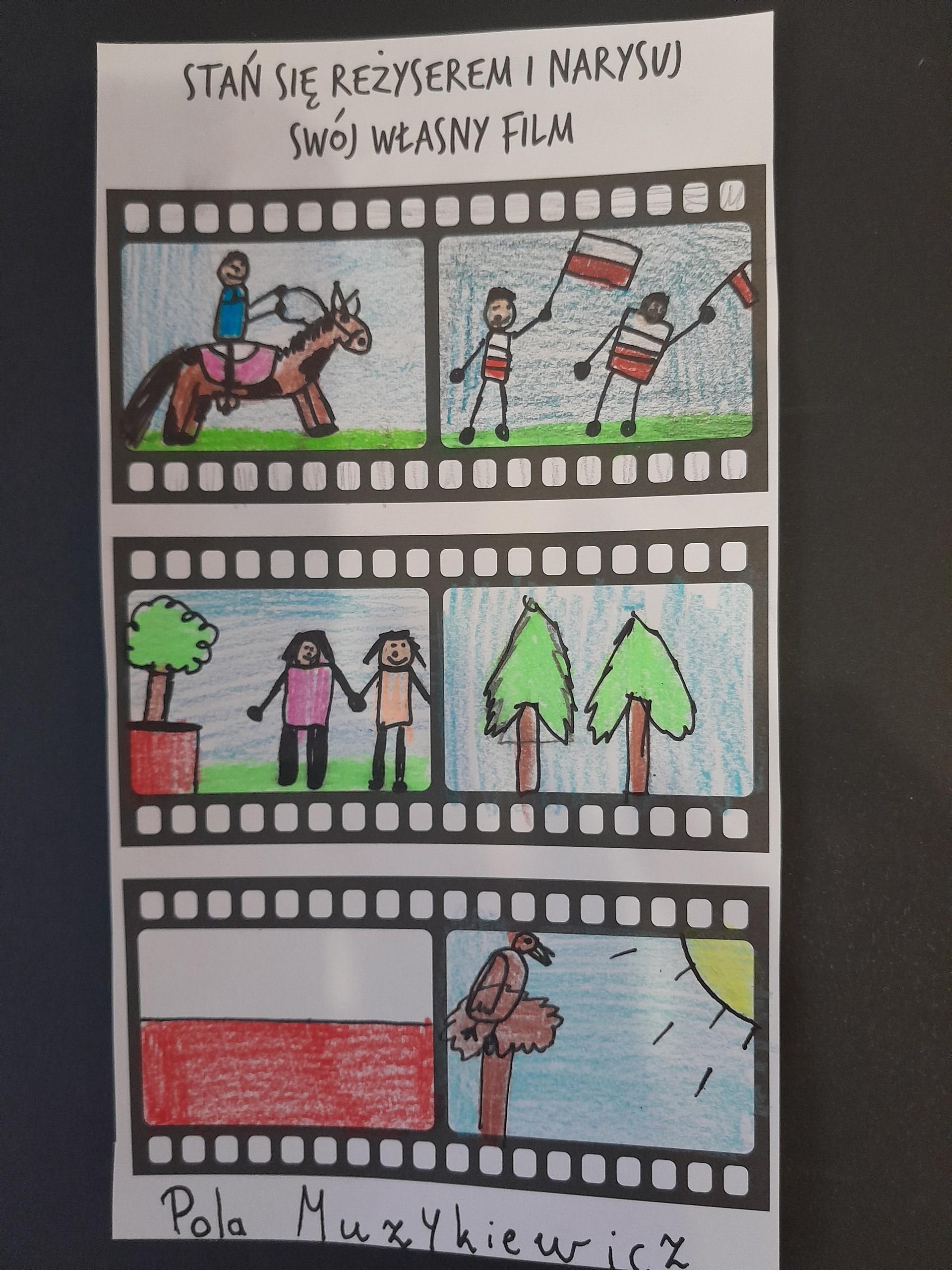 Klasa druga, w związku ze zbliżającym się w tym tygodniu Świętem Niepodległości, omawiała tematy dotyczące Polski,symboli narodowych, patriotyzmu i wolności w różnych, ciekawych formach plastycznych.Dzieci wykonały portrety wielkich Polaków, m.in.Józefa Piłsudskiego czy też Fryderyka Chopina oraz narysowały w formie komiksu swój własny film o Polsce.Ich prace zdobią teraz gazetki w klasie i na korytarzu.