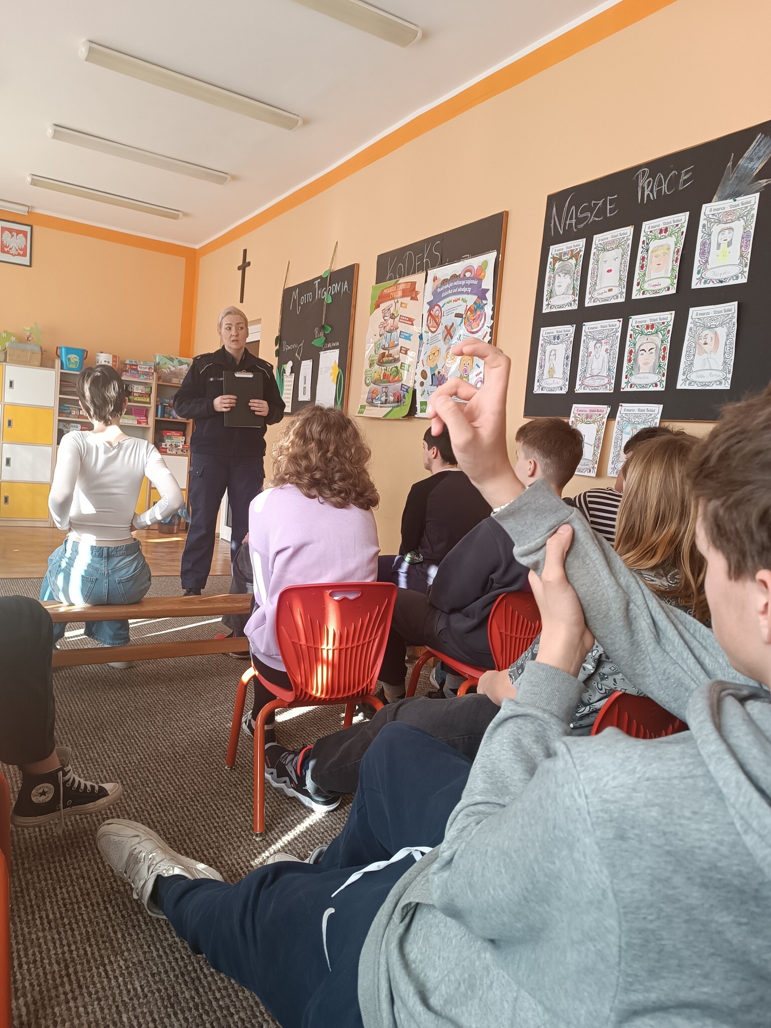 W poniedziałek, 4 marca, w naszej szkole odbyło się spotkanie z przedstawicielami funkcjonariuszy Policji w Lęborku- panią asp.sztab. Magdaleną Zielke i panem asp.sztab.Łukaszem Kwiatkowskim, przeznaczone dla uczniów klas VI-VII. Policjanci poruszyli bardzo ważny i aktualny temat dotyczący przeciwdziałania przemocy rówieśniczej, hejtu w sieci i czynach karalnych. Młodzież wykazała niezwykłe zainteresowanie problemem, który niejednokrotnie ich dotyczy- zadawali pytania oraz wyciągali trafne wnioski.