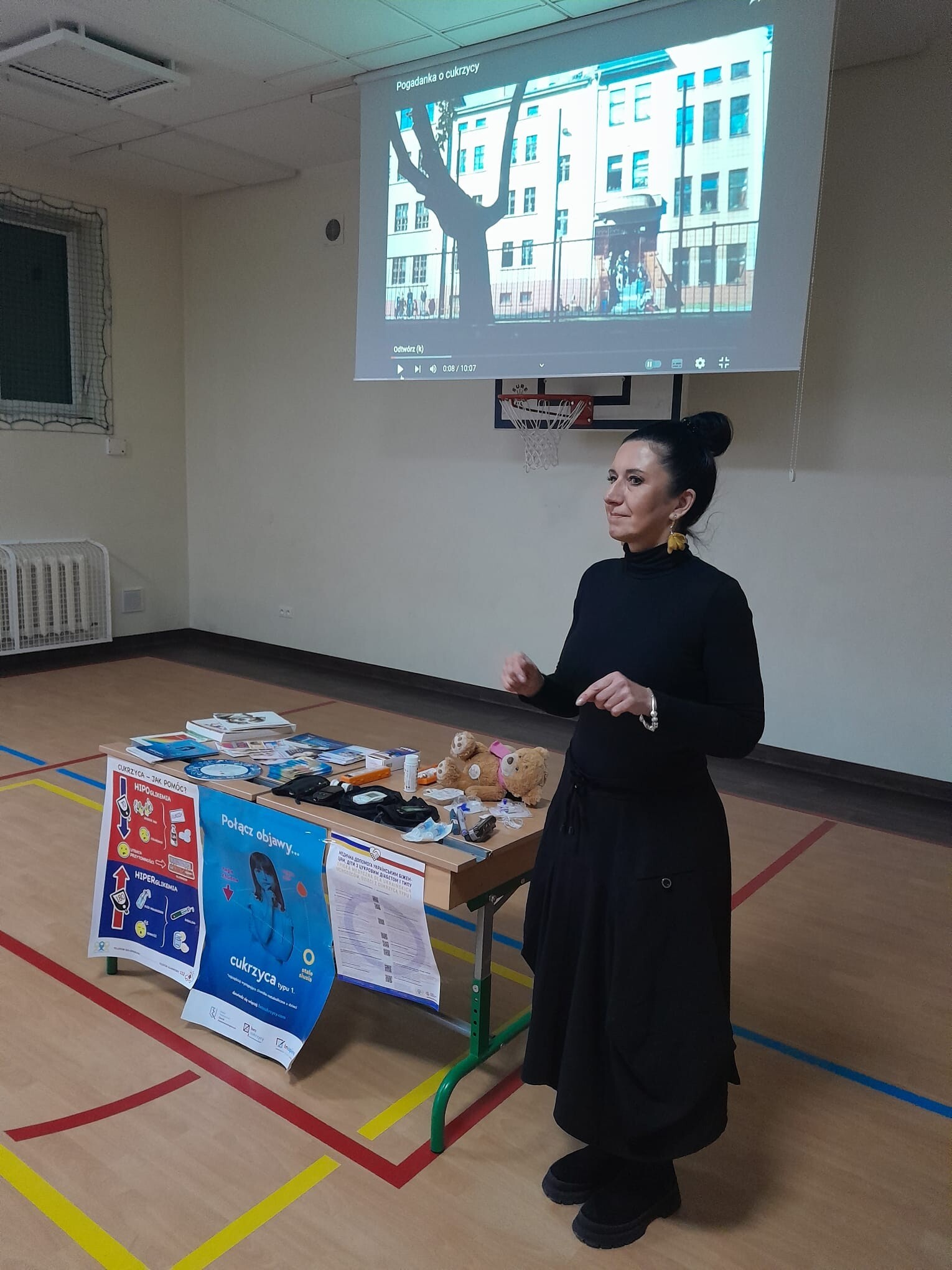 17 listopada 2023 r.,na zakończenie szkolnego Tygodnia Profilaktykyki ,uczniowie klas I -VIII , mieli okazję uczestniczyć w szkoleniu uświadamiającym ,jak należy rozponawać i leczyć cukrzycę, prowadzonym przez edukatora,p.Annę Grudnowską.Spotkanie było związane z przypadającym 14 listopada Światowym Dniem Walki z Cukrzycą i dostarczyło uczniom dużo przydatnej wiedzy. Składamy szczere podziękowania na ręce pani Anny Grudnowskiej za poświęcony czas i fachowo przekazaną wiedzę.