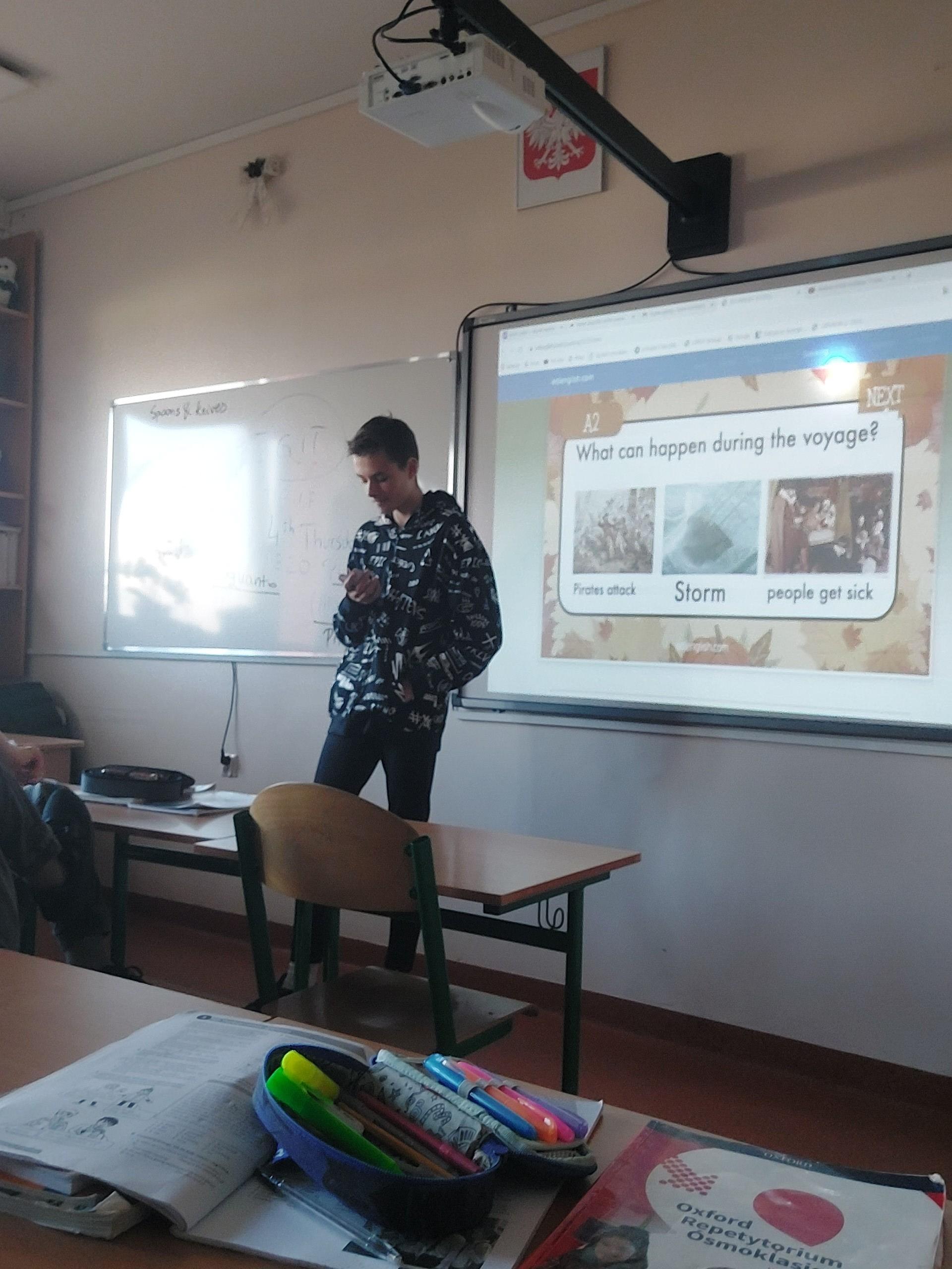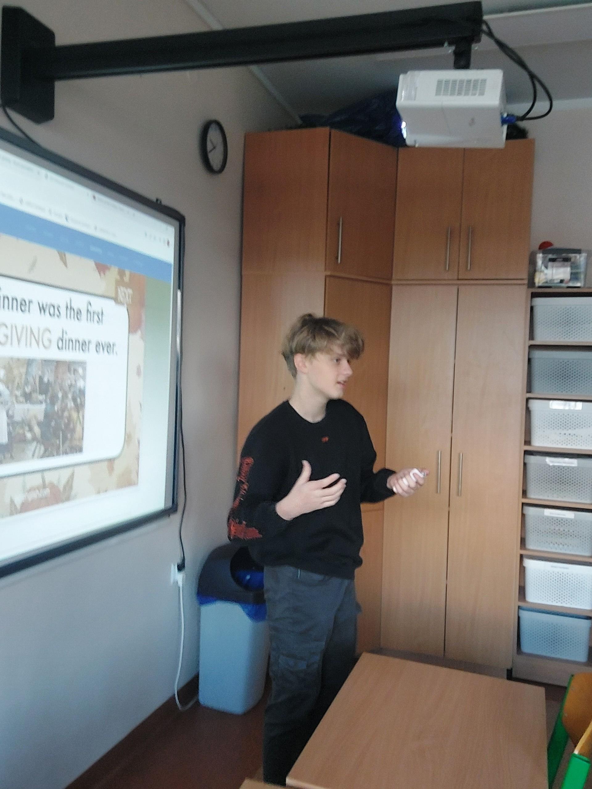 Z okazji Święta Dziękczynienia, hucznie celebrowanego w Stanach Zjednoczonych, uczniowie klasy 8a na lekcji języka angielskiego zapoznali się z historią tego wyjątkowego dnia. W ramach Listeningu obejrzeliśmy filmik opowiadający historię ustanowienia Thanksgiving Day, następnie uczniowie mogli wykazać się swoimi umiejętnościami językowymi podczas omawiania z nauczycielem prezentacji podsumowującej zagadnienia z filmiku, a na koniec zagraliśmy w tematyczne TABOO. Happy Thanksgiving Day everyone! And enjoy Black Friday