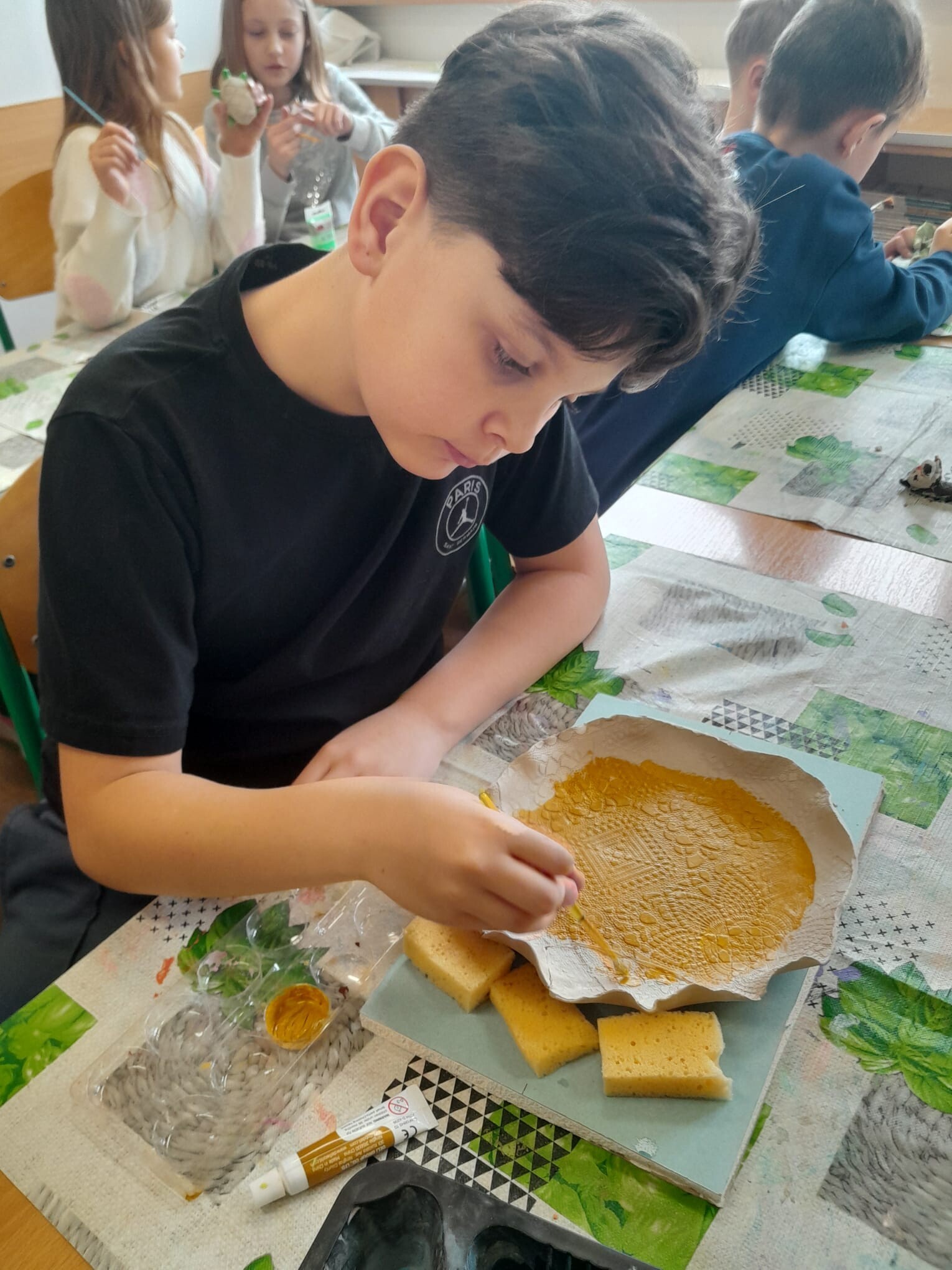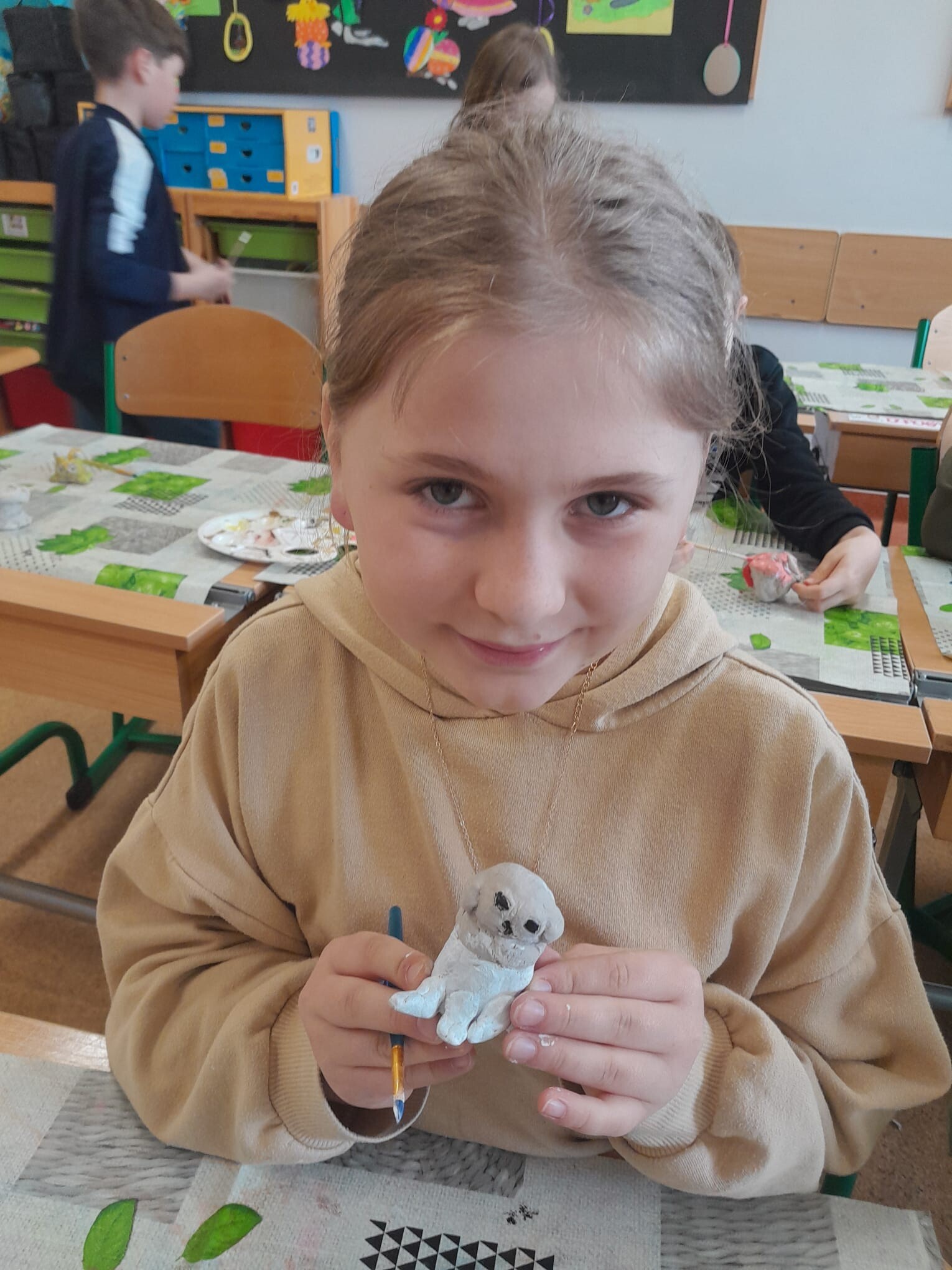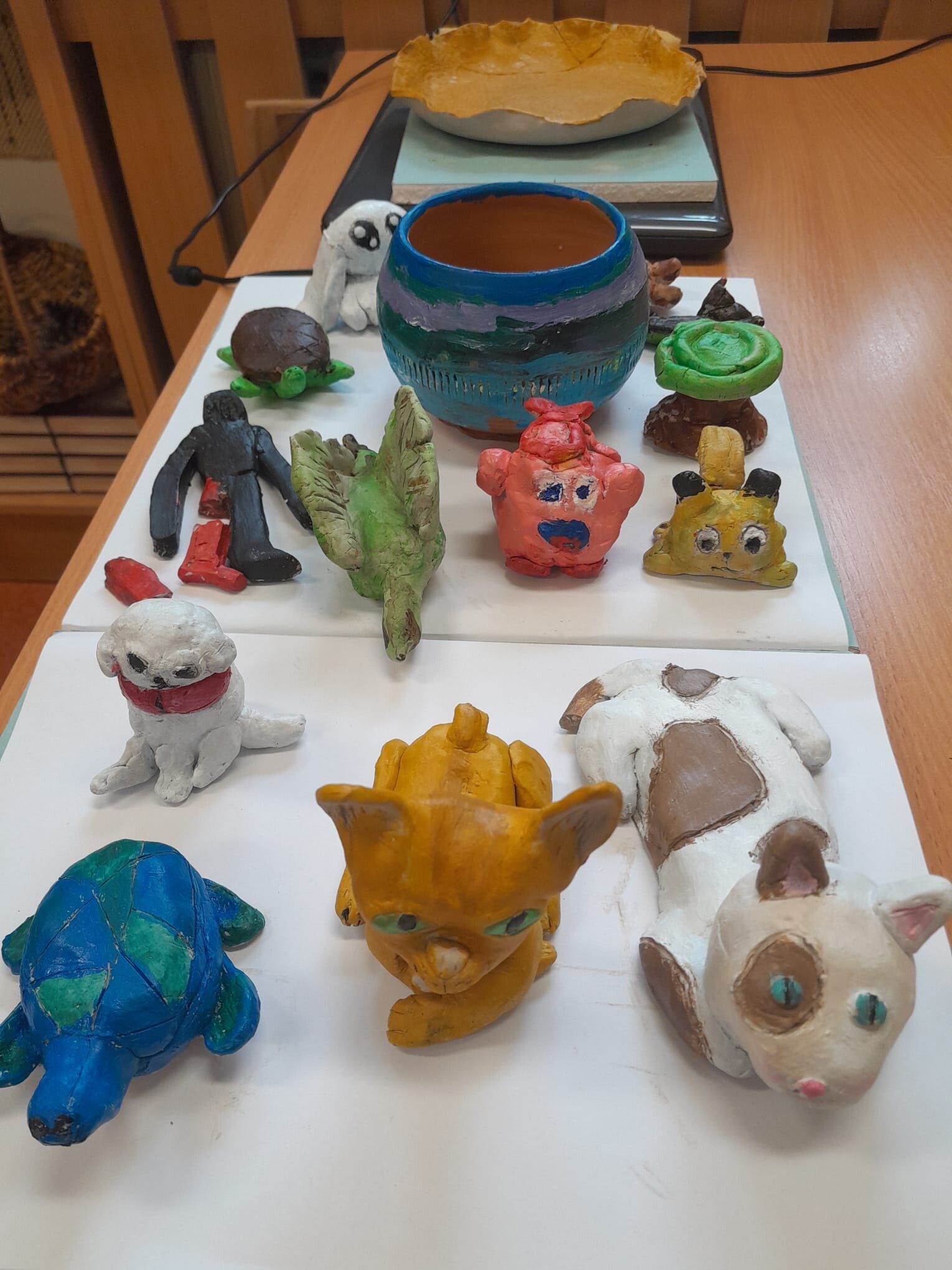 Uczniowie klasy trzeciej wykonali piękne figurki z gliny w ramach warsztatów ,,Zabawy z gliną", które miały na celu rozwijanie nieskrępowanej kreatywności dzieci oraz uczyły projektowania, planowania działań, współpracy i cierpliwości. Wśród glinianych ,,dzieł" znalazły się kotki, pieski,żółwie czy też dinozaury. Wysuszone prace zostały pomalowane i teraz ciekawie prezentują się w sali. Zresztą zobaczcie sami...