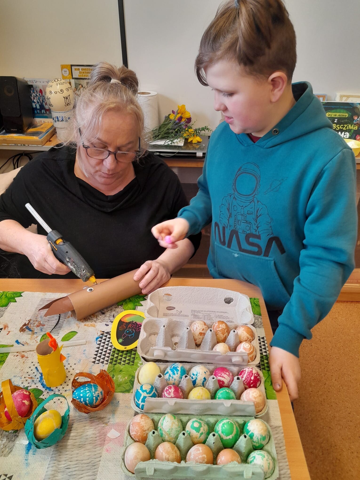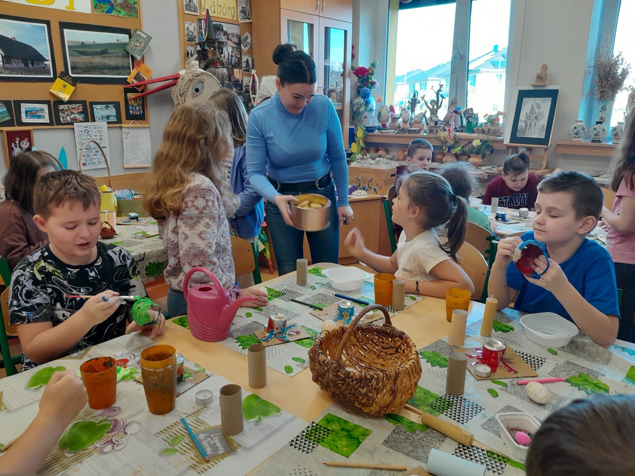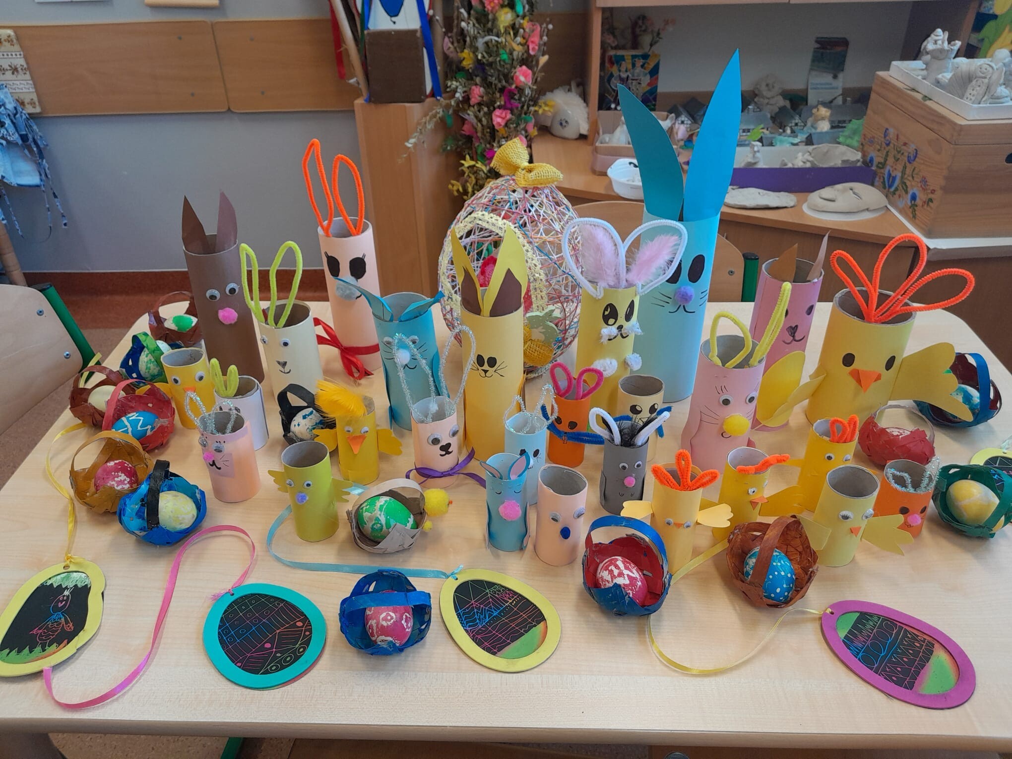 Palmy, pisanki,zajączki, kurczaczki,kraszanki,babeczki wielkanocne ...To wszystko w ostatnim czasie przygotowywali uczniowie klasy drugiej w ramach warsztatów świątecznych, aby ozdobić tym swoją salę i stół podczas śniadanka wielkanocnego.