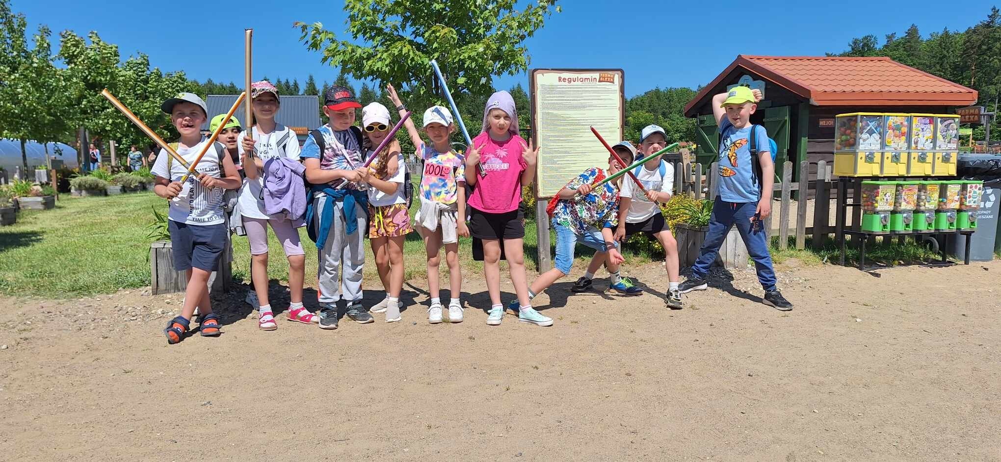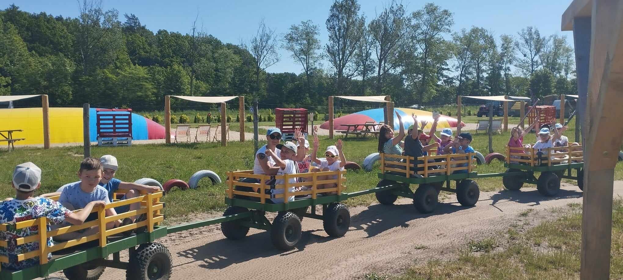 W środę 22 maja klasy I A i B wybrały się na wycieczkę do Charbrowa gdzie znajduje się "Farma Alexa". Dzieci zwiedzały farmę, głaskały zwierzęta a także aktywnie korzystały z wszystkich atrakcji tego miejsca. Panujący na farmie sielski klimat tylko zachęca do nieposkromionej niczym zabawy. Uczniowie w Wiejskiej Szkole Alexa doili krowę, czesali grzywę konia, uczestniczyli w grach wiejskich i grali w Piłkowie. Wielką atrakcja była jazda w wagonikach ciągniętych przez prawdziwy traktor. Gwoździem programu było spotkanie z Królikiem Alexem.