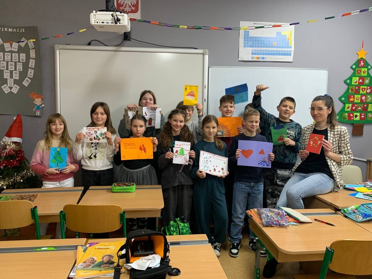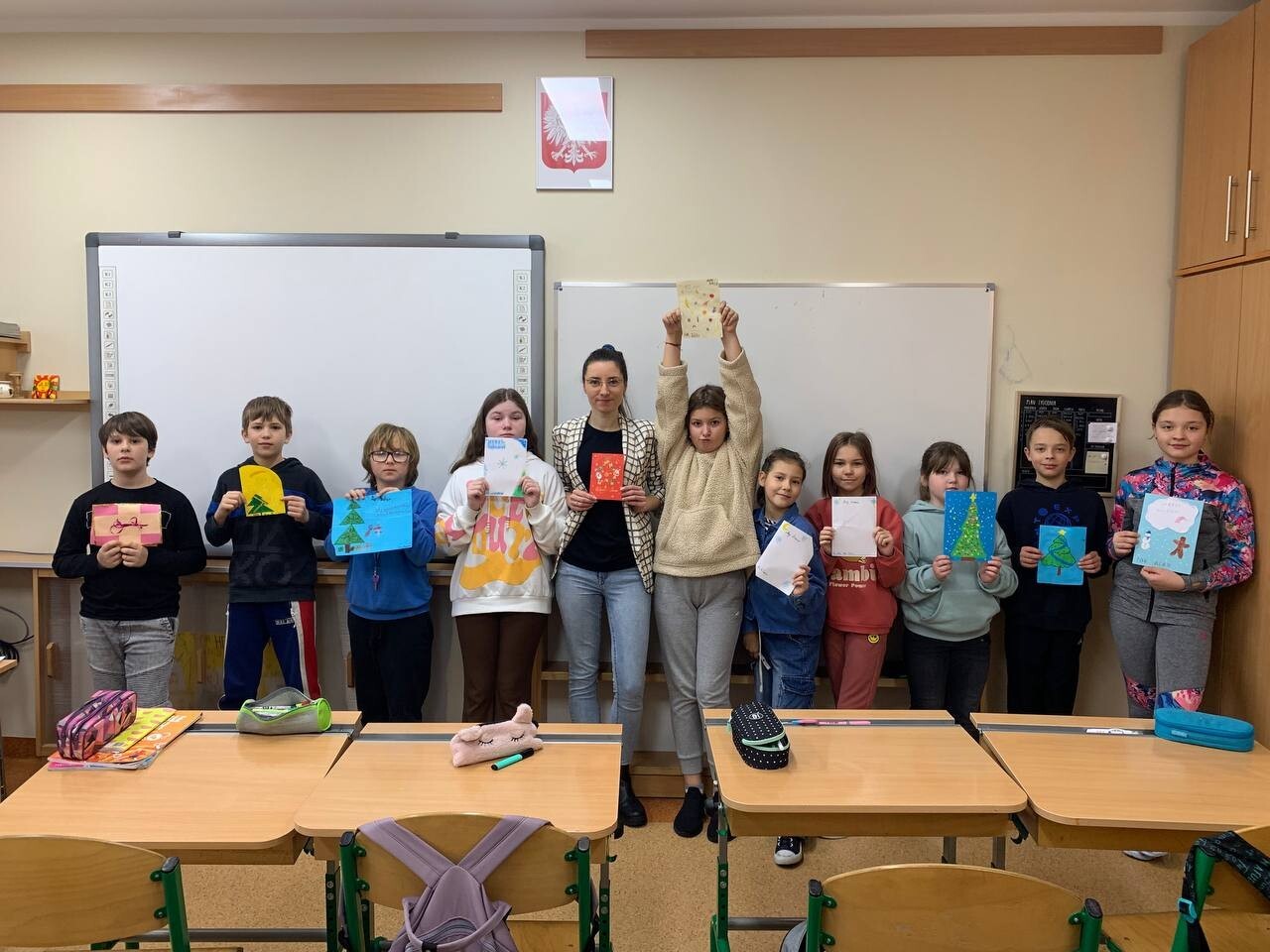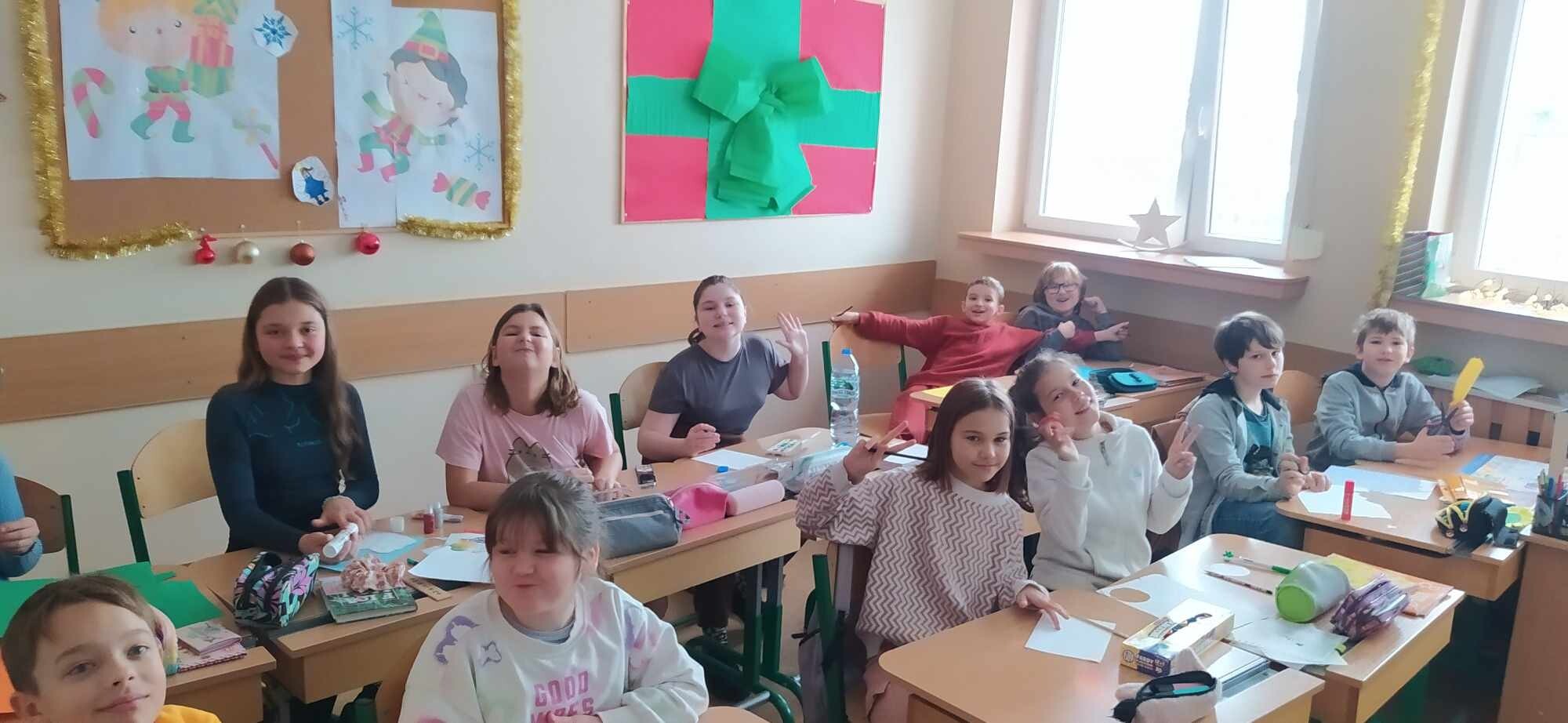 Nasza szkoła wzięła udział w wymianie kartek świątecznych w języku angielskim. Uczniowie klas czwartych stworzyli piękne kartki dla swoich kolegów i koleżanek ze szkoły podstawowej w Starych Bielicach (k. Koszalina). 4a i 4b nauczyły się ciekawych życzeń bożonarodzeniowych w j. angielskim, a przy okazji utrwaliła znane i lubiane piosenki świąteczne. Prace naszych czwartoklasistów ruszyły już w podróż świąteczną pocztą, czekamy na elfy, które dostarczą kartki dla uczniów SJSP!