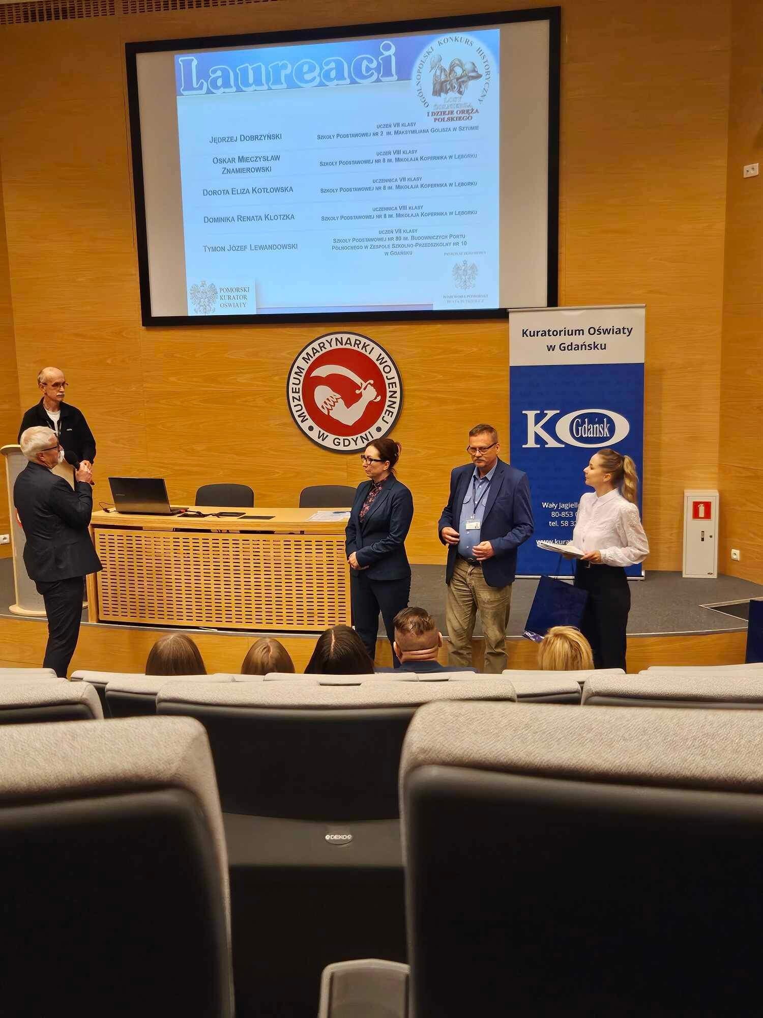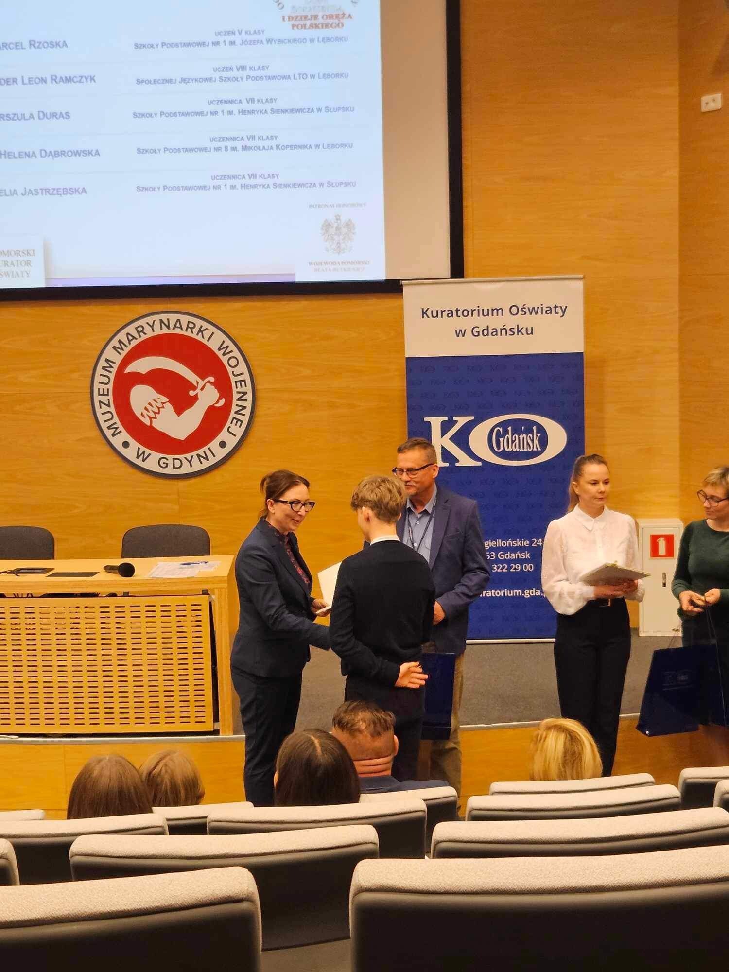 10 maja 2024 r. w Muzeum Marynarki Wojennej w Gdyni odbyła się Gala Laureatów konkursu historycznego ,,Losy żołnierza i dzieje oręża polskiego” w latach 1768-1864” - „Od konfederacji barskiej do powstania styczniowego” dla uczniów szkół podstawowych. Uczniowie reprezentujący naszą szkołę którzy uzyskali tytuł laureata konkursu. Zostali zaproszenie na tę uroczystość.