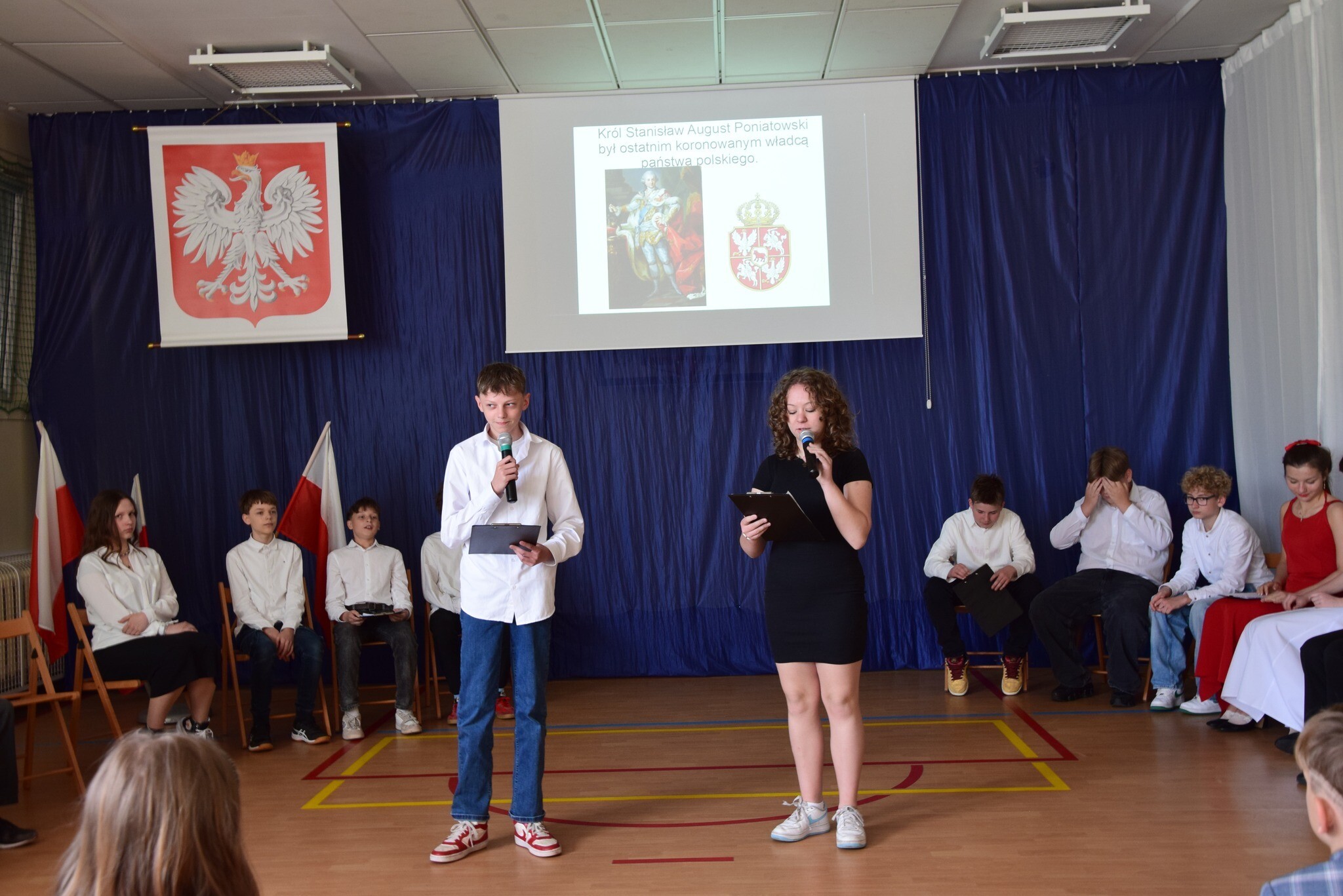 30 kwietnia 2025 r. w naszej szkole uczniowie klasy VII,VIII i IV przygotowali apel z okazji kolejnej rocznicy uchwalenia Konstytucji 3 Maja 1791r.