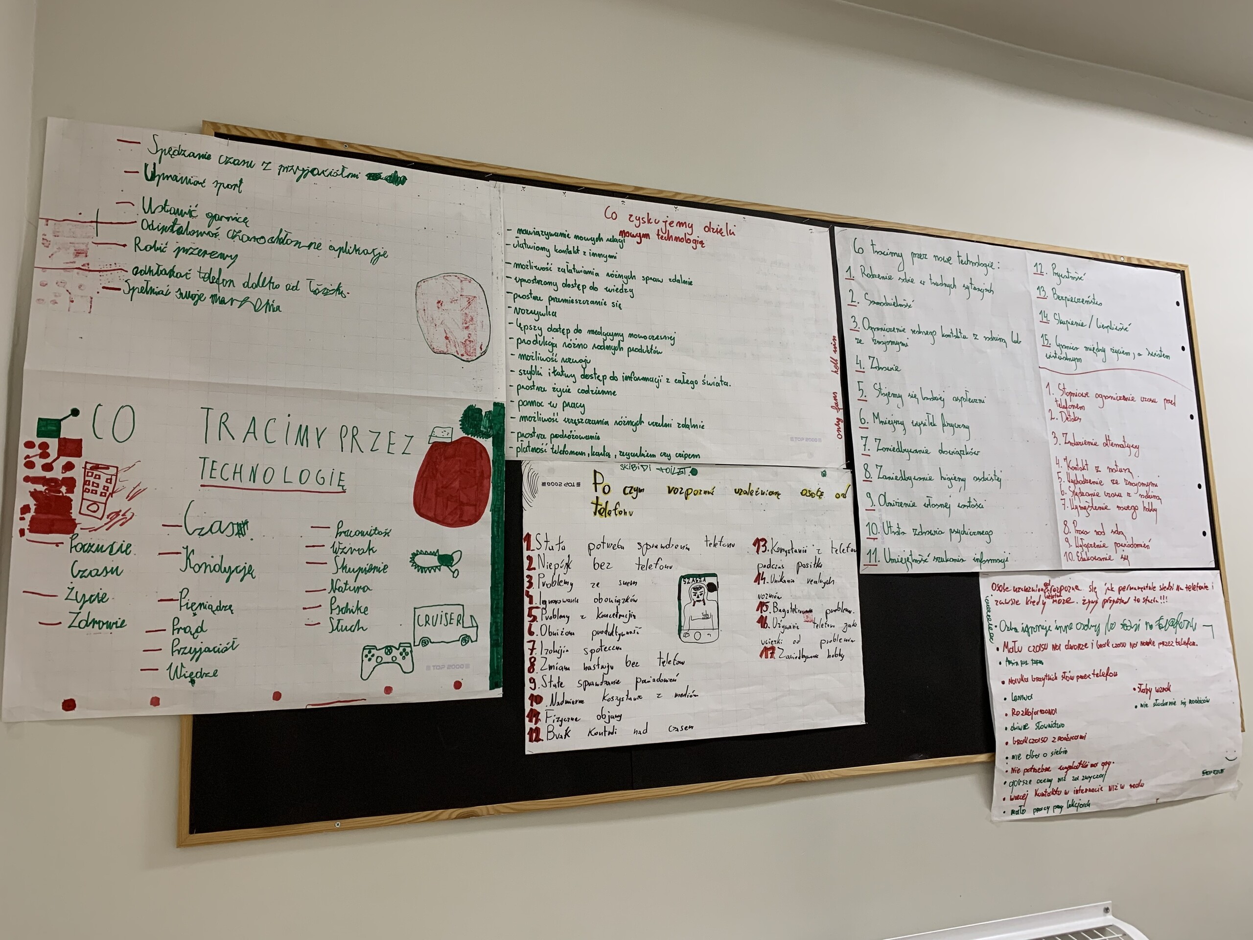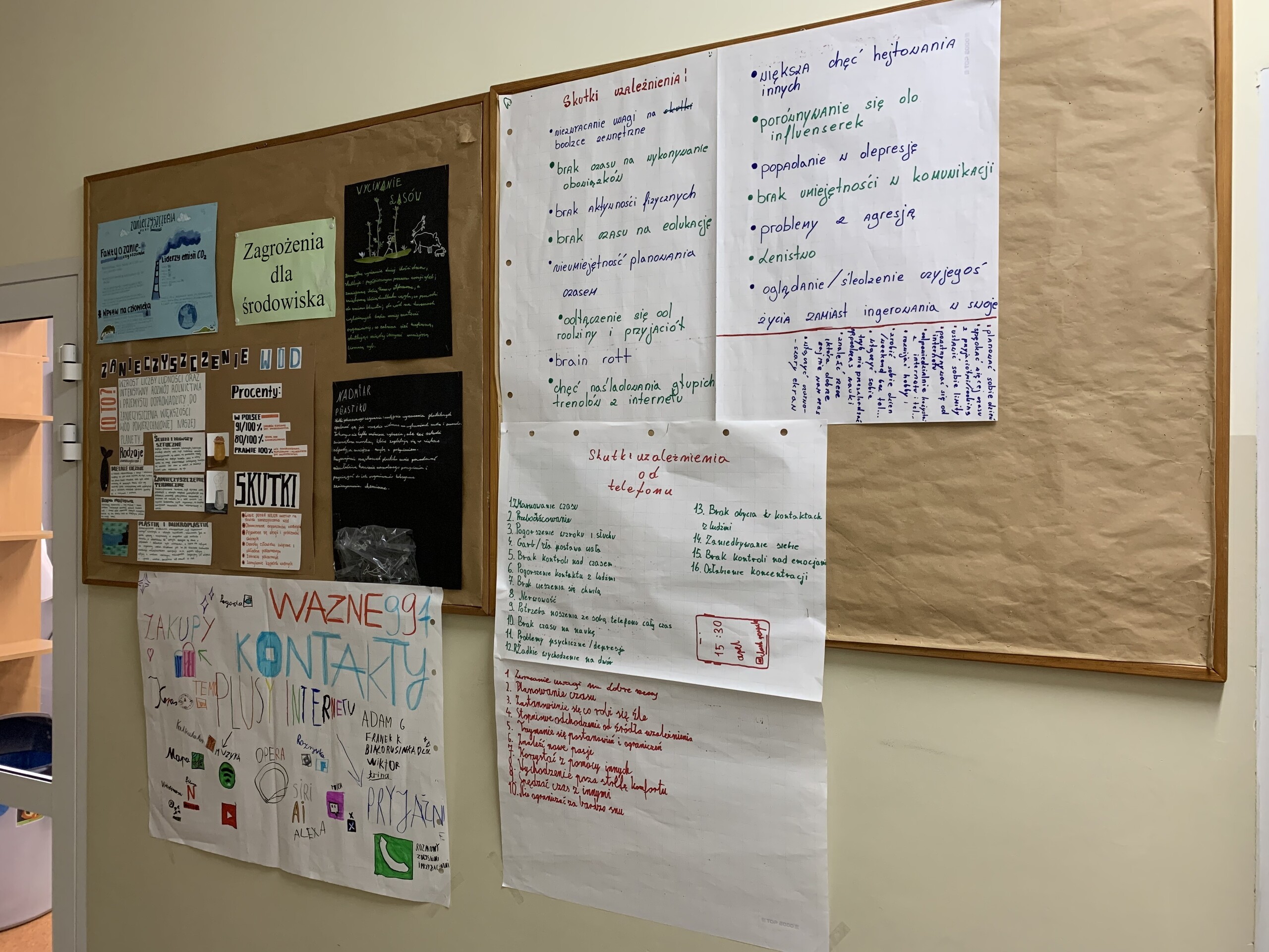 Dnia 30.10.2024r. w naszej szkole odbyły się pogadanki i warsztaty pt. „Fonoholizm i higiena cyfrowa – jak zapobiegać e uzależnieniom” prowadzone przez p. Idę Dębską i p. Dominikę Pioch z Fundacji Dbam o Twój Zasięg. Młodzież dowiedziała się, czym jest fonoholizm i jakie są jego objawy. Został omówiony negatywny wpływ nadmiernego korzystania z internetu i smartfonów oraz konsekwencje z tego wynikające, takie jak: gorsze wyniki w nauce, spadek aktywności, gorsze samopoczucie oraz rozluźnienie relacji z bliskimi. Uczniowie aktywnie brali udział w zajęciach, wchodzili w dyskusję i tworzyli prace grupowe. Na koniec zajęć trenerzy przedstawili uczniom sposoby radzenia sobie w świecie wirtualnym oraz Panie udzieliły porad, co zrobić, aby nie uzależnić się od nowych technologii.