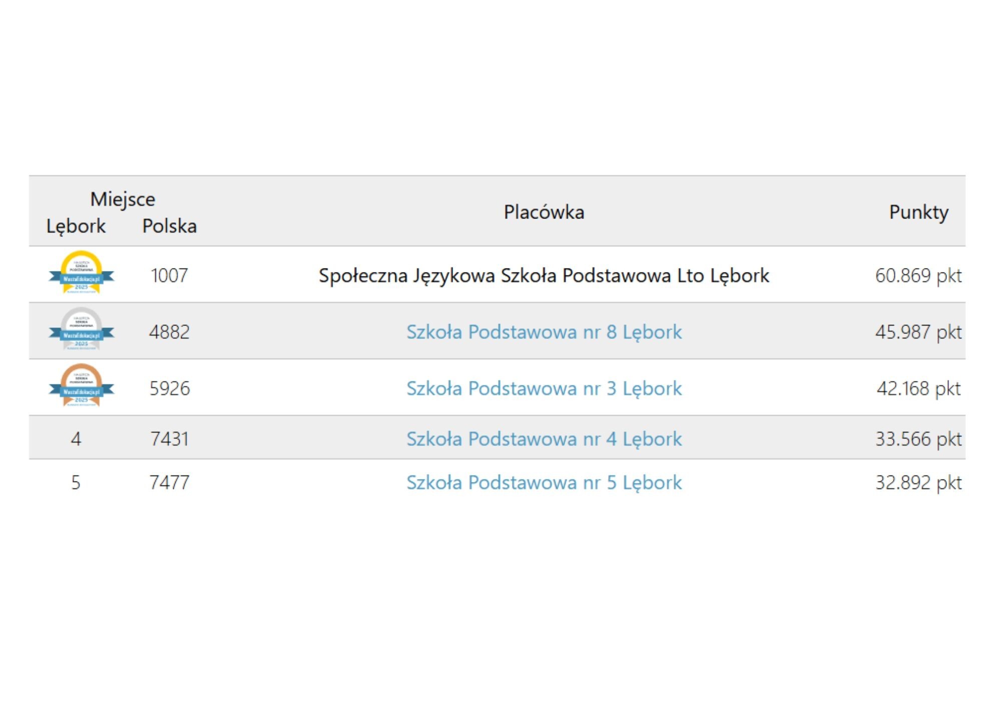 Po raz czwarty nasza szkoła zdobyła pierwsze miejsce wśród szkół podstawowych Lęborka w Ogólnopolskim Rankingu Szkół Podstawowych!