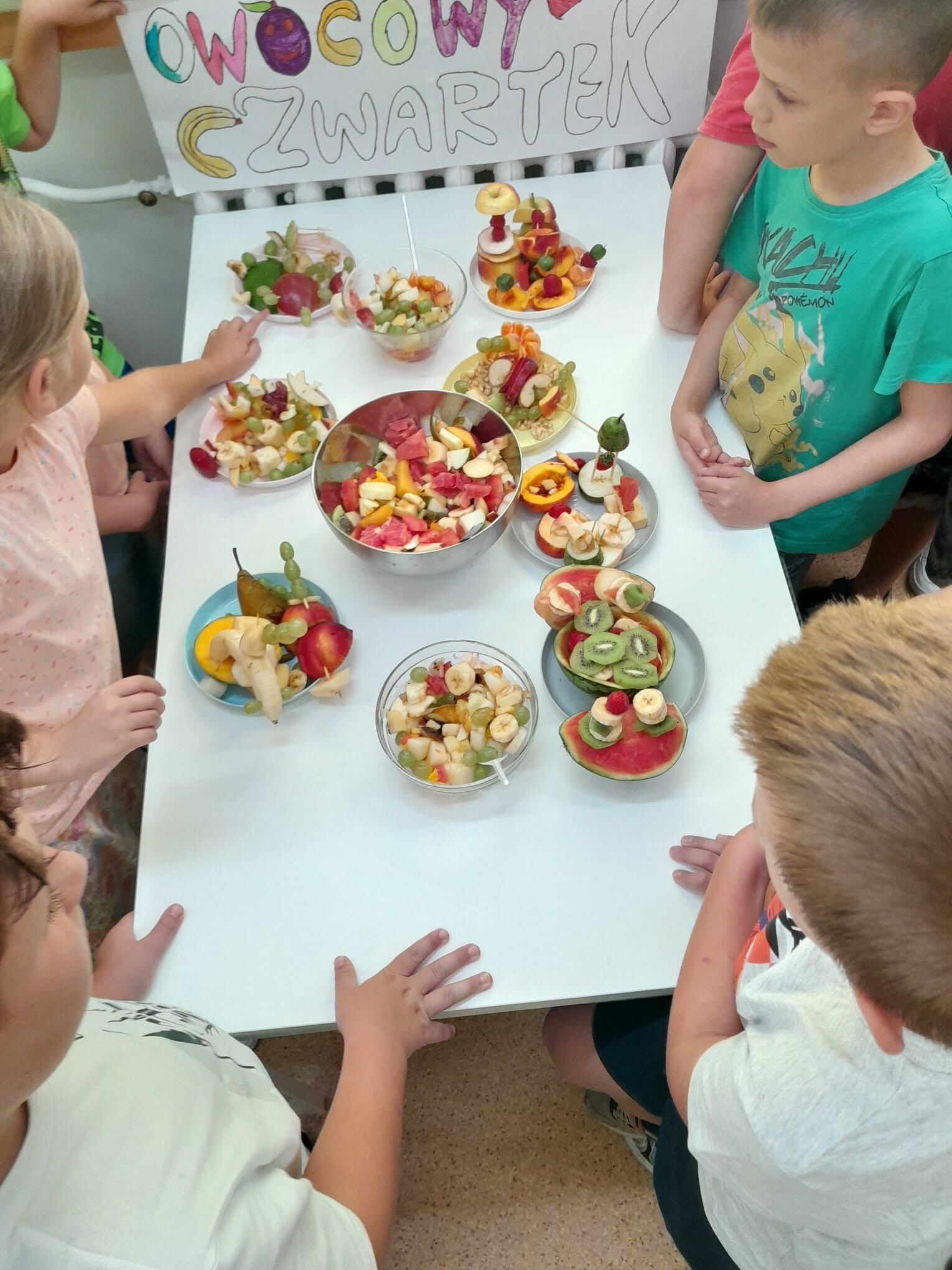 Dzisiaj dzieci w grupach zrealizowały kulinarny projekt "Owocowy zawrót głowy". Było zdrowo, kolorowo i witaminowo!