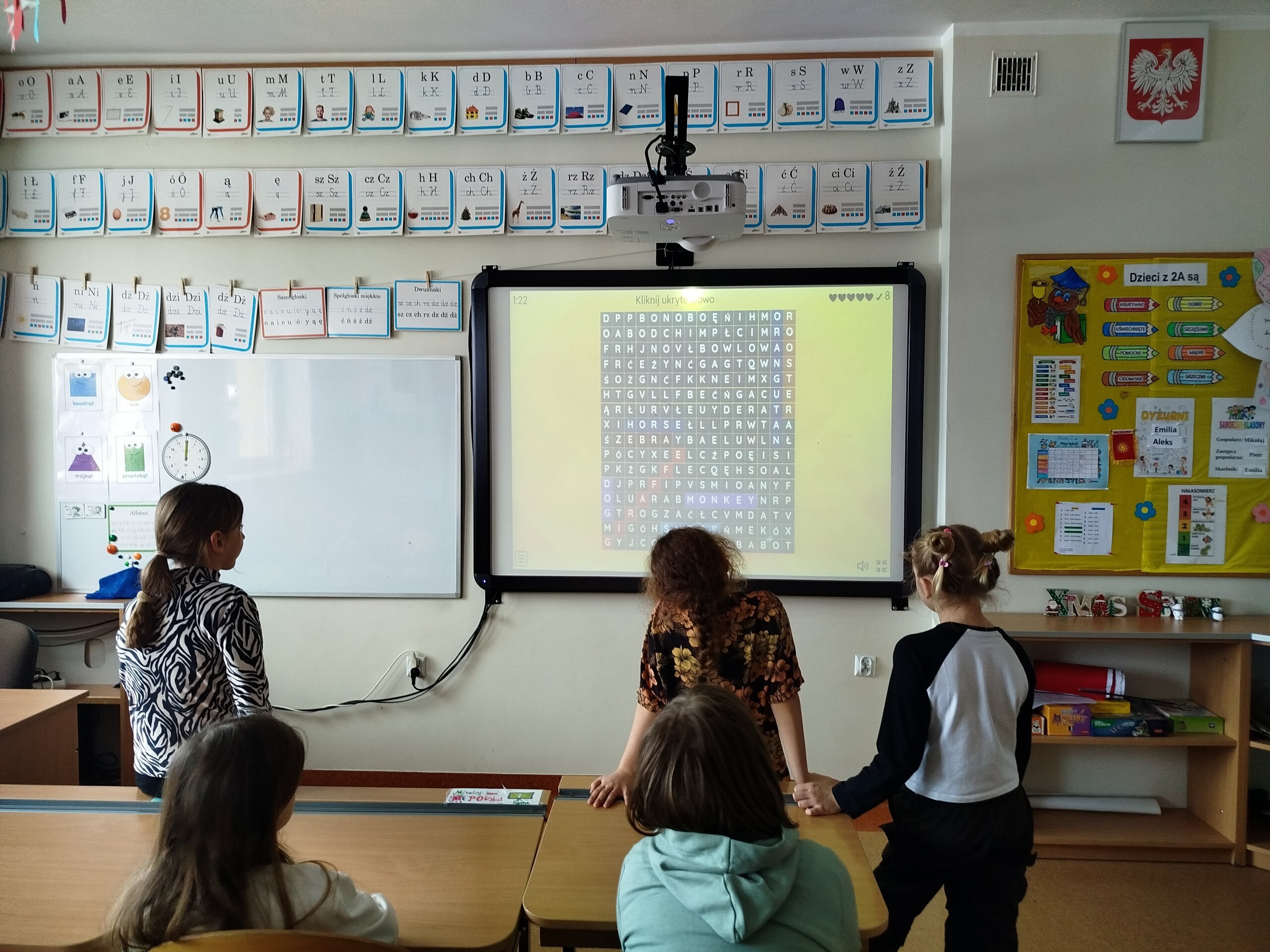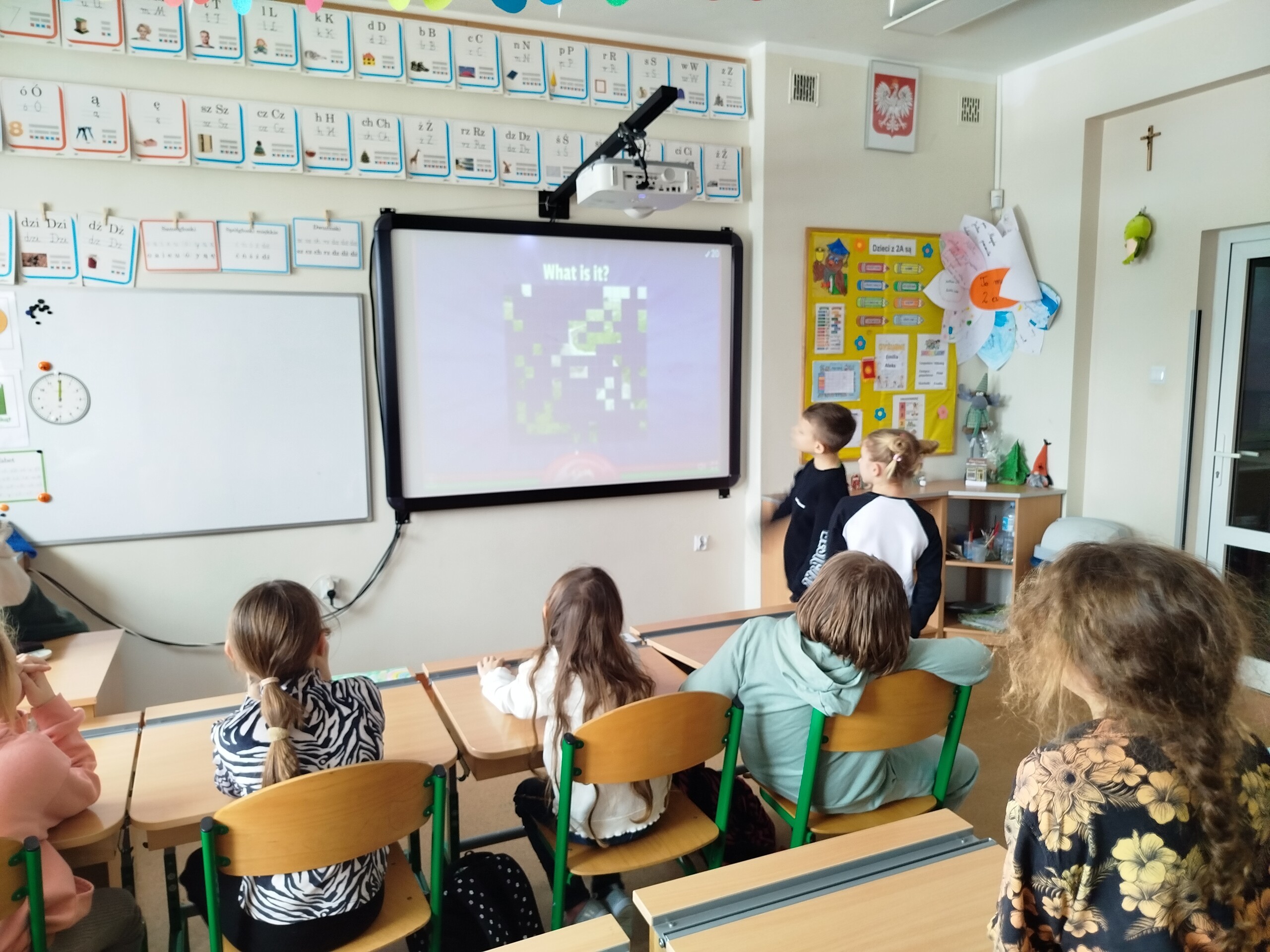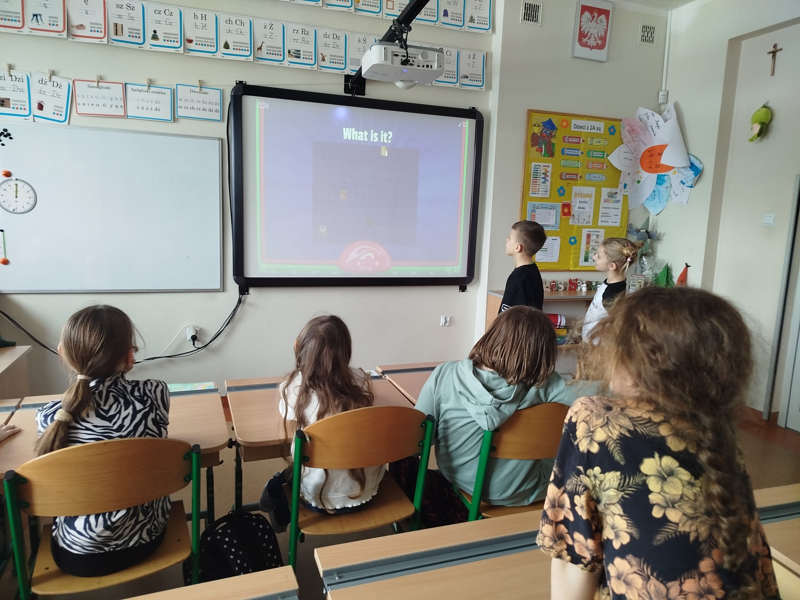 Dzieci tworzyły do nich układ taneczny i świetnie się bawiły! Słownictwo było ćwiczone również w grach na tablicy interaktywnej.