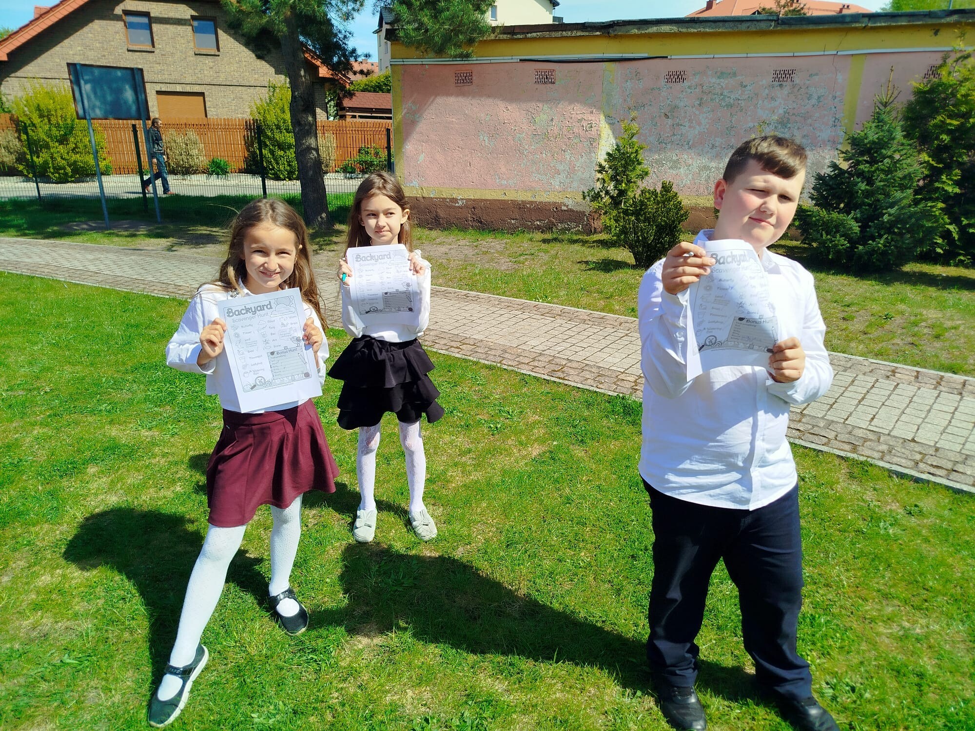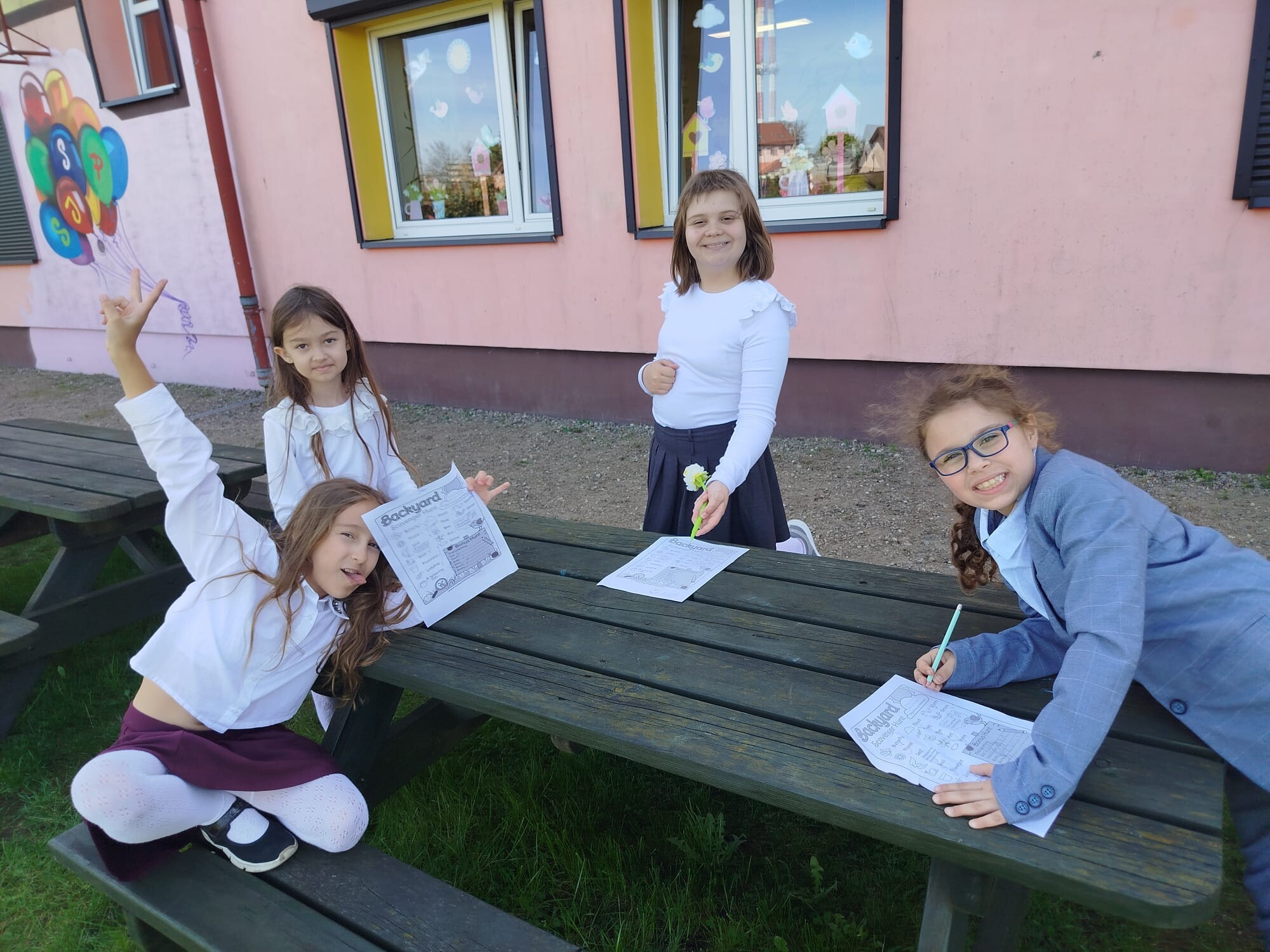 Dzieci zaskoczyły swoją kreatywnością i dokładnością — każde znalezisko było okazją do rozmowy, śmiechu i wspólnego odkrywania języka w otoczeniu natury. Wiosna przemówiła do nas nie tylko kolorami, ale też nowymi słowami, które dzieci zabiorą ze sobą w dalszą językową podróż.