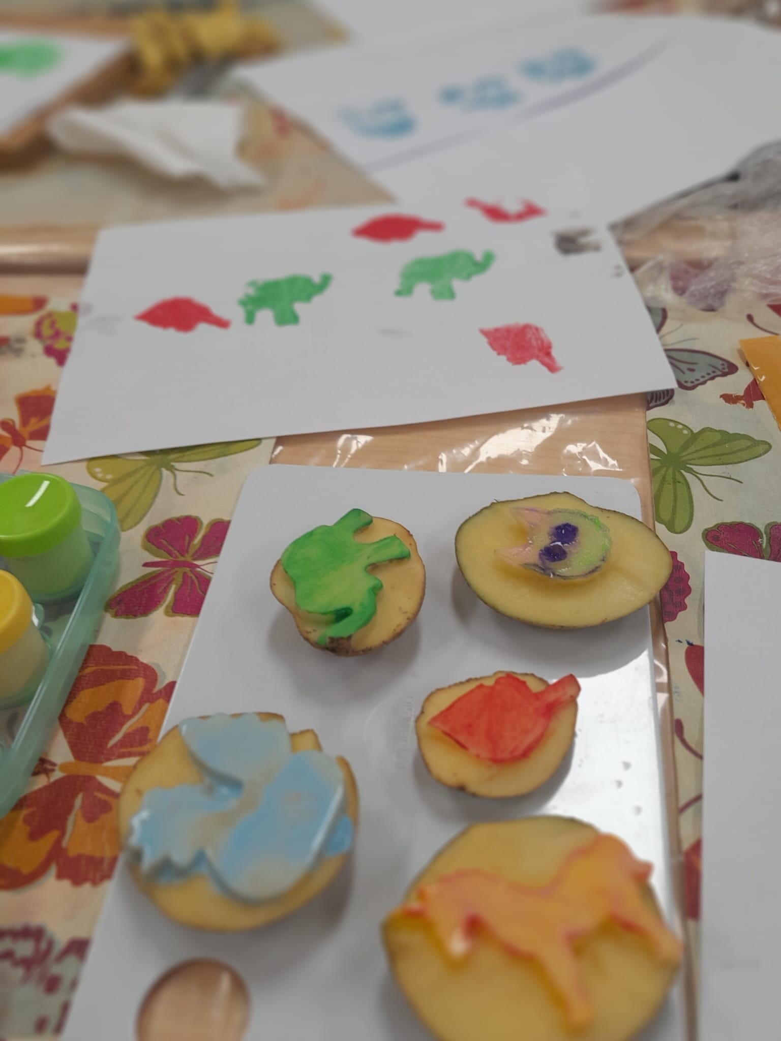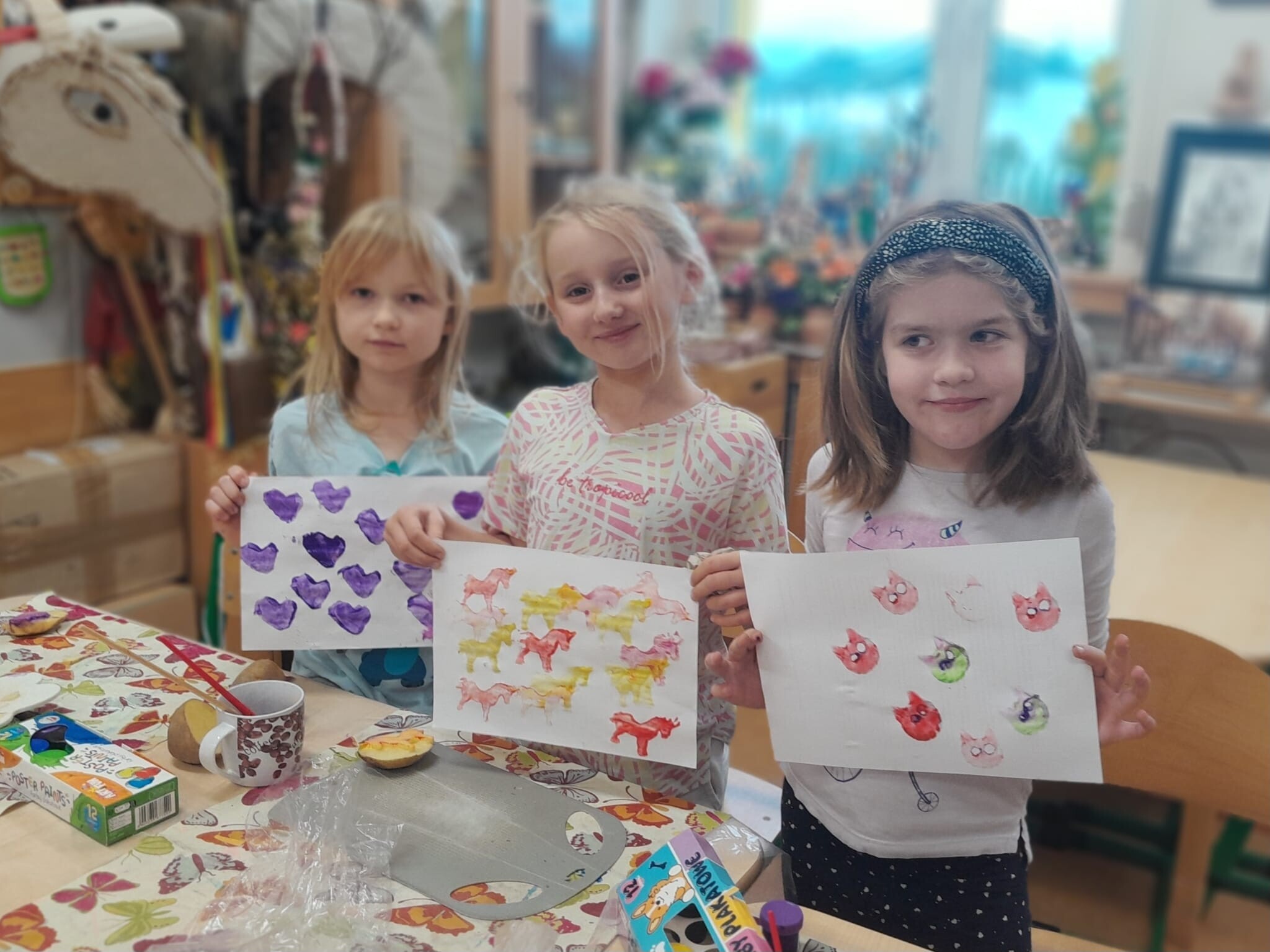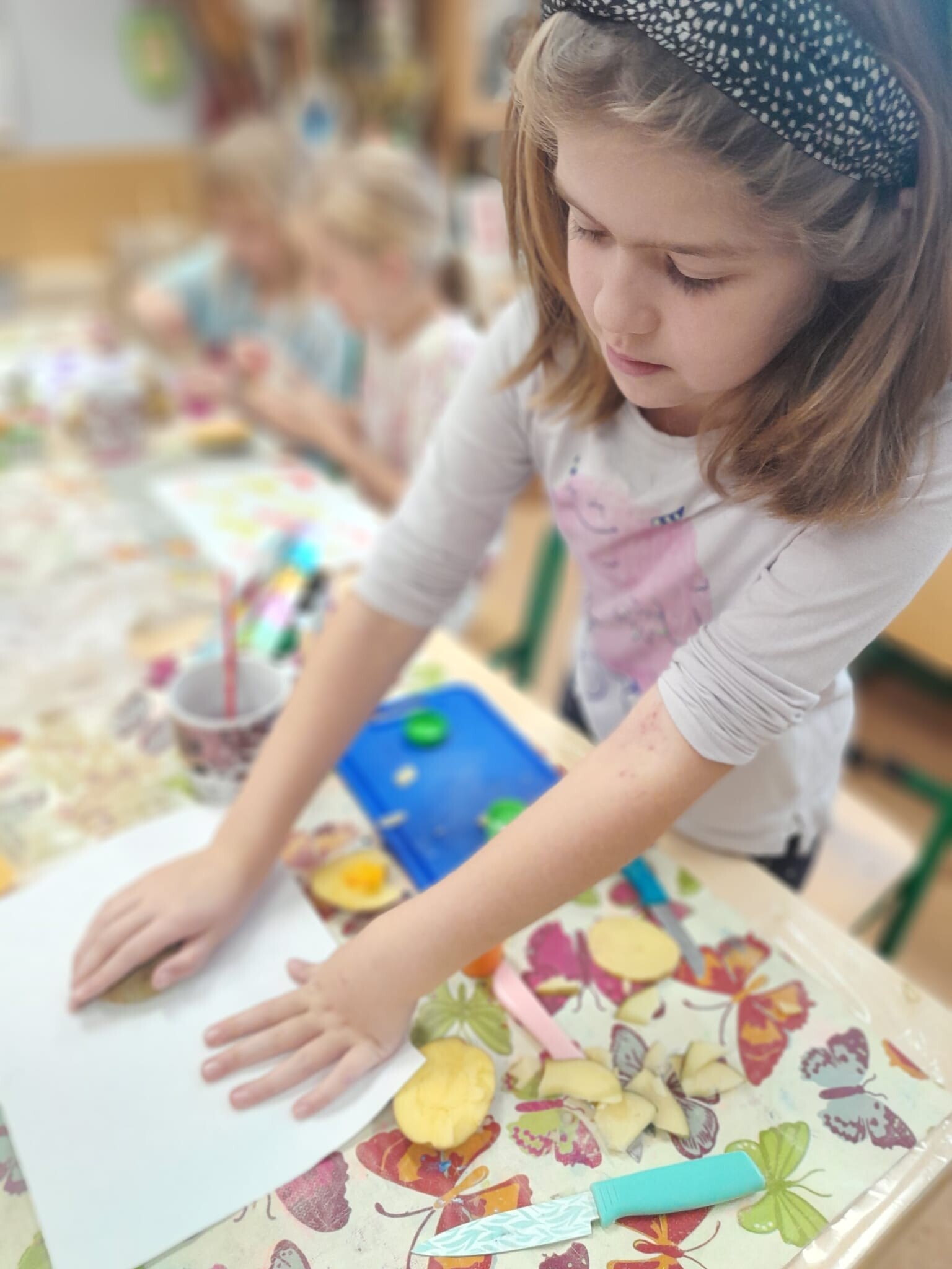 Dzieci z klasy IIa, w ramach zajęć języka kaszubskiego, wykonały ciekawe stempelki z ziemniaków. Było to podsumowanie lekcji o jesiennych pracach gospodarskich na Kaszubach,a w szczególności o tzw.wykopkach,czyli zbiorze ziemniaków i świętowaniu Dnia Pieczonego Ziemniaka.