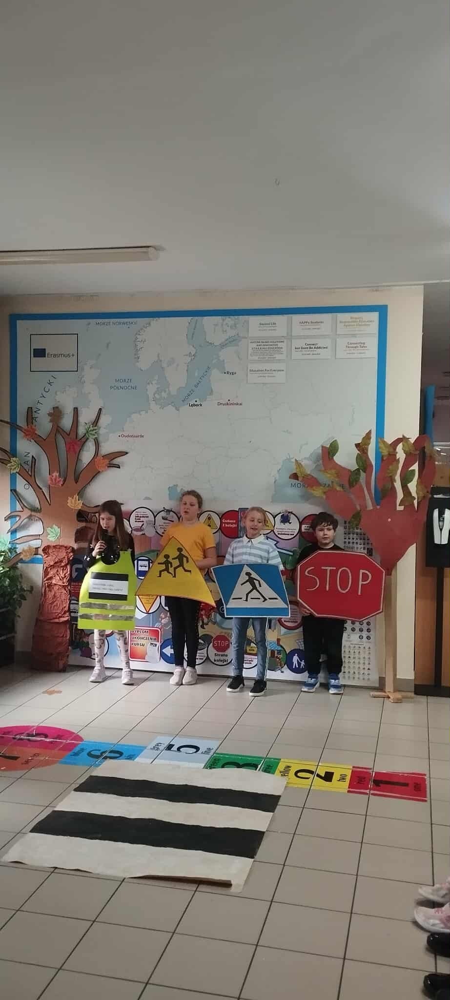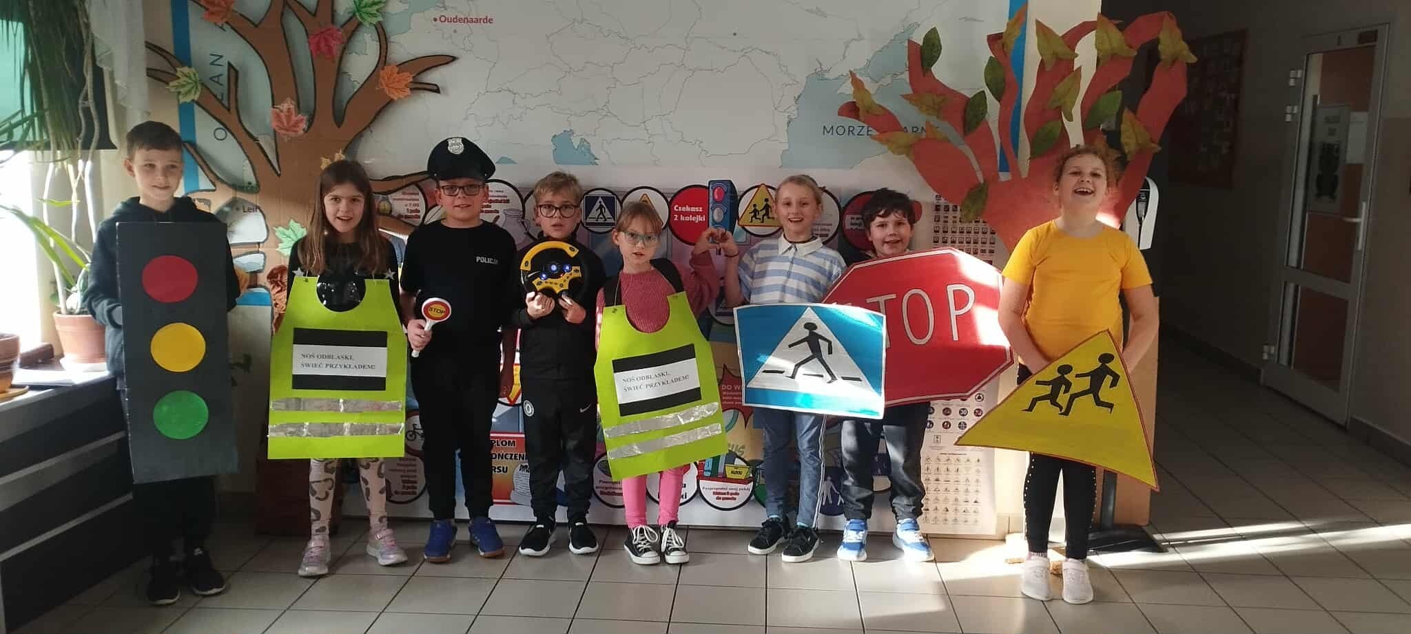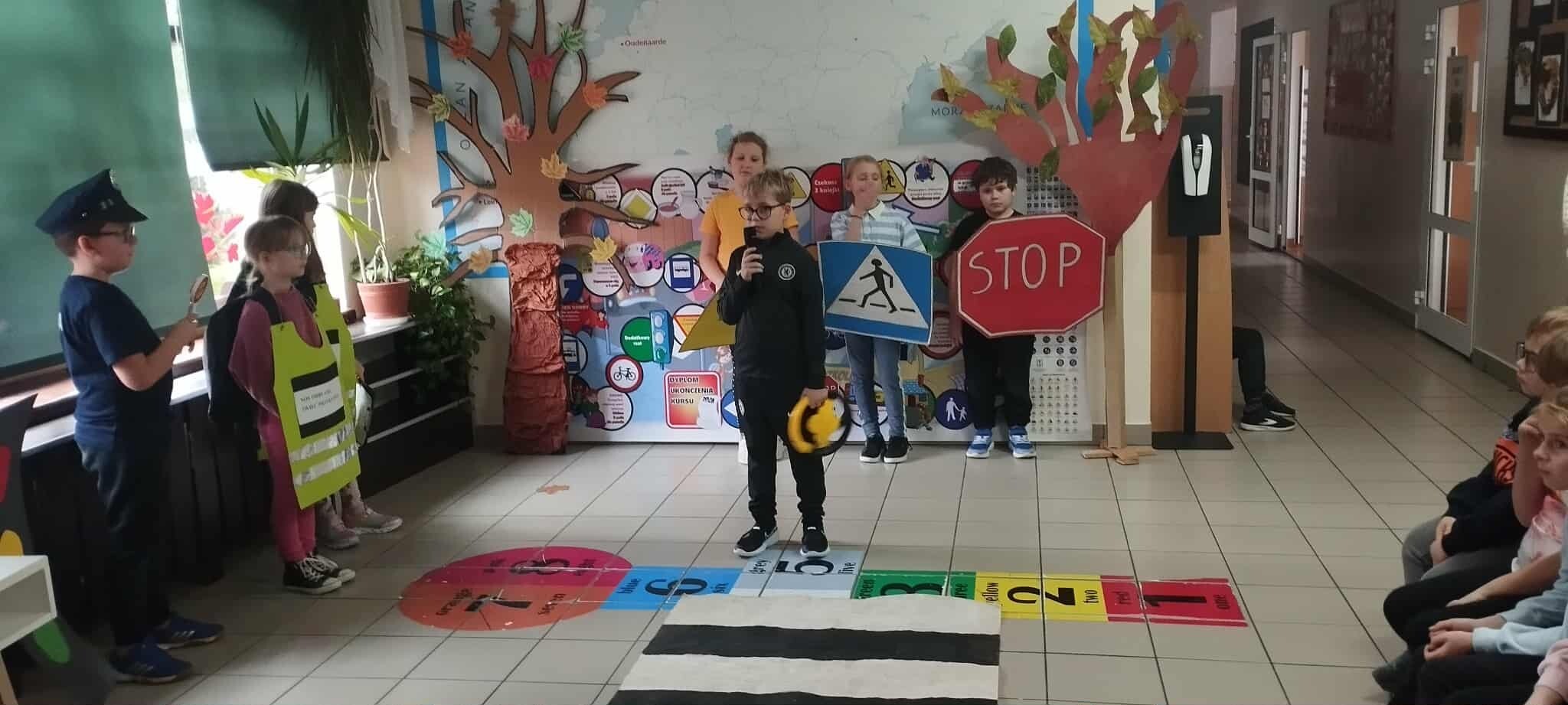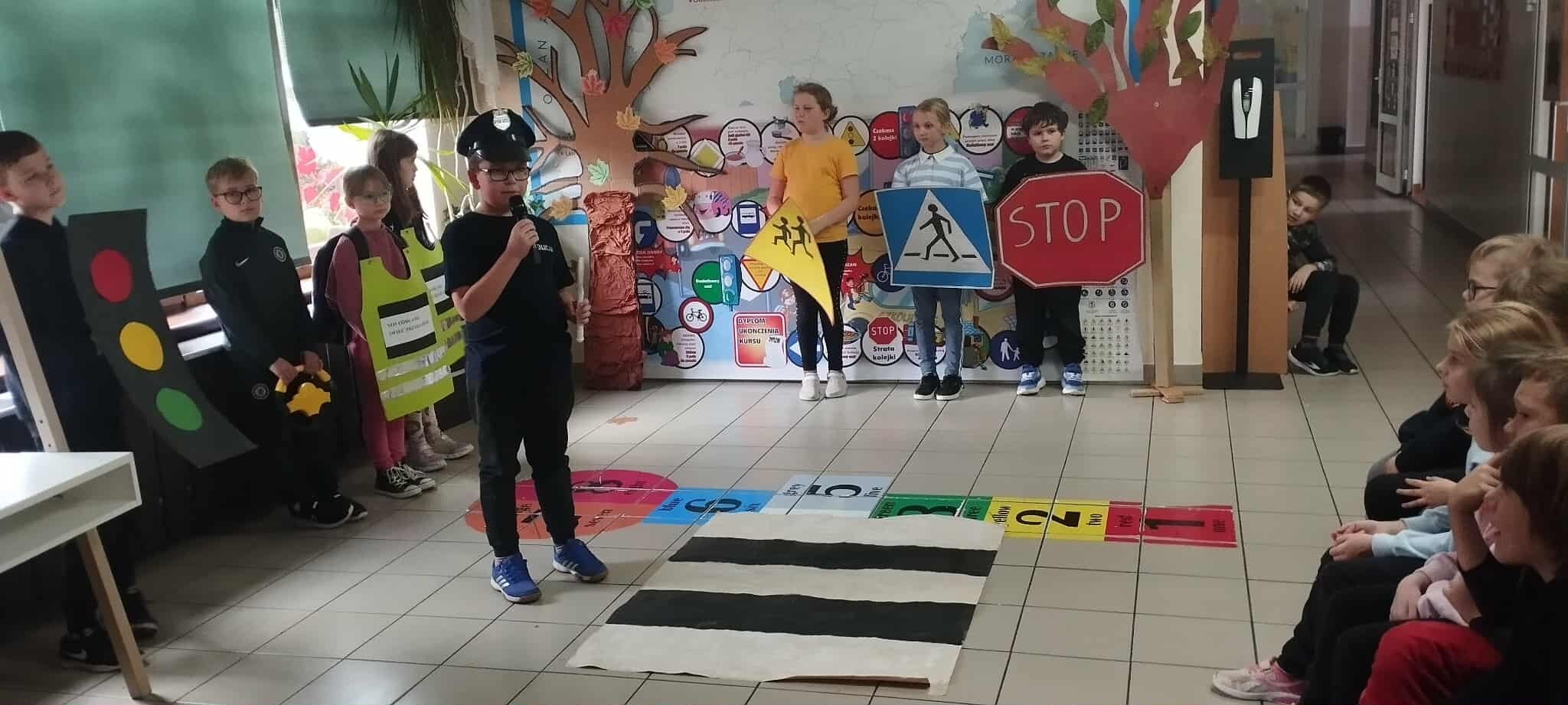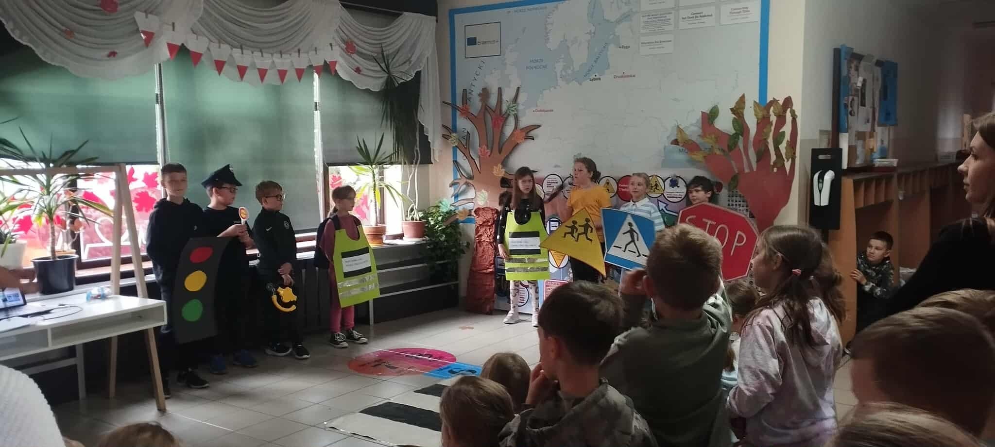 W ramach programu profilaktycznego „Odblaskowa Szkoła” uczniowie klasy 3A przygotowali i zaprezentowali scenkę dotyczącą bezpieczeństwa na drodze. Na pokaz zaproszono klasy 1–3. Przedstawienie bardzo spodobało się młodszym uczniom, a przy okazji pozwoliło utrwalić wcześniej zdobytą wiedzę o tym, jak prawidłowo i bezpiecznie zachowywać się w ruchu drogowym.
