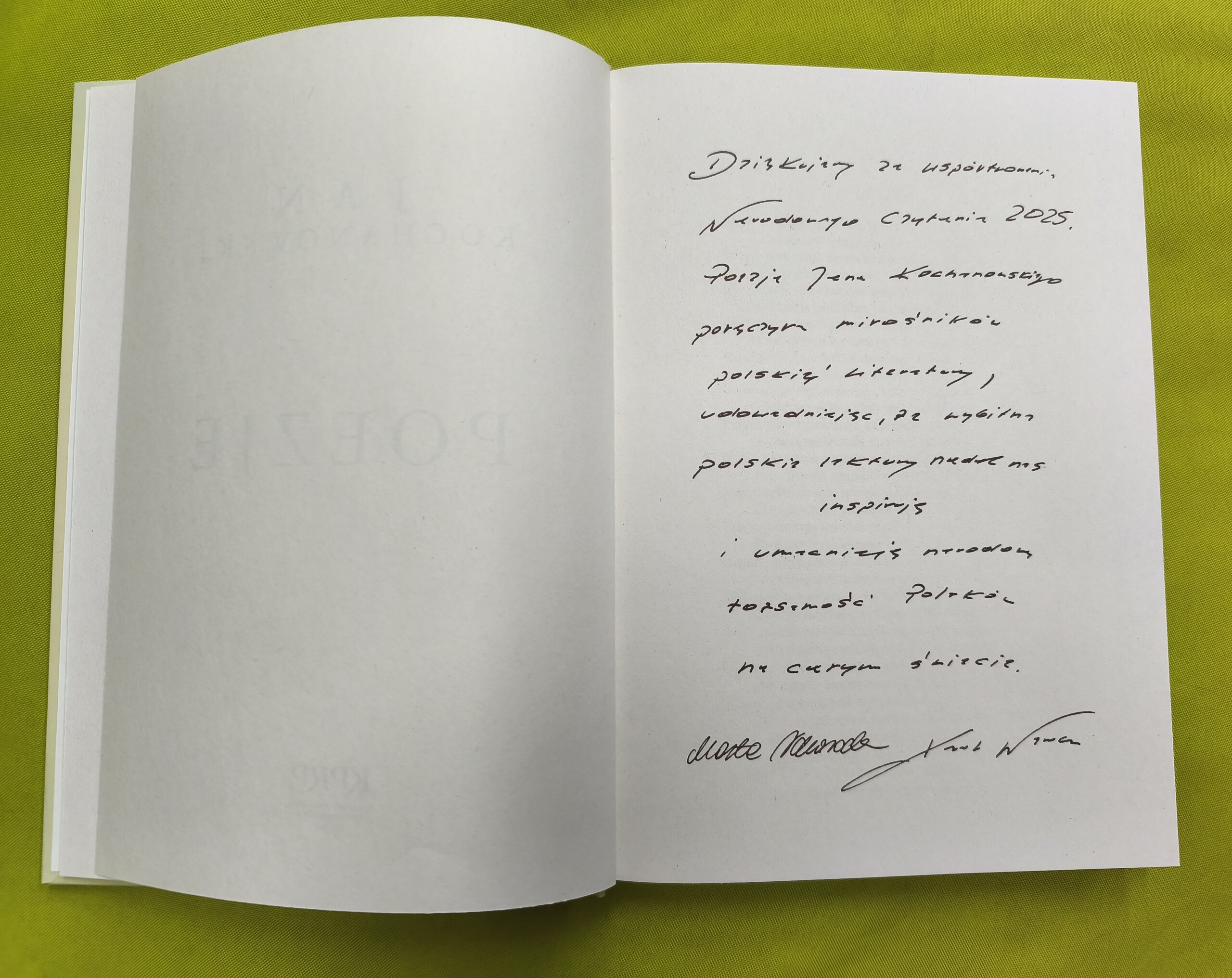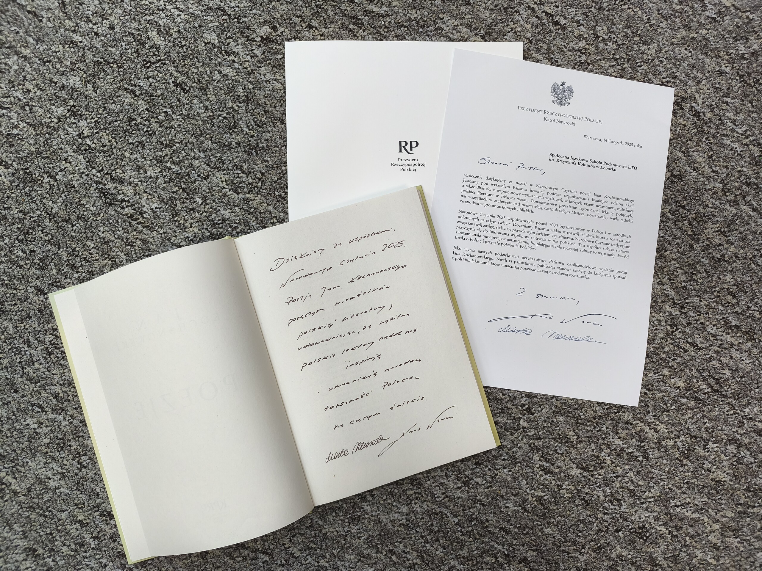 Ale to nie wszystko! Do listu z podziękowaniami dołączony został wyjątkowy prezent - przepiękny egzemplarz "Poezji" Jana Kochanowskiego z dedykacją od Prezydenta RP !