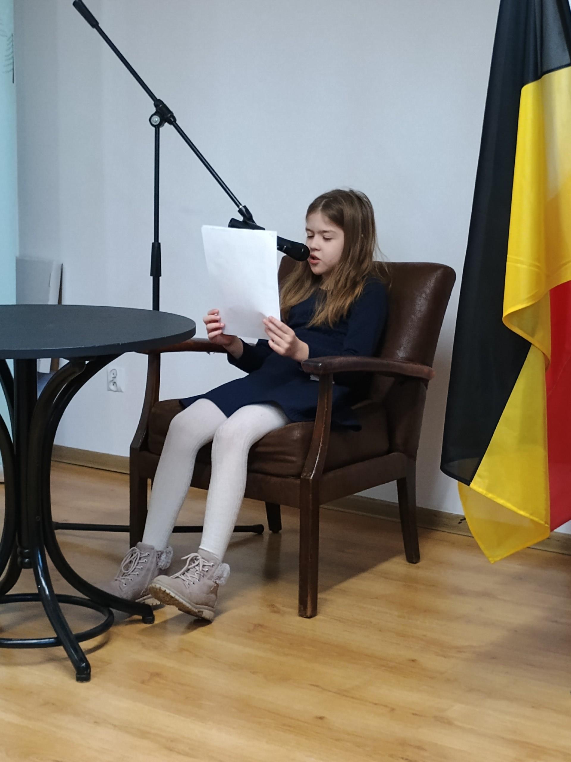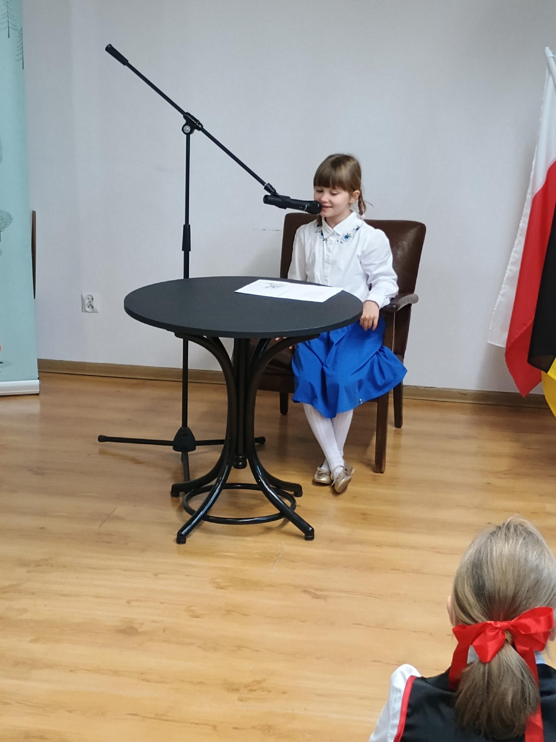 Hanna Pawłowska z klasy 2 SJSP zaprezentowała wiersz "Jeséń" Jana Trepczyka i uzyskała wyróżnienie w kategorii uczniów kl. 1-2.