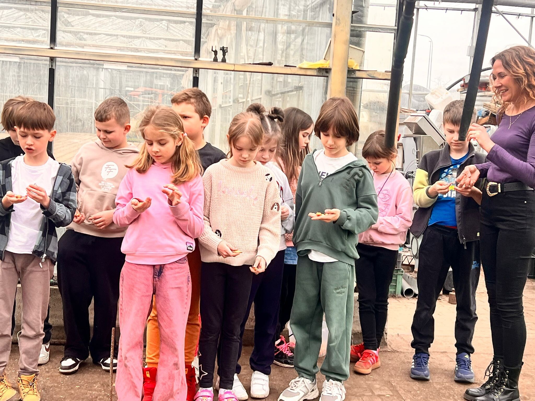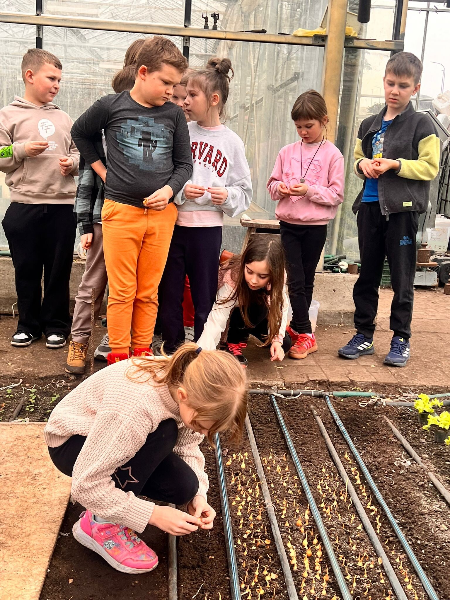 W środę, 25 marca, klasa druga miała okazję uczestniczyć w warsztatach ogrodniczych. Dzieci zwiedziły szklarnie, w których mogły podziwiać siewki, sadzonki oraz gotowe do zbioru warzywa, takie jak sałata, koper i rzodkiewka. Uczniowie dowiedzieli się również, jak przebiega uprawa pomidorów posadzonych w styczniu, które trafią na ryneczek w połowie maja. Na zakończenie każde dziecko posadziło trzy cebulki, z których wyrośnie szczypior. Były to bardzo udane warsztaty i miło spędzony czas z klasą.